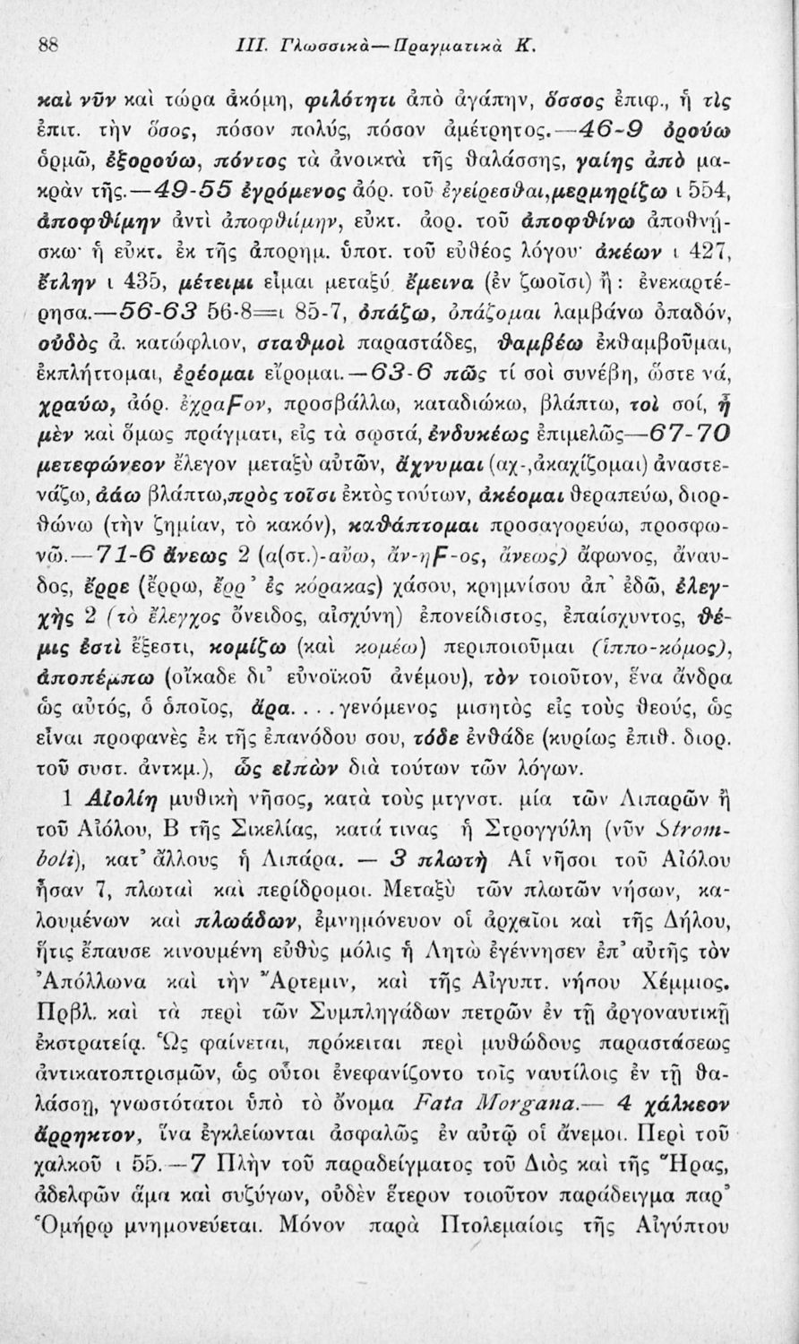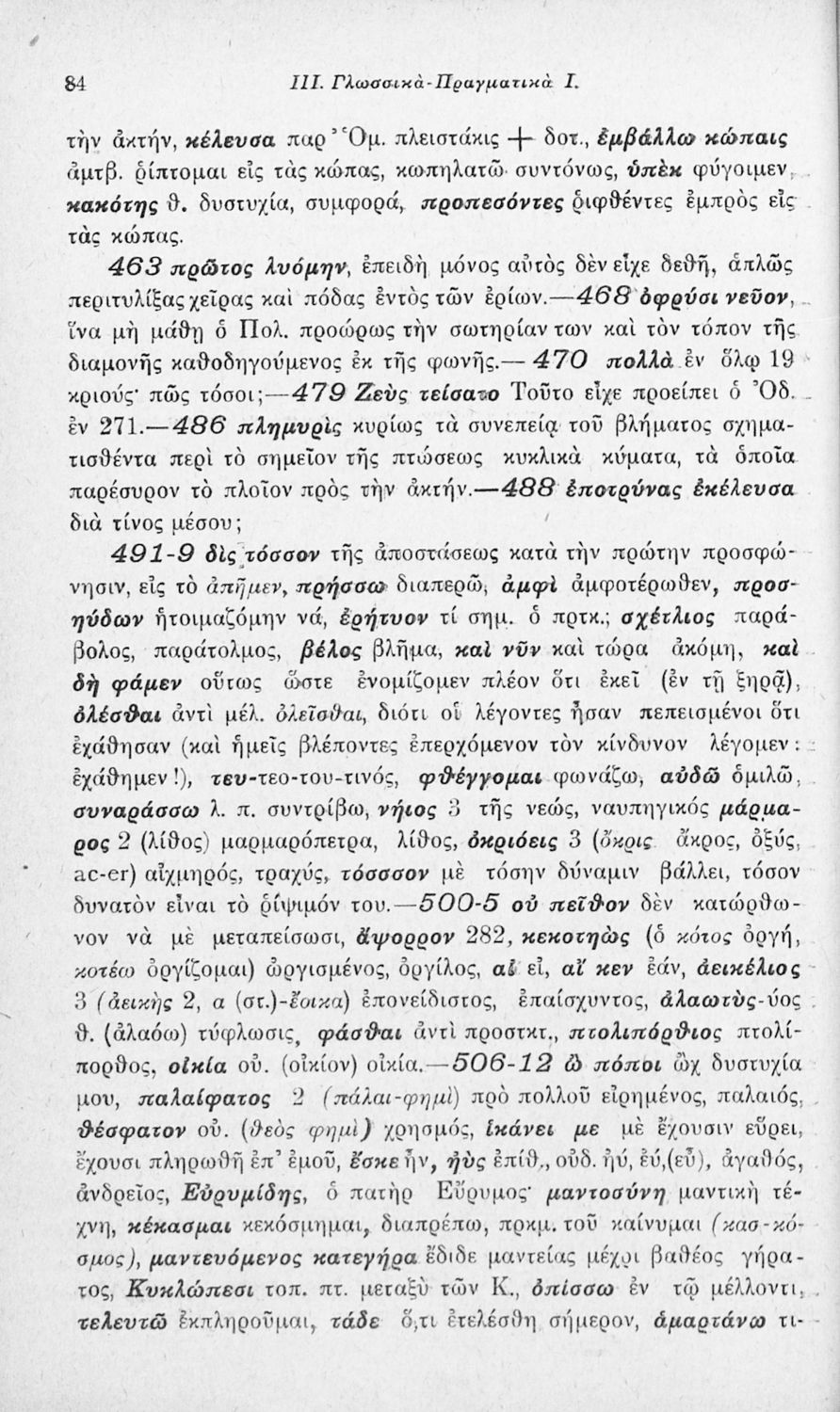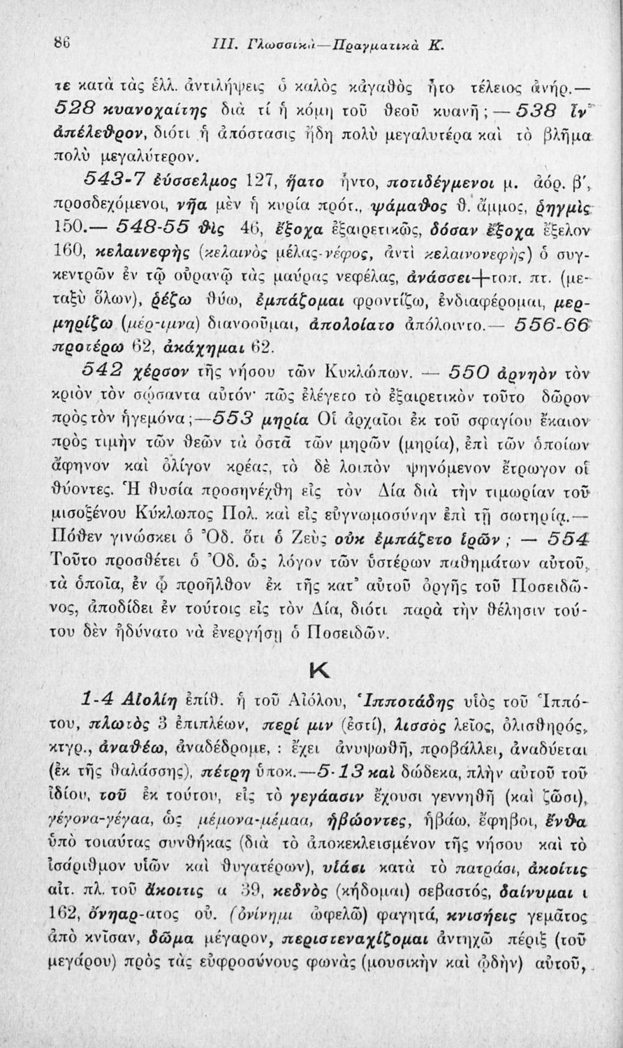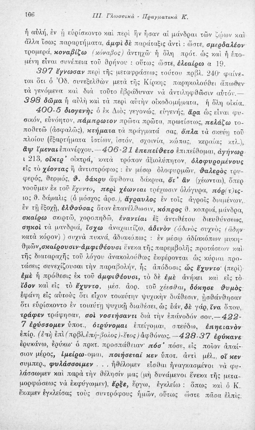 Μαθητικό βοήθημα Αρχαίων Ελληνικών που περιλαμβάνει αποσπάσματα των ραψωδιών Α, Ι, και Κ της Οδύσσειας και γλωσσικές και πραγματολογικές σημειώσεις.