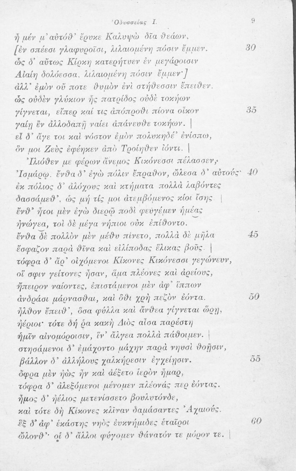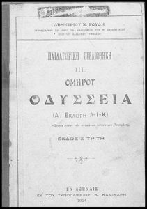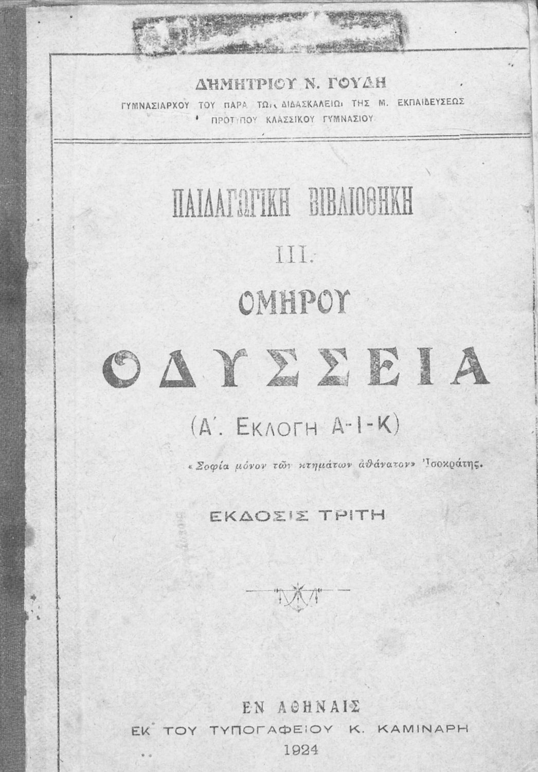Μαθητικό βοήθημα Αρχαίων Ελληνικών που περιλαμβάνει αποσπάσματα των ραψωδιών Α, Ι, και Κ της Οδύσσειας και γλωσσικές και πραγματολογικές σημειώσεις.