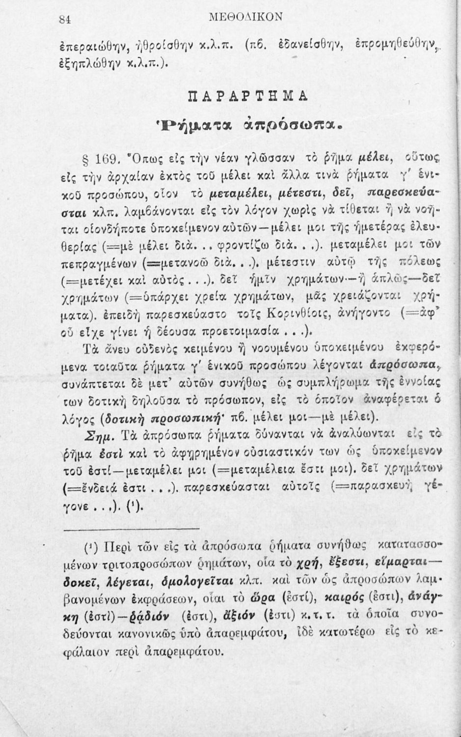 Μαθητικό βοήθημα Αρχαίων Ελληνικών για τα Ελληνικά Σχολεία, Παρθεναγωγεία και Γυμνάσια που περιλαμβάνει γραμματική της αρχαίας ελληνικής και κατάλογο ανωμάλων ρημάτων.