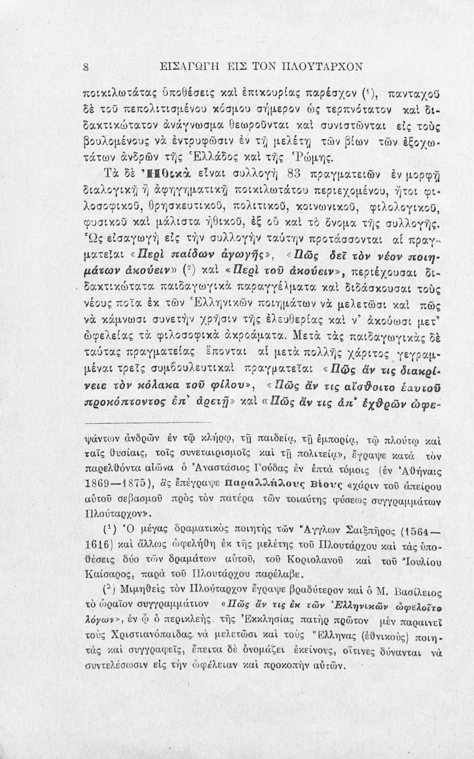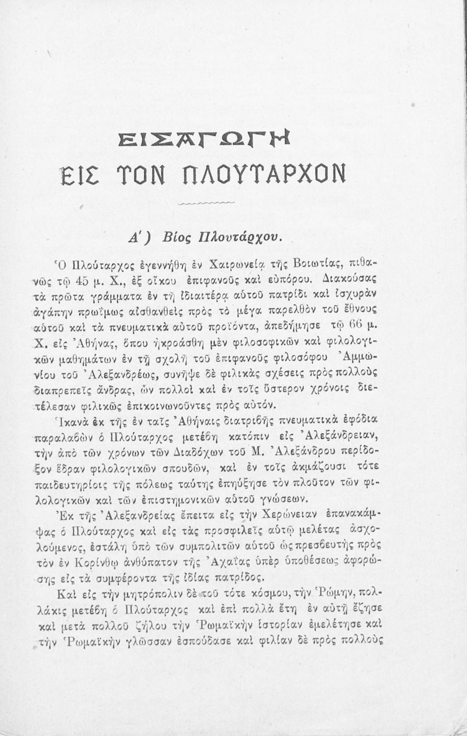 Πλουτάρχου Περί παίδων αγωγής μετά προλεγομένων και σημειώσεων προς χρήσιν των διδασκάλων και των μαθητών των Διδασκαλείων τεύχος Α΄ κείμενον
