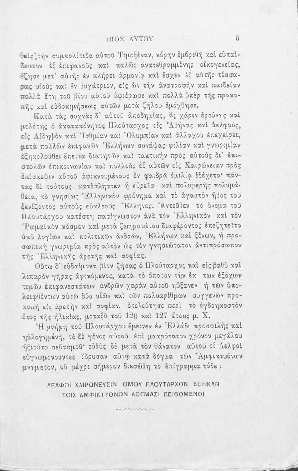 Σχολικό εγχειρίδιο Αρχαίων Ελληνικών που περιλαμβάνει το έργο του Πλούταρχου Περί παίδων αγωγής, εισαγωγή στη ζωή και το έργο του, και ερμηνευτικές σημειώσεις.