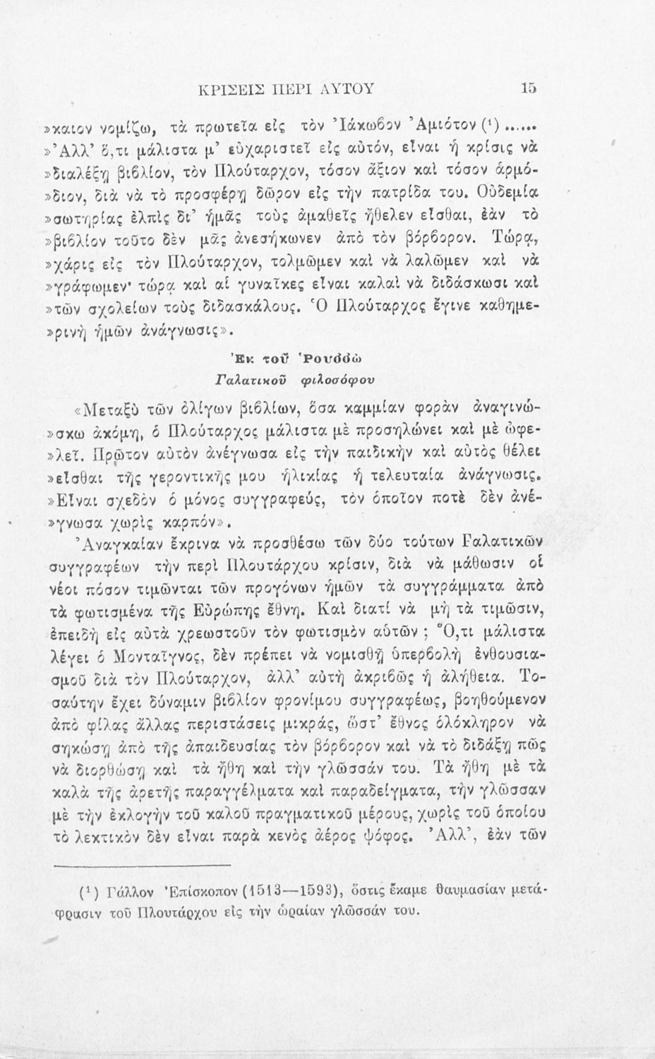 Πλούταρχος, Δημ. Ι. Φιλικός (σχόλια)