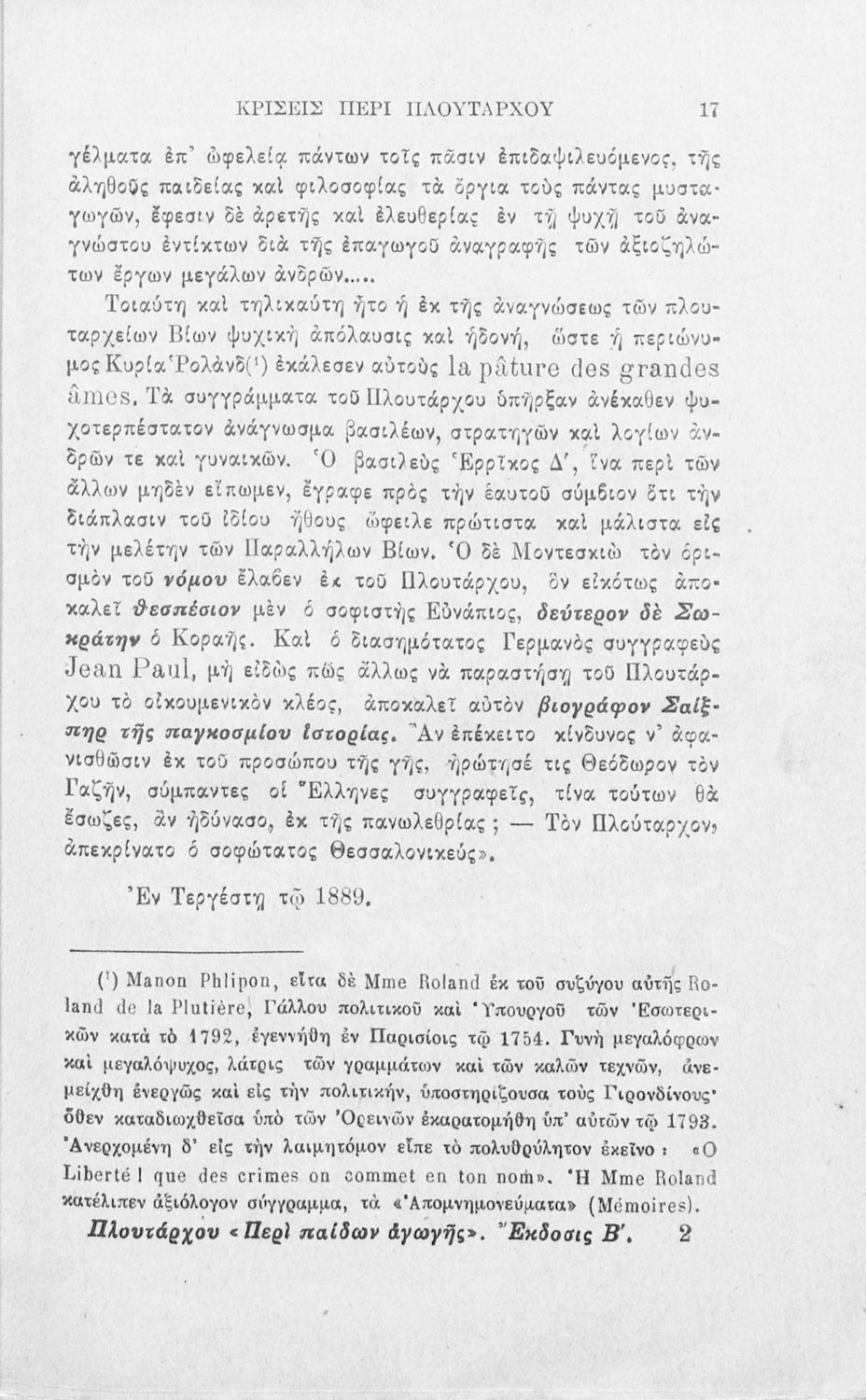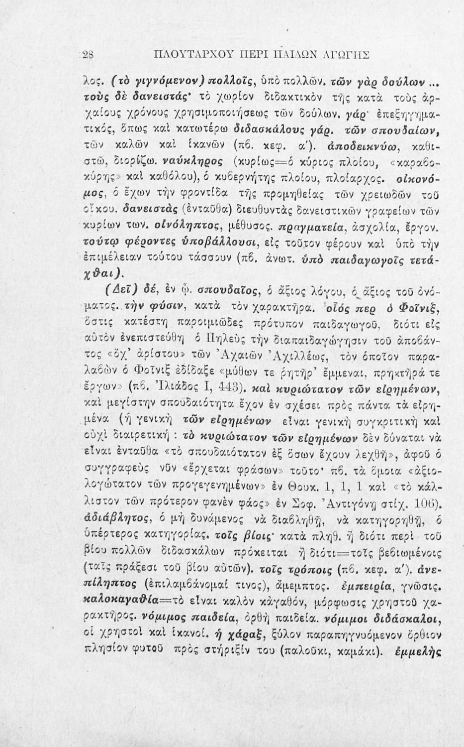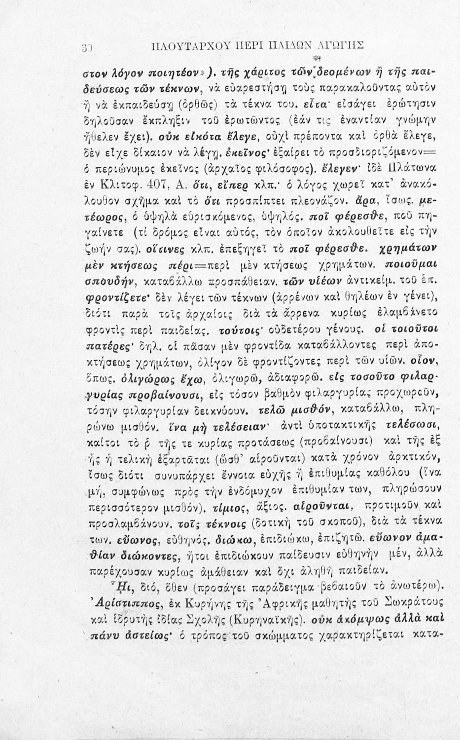 Πλουτάρχου Περί παίδων αγωγής μετά προλεγομένων και σημειώσεων προς χρήσιν των διδασκάλων και των μαθητών των Διδασκαλείων τεύχος Α΄ κείμενον