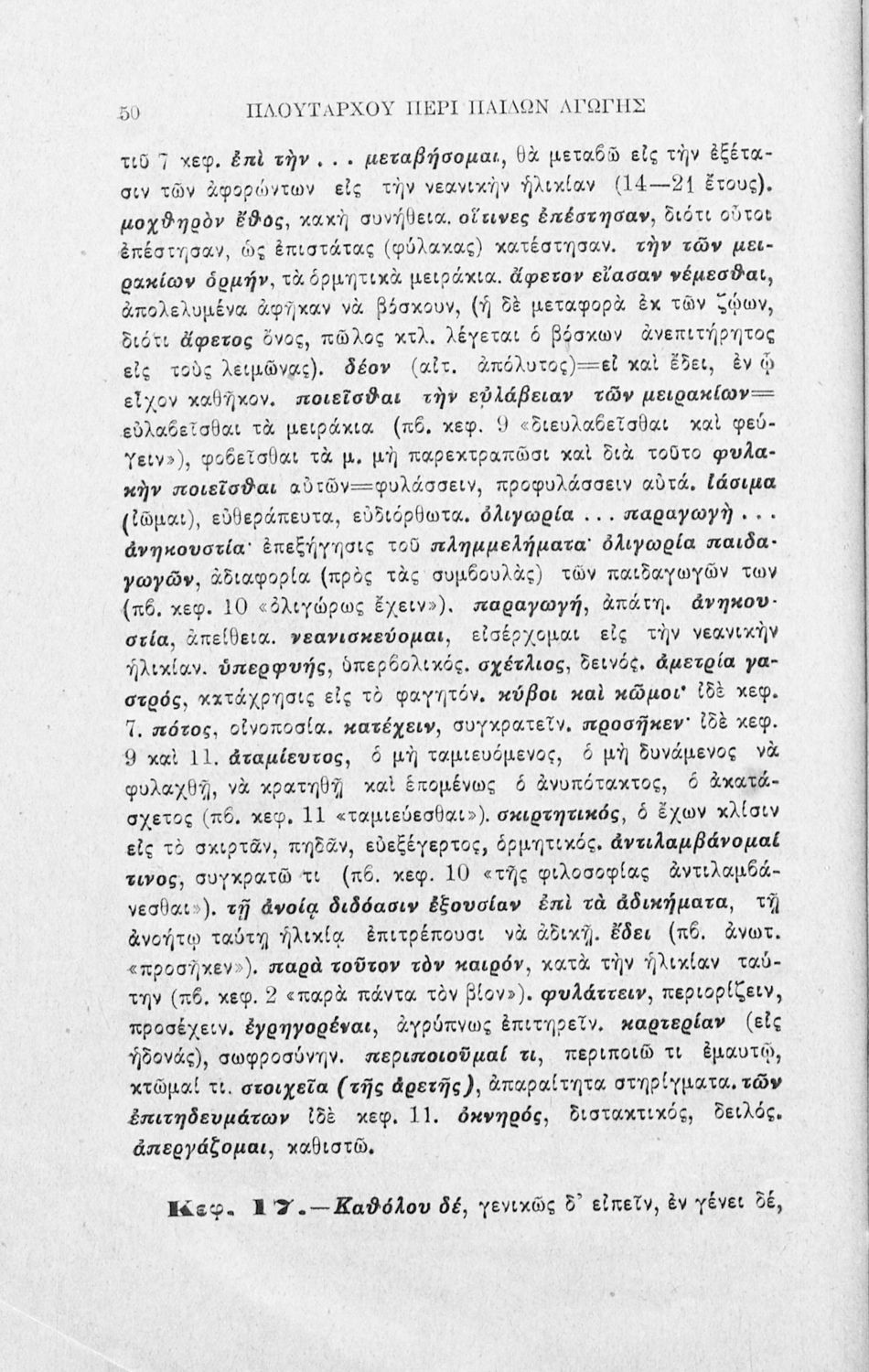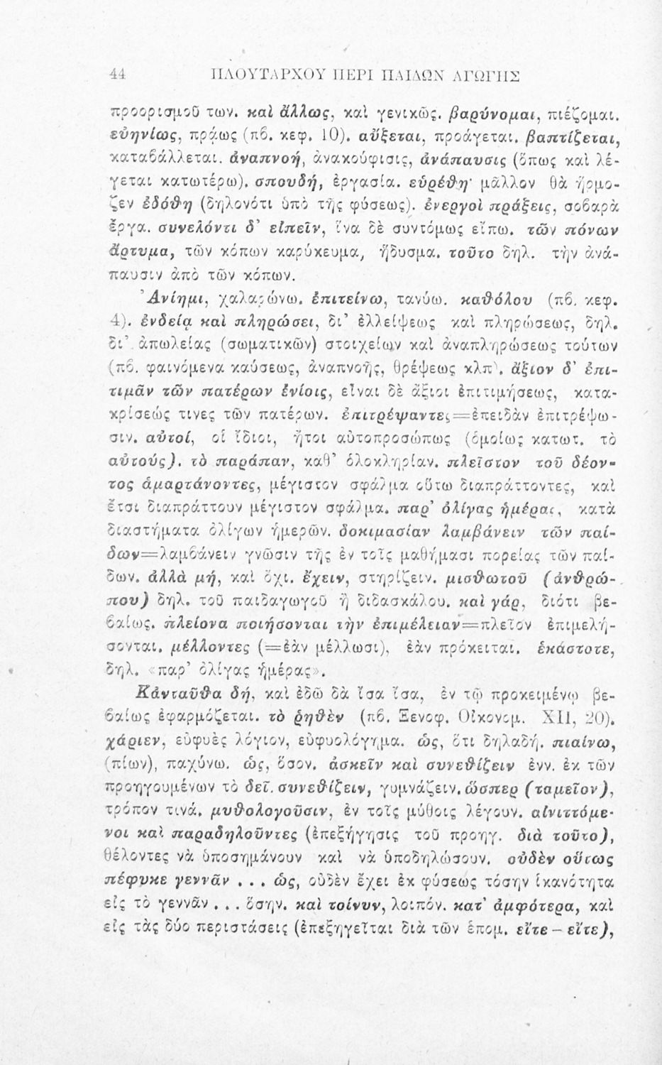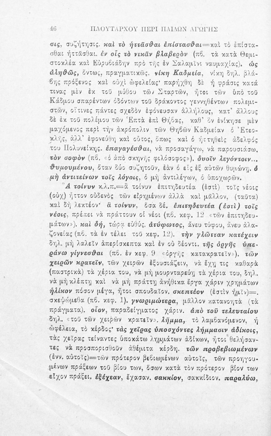 520 ## _aΣχολικό εγχειρίδιο Αρχαίων Ελληνικών που περιλαμβάνει το έργο του Πλούταρχου Περί παίδων αγωγής, εισαγωγή στη ζωή και το έργο του, και ερμηνευτικές σημειώσεις.