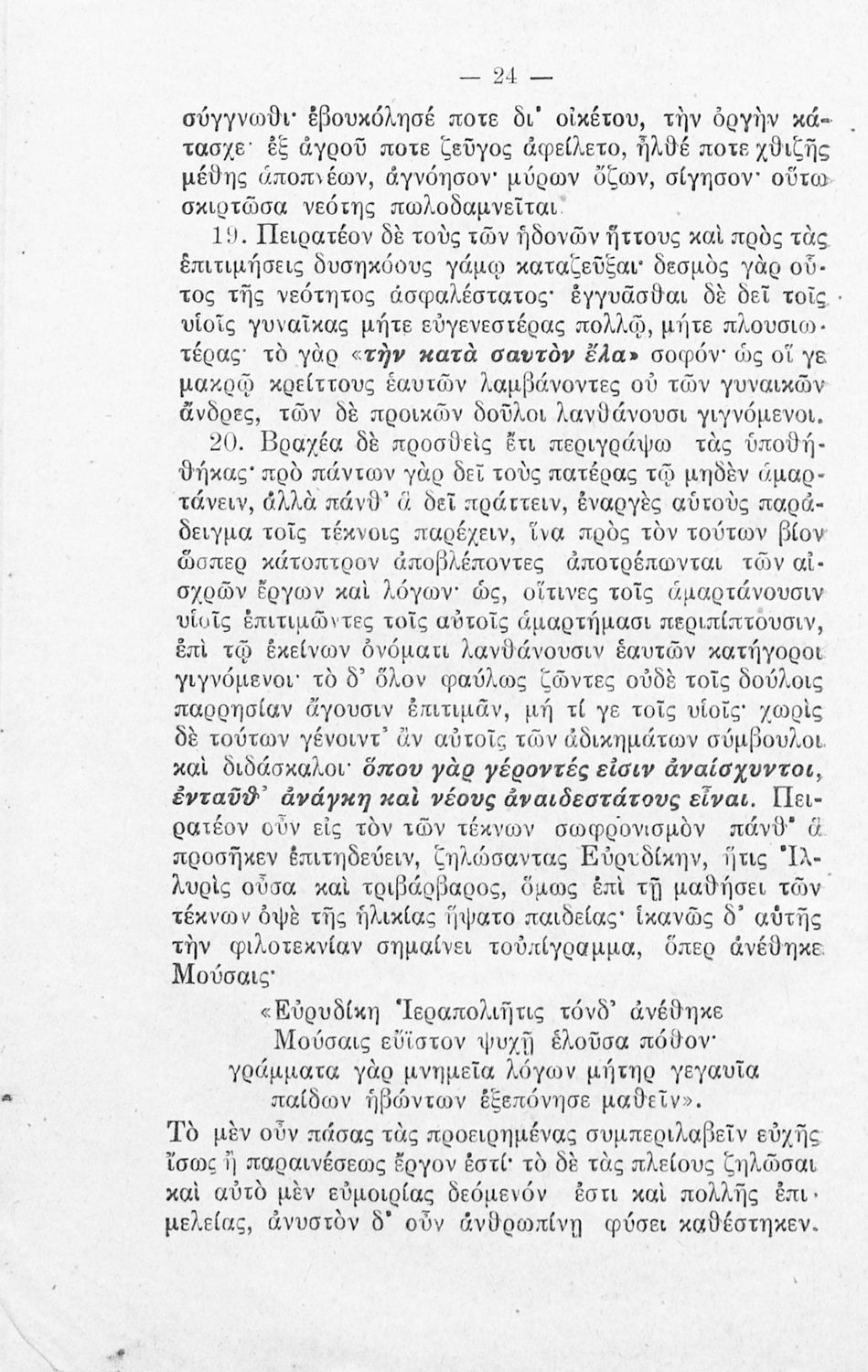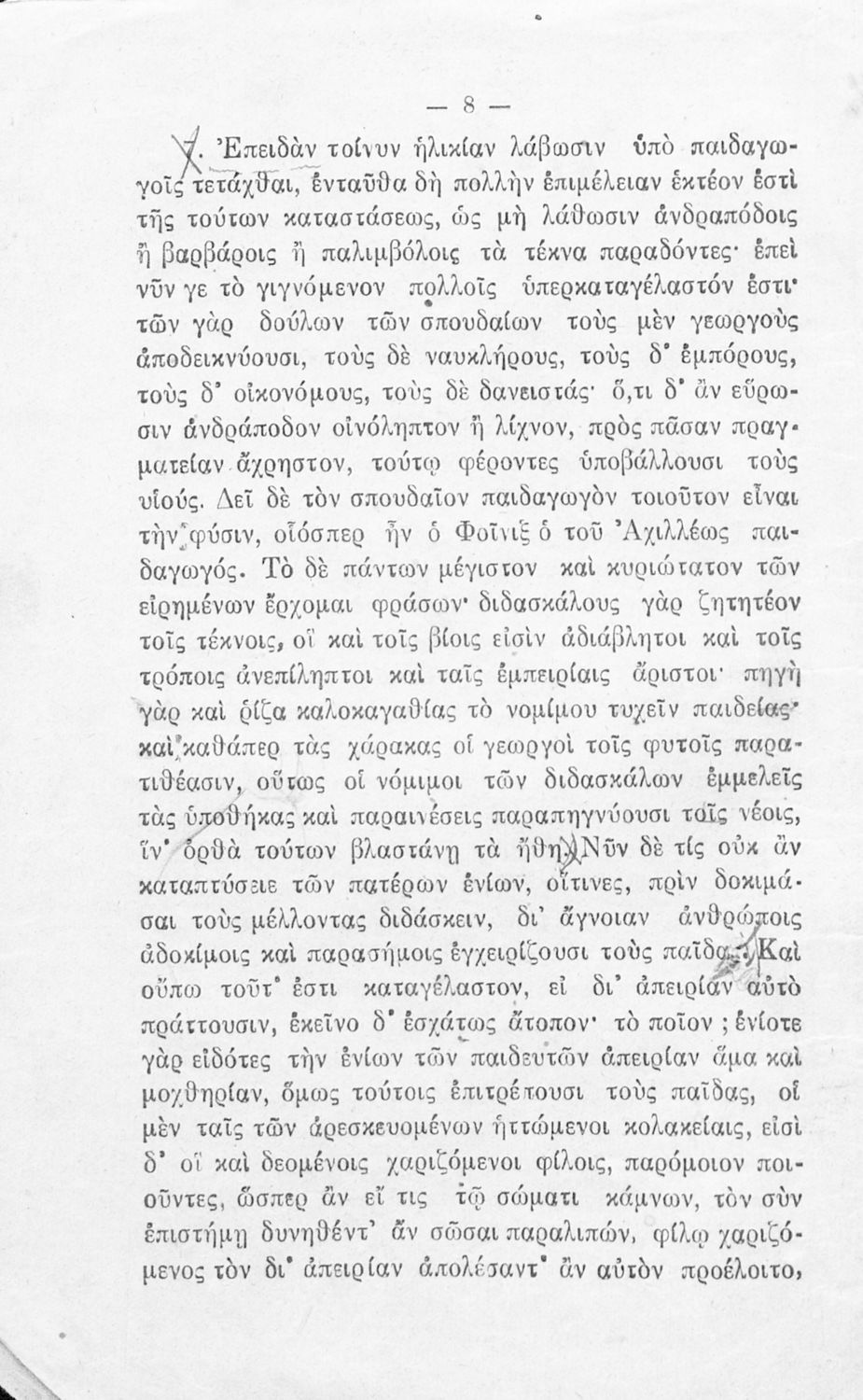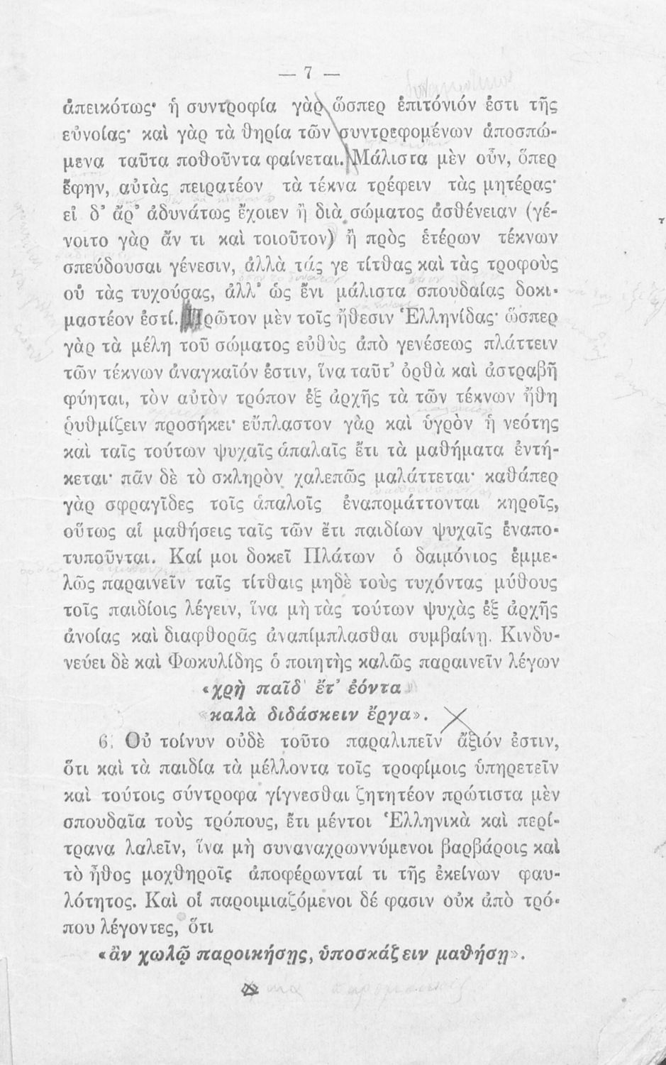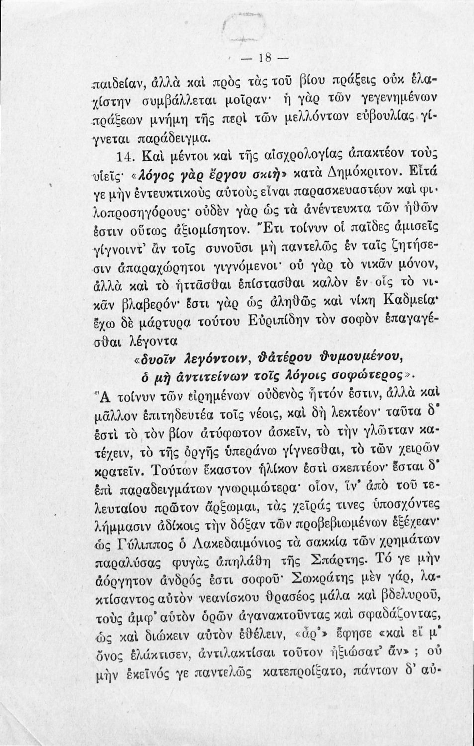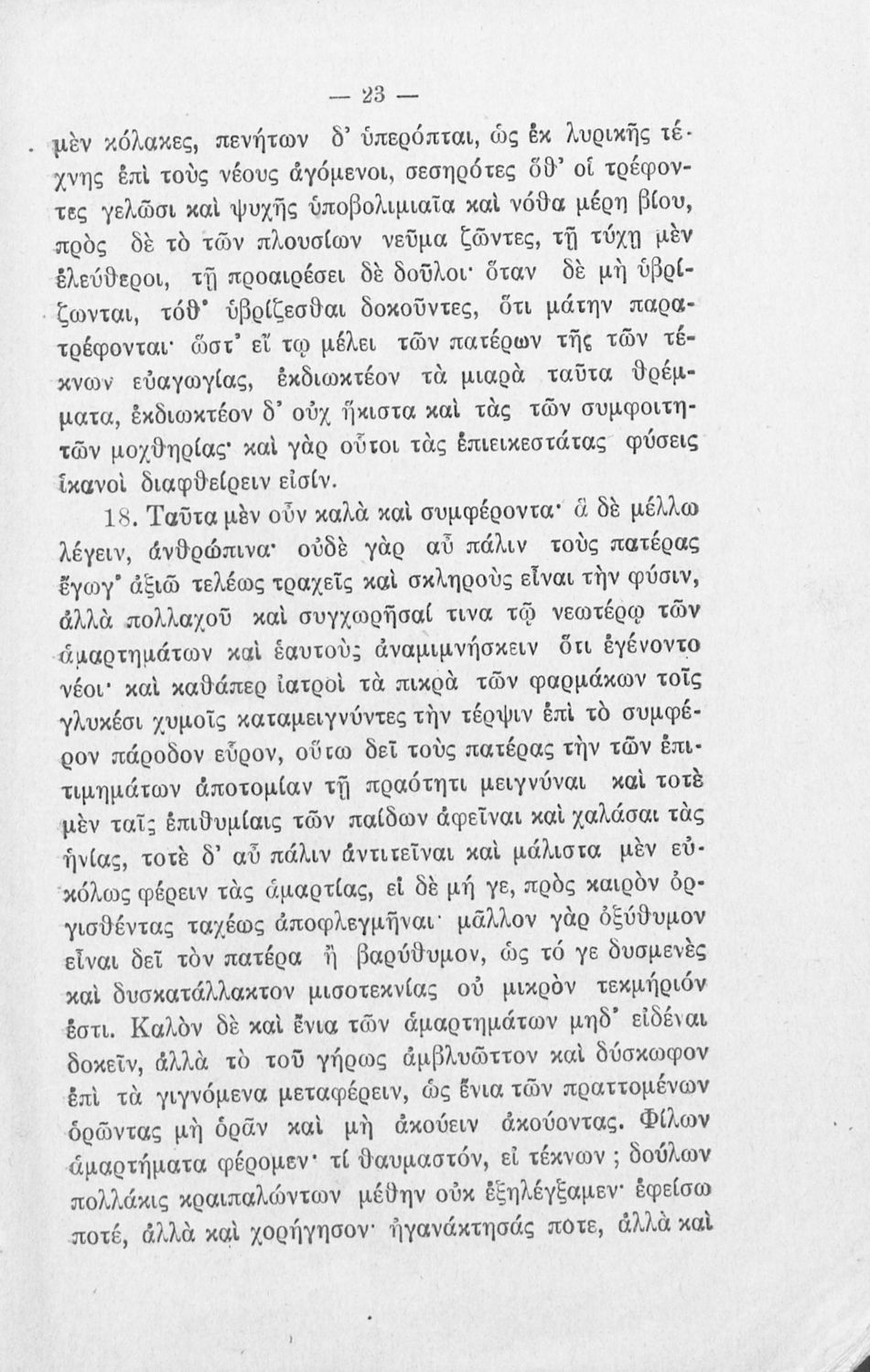 Σχολικό εγχειρίδιο Αρχαίων Ελληνικών που περιλαμβάνει το έργο του Πλούταρχου Περί παίδων αγωγής, εισαγωγή στη ζωή και το έργο του, και ερμηνευτικές σημειώσεις.