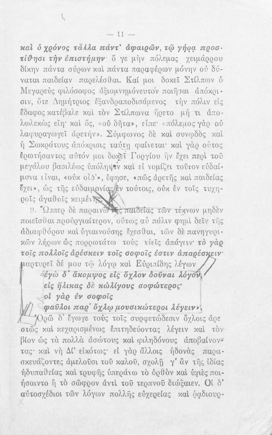 Κωδικός αναγνώρισης: 02-01838 Τίτλος: Πλουτάρχου Περί παίδων αγωγής μετά προλεγομένων και σημειώσεων προς χρήσιν των διδασκάλων και των μαθητών των Διδασκαλείων τεύχος Α΄ κείμενον Συγγραφέας: Πλούταρχος, Εμμ. Γ. Παντελάκης (σχόλια) Μέγεθος και υπόστρωμα: Σχολικό εγχειρίδιο, μαλακό εξώφυλλο, 56 σελίδες. |