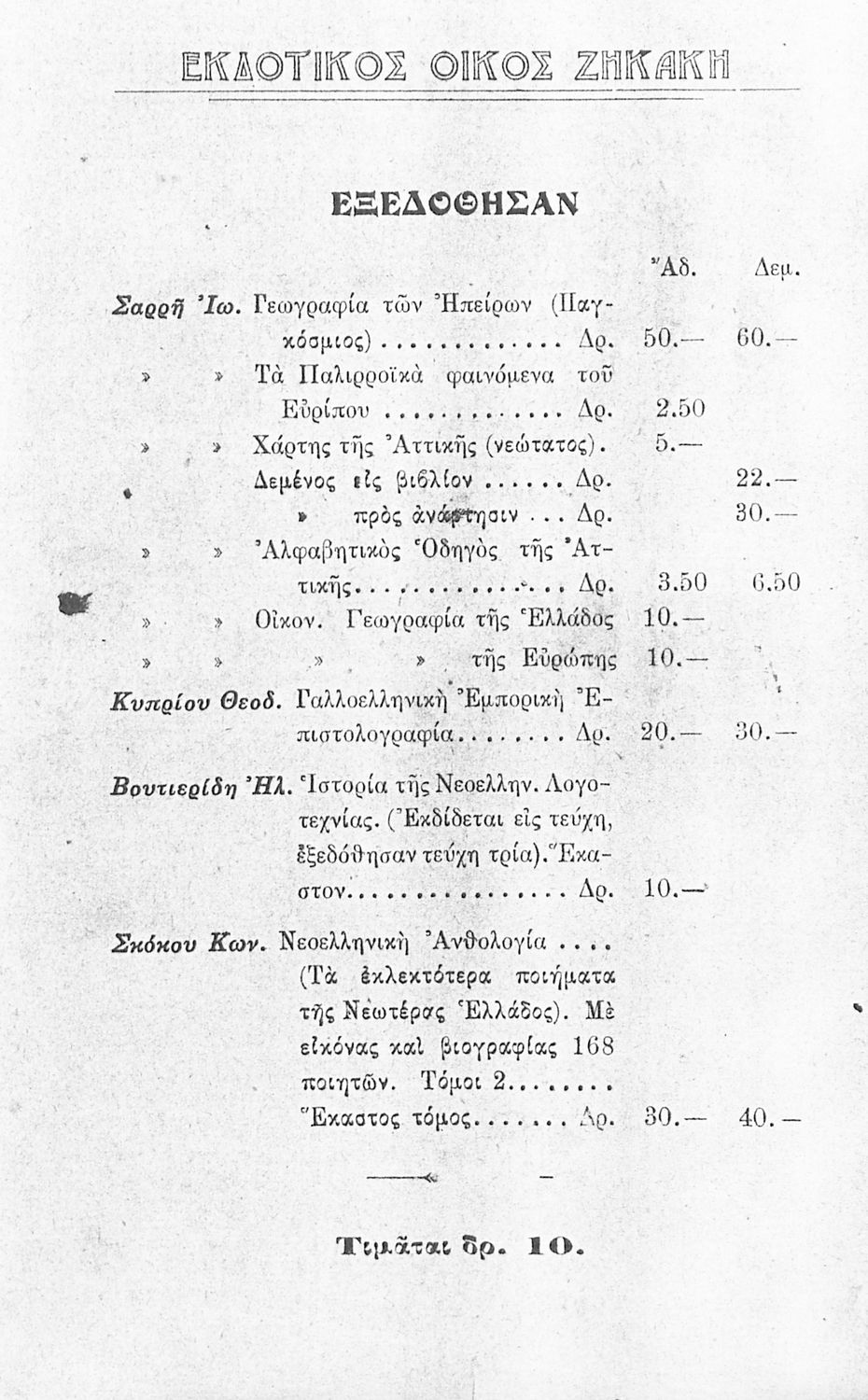 Εκδότης: Μιχαήλ Σ. Ζηκάκης Έτος έκδοσης: 1924 Τόπος έκδοσης: Αθήνα |