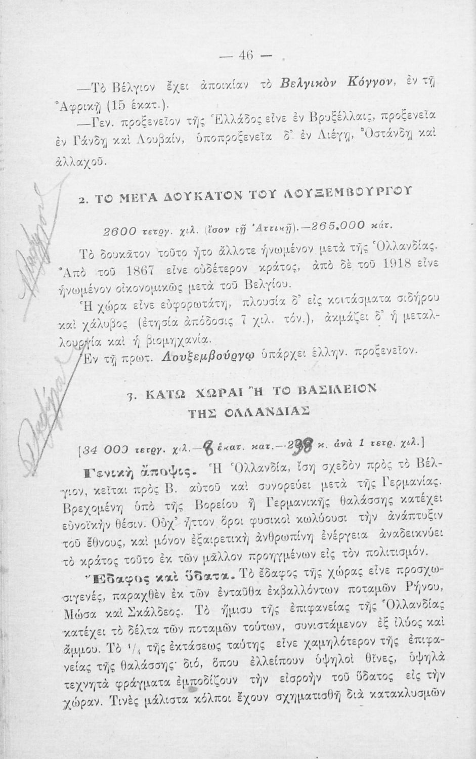 Πρόκειται για σχολικό εγχειρίδιο το οποίο προοριζόταν για τη διδασκαλία του μαθήματος της Οικονομικής Γεωγραφίας της Ευρωπαϊκής ηπείρου, εκτός των βαλκανικών κρατών. Φέρει τη σφραγίδα του εκδότη.