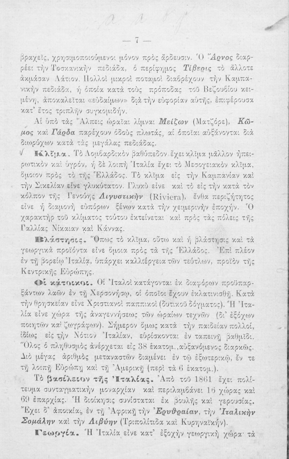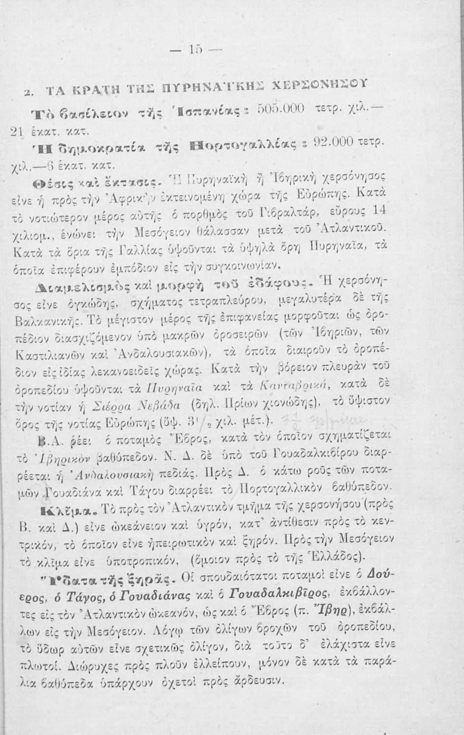 Βαθμίδα εκπαίδευσης: Δευτεροβάθμια Τάξη: Β΄ Εμπορικών Σχολών Μάθημα: Γεωγραφία Γλώσσα: Καθαρεύουσα Παρουσίαση περιεχομένου: Πρόκειται για σχολικό εγχειρίδιο το οποίο προοριζόταν για τη διδασκαλία του μαθήματος της Οικονομικής Γεωγραφίας της Ευρωπαϊκής ηπείρου, εκτός των βαλκανικών κρατών. Φέρει τη σφραγίδα του εκδότη. |