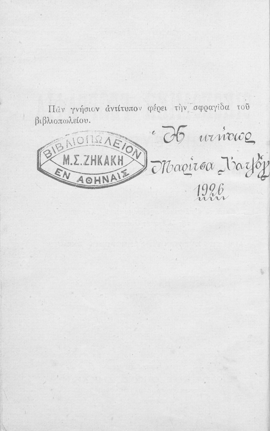 Εκδότης: Μιχαήλ Σ. Ζηκάκης Έτος έκδοσης: 1924 Τόπος έκδοσης: Αθήνα |