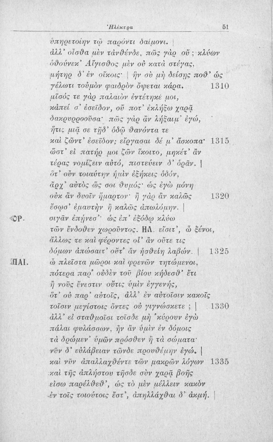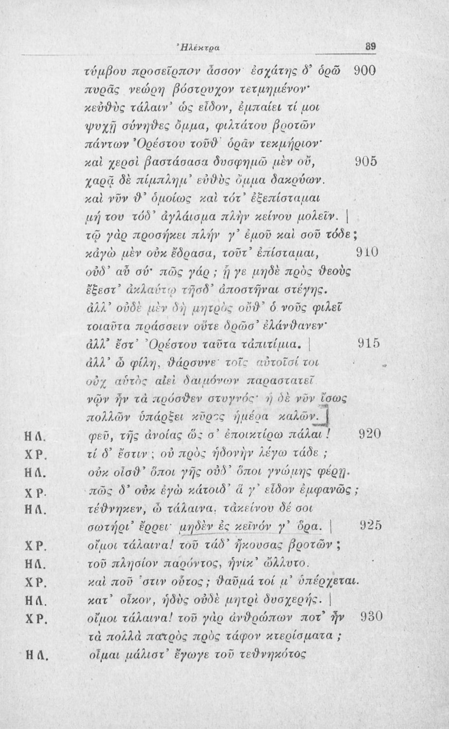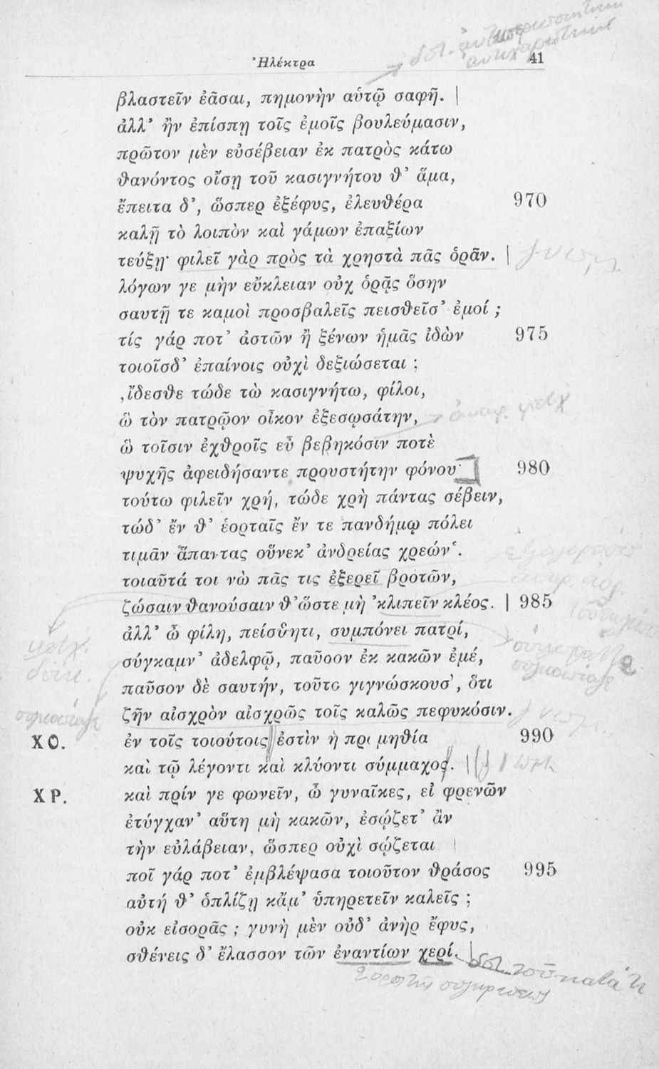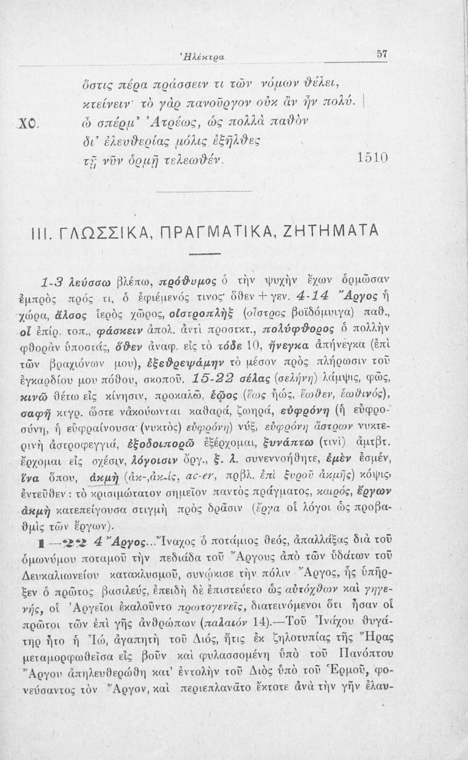 Μαθητικό βοήθημα Αρχαίων Ελληνικών που περιλαμβάνει την Ηλέκτρα του Σοφοκλή και γλωσσικές και πραγματικές σημειώσεις.