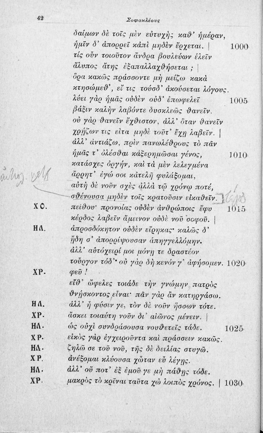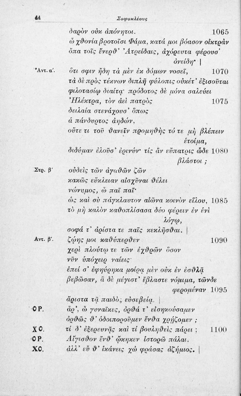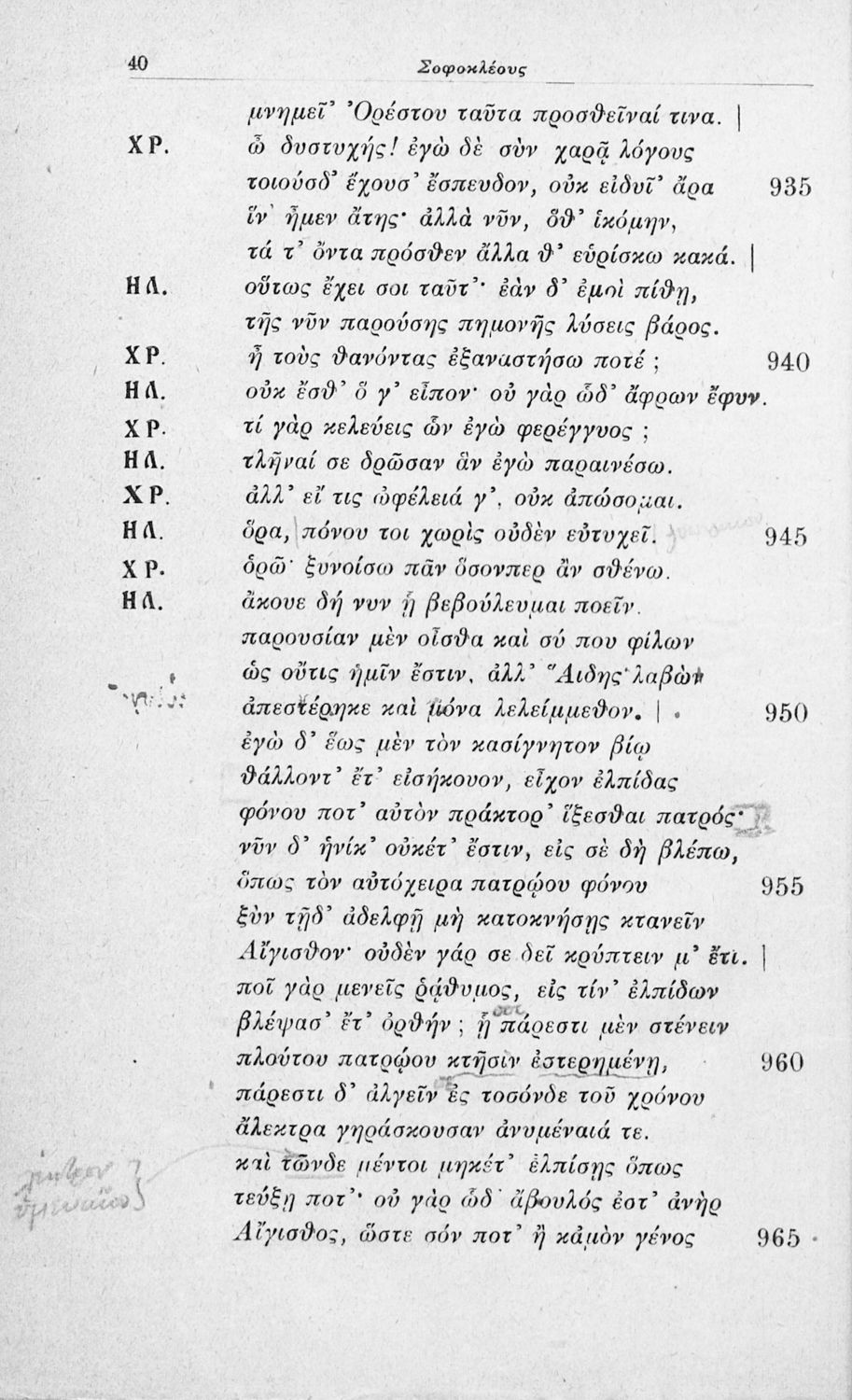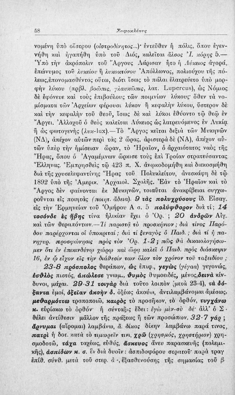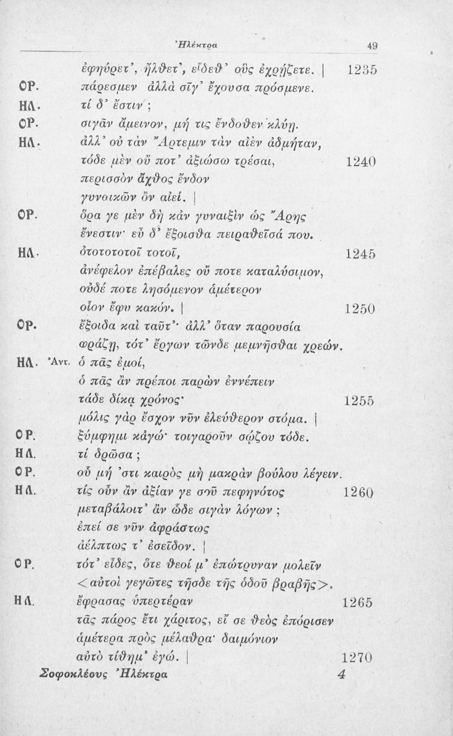 Μαθητικό βοήθημα Αρχαίων Ελληνικών που περιλαμβάνει την Ηλέκτρα του Σοφοκλή και γλωσσικές και πραγματικές σημειώσεις.