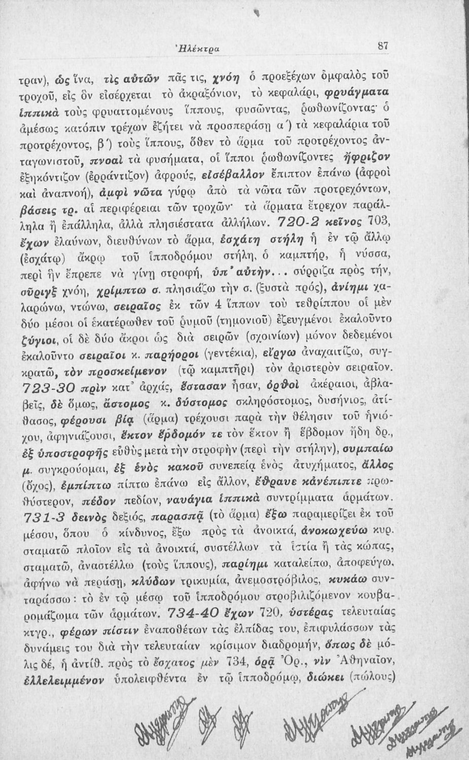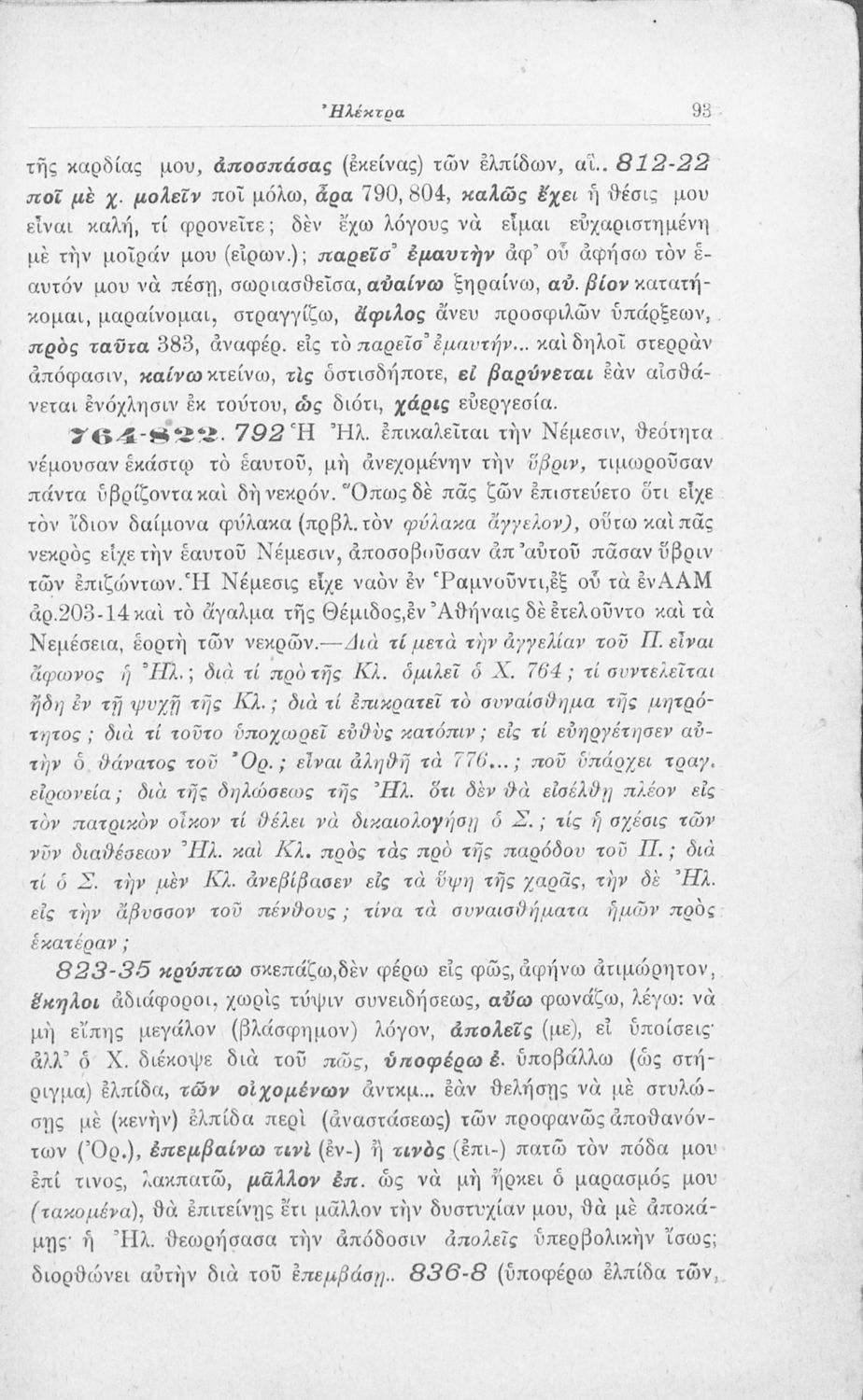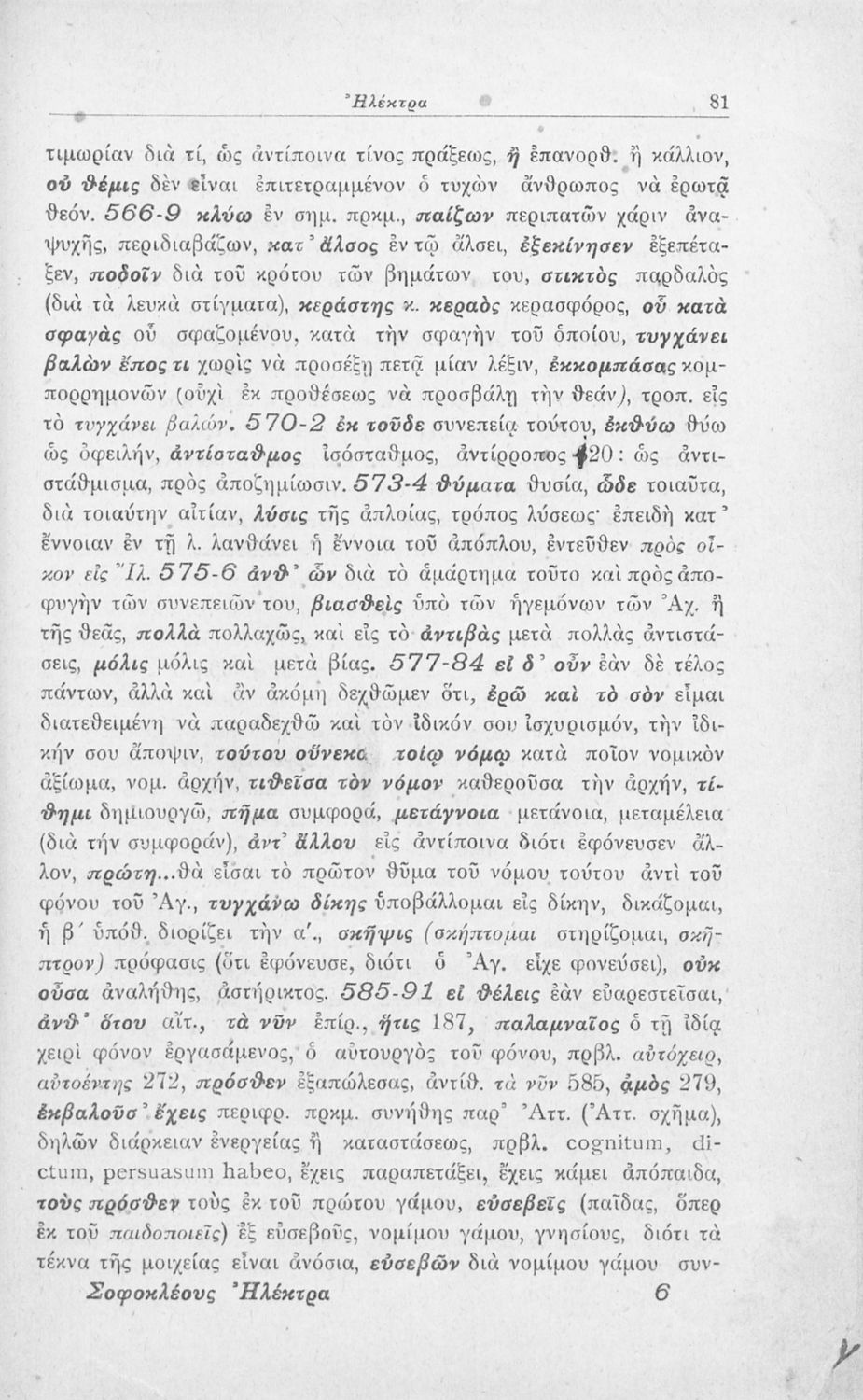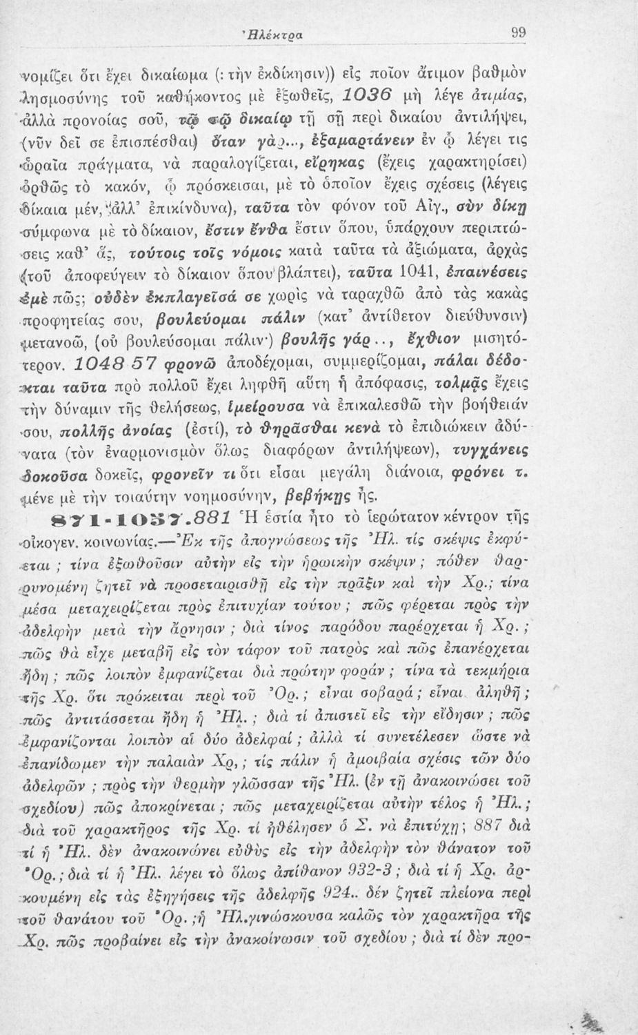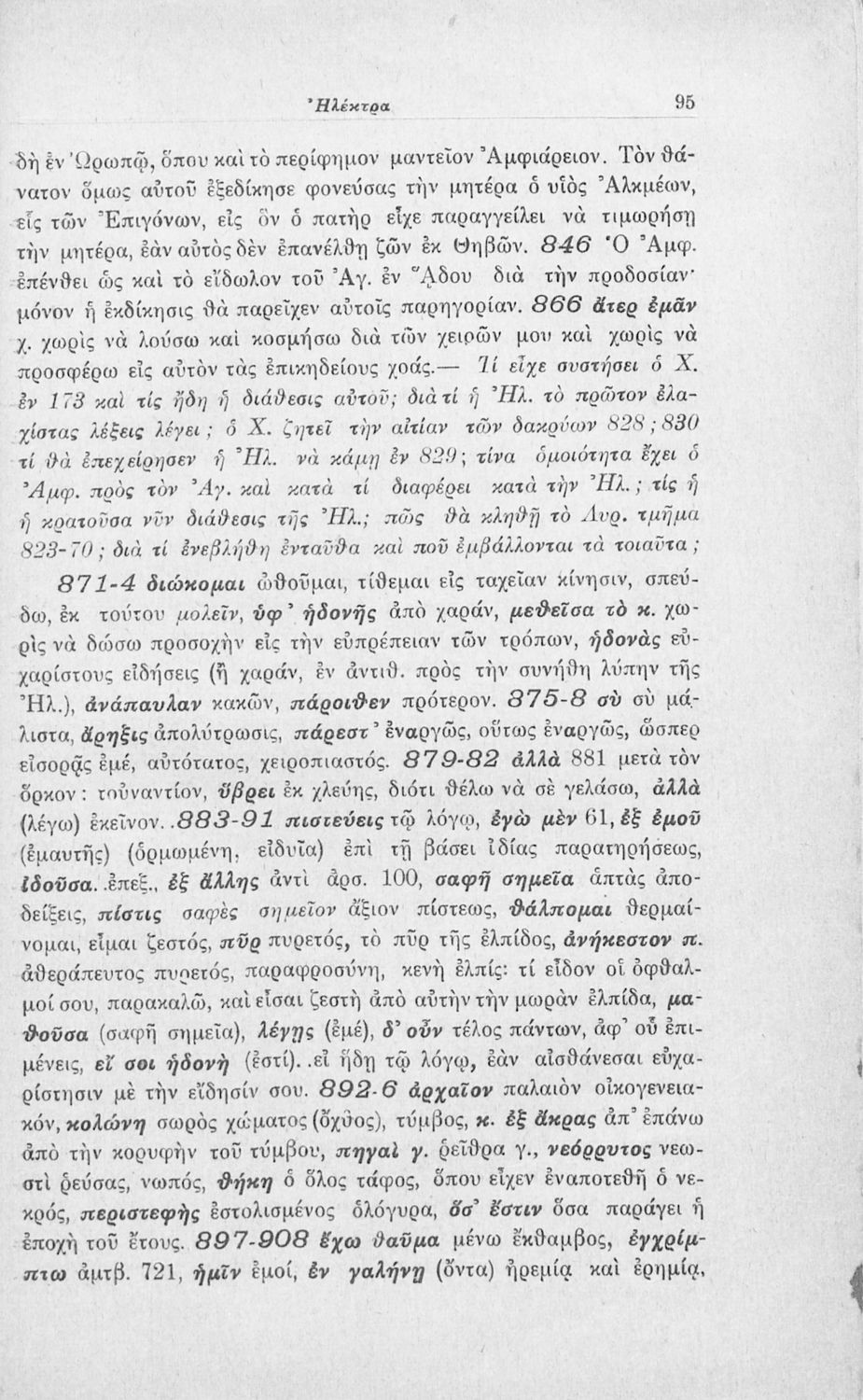 Μαθητικό βοήθημα Αρχαίων Ελληνικών που περιλαμβάνει την Ηλέκτρα του Σοφοκλή και γλωσσικές και πραγματικές σημειώσεις.