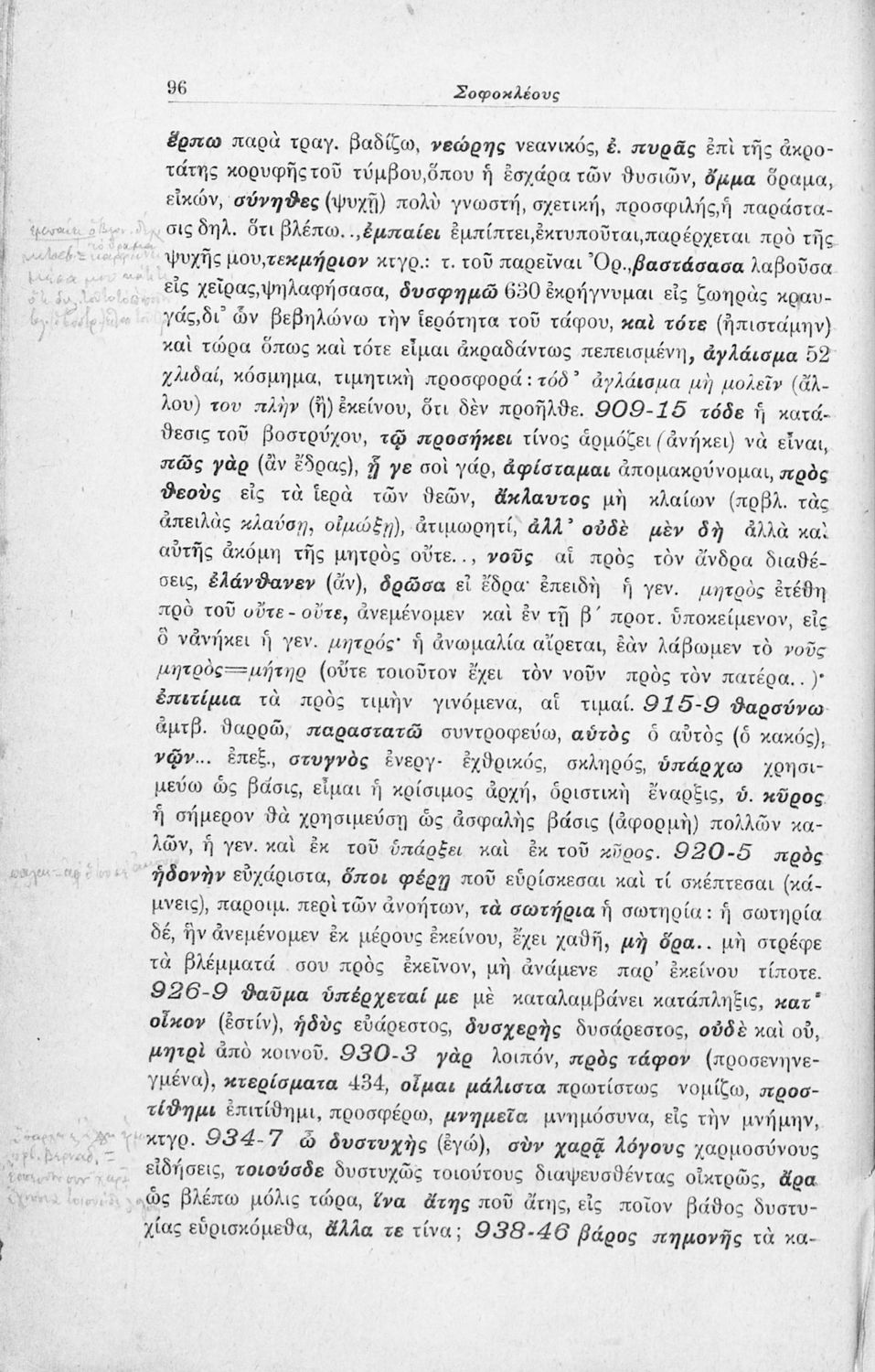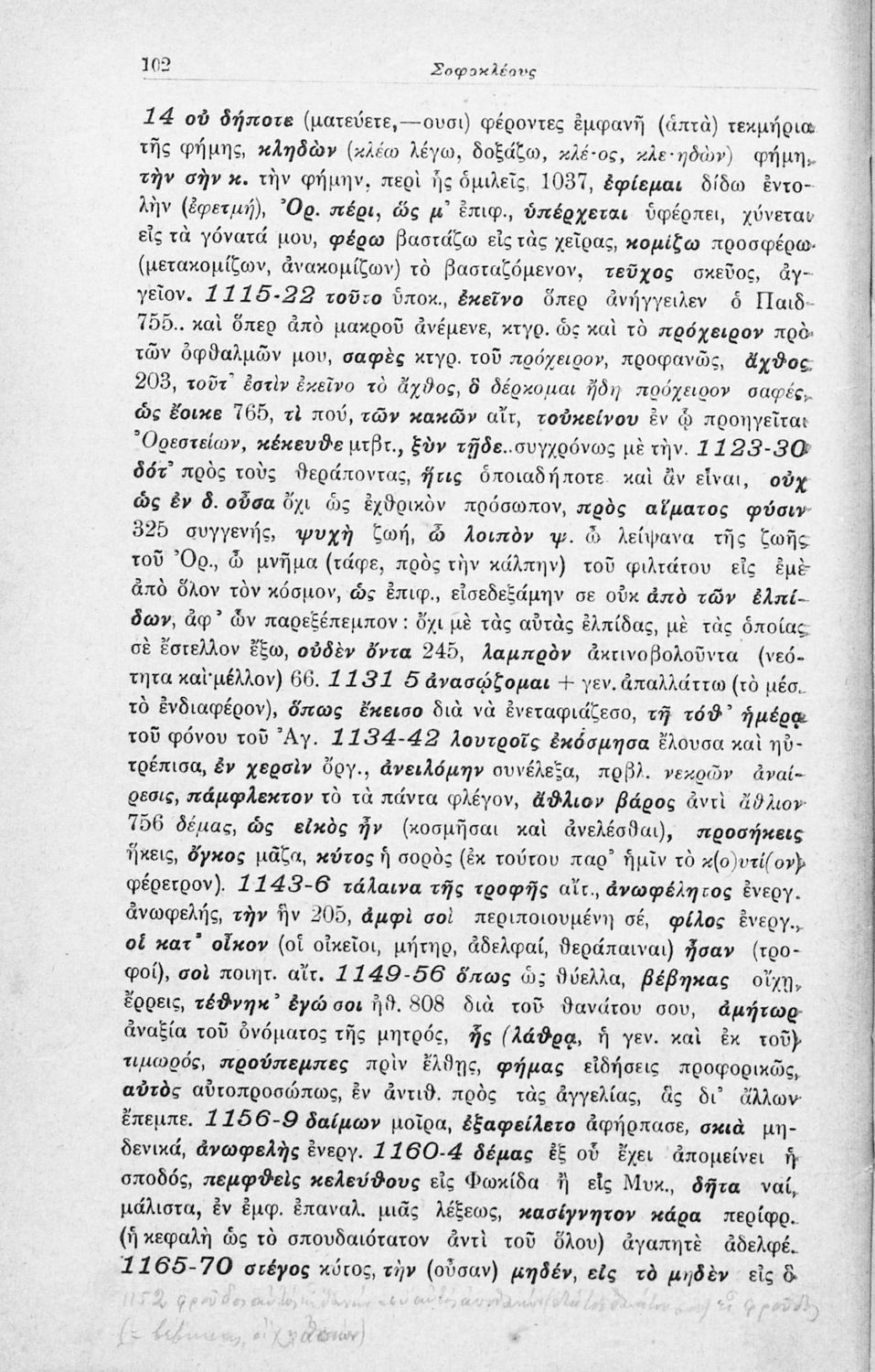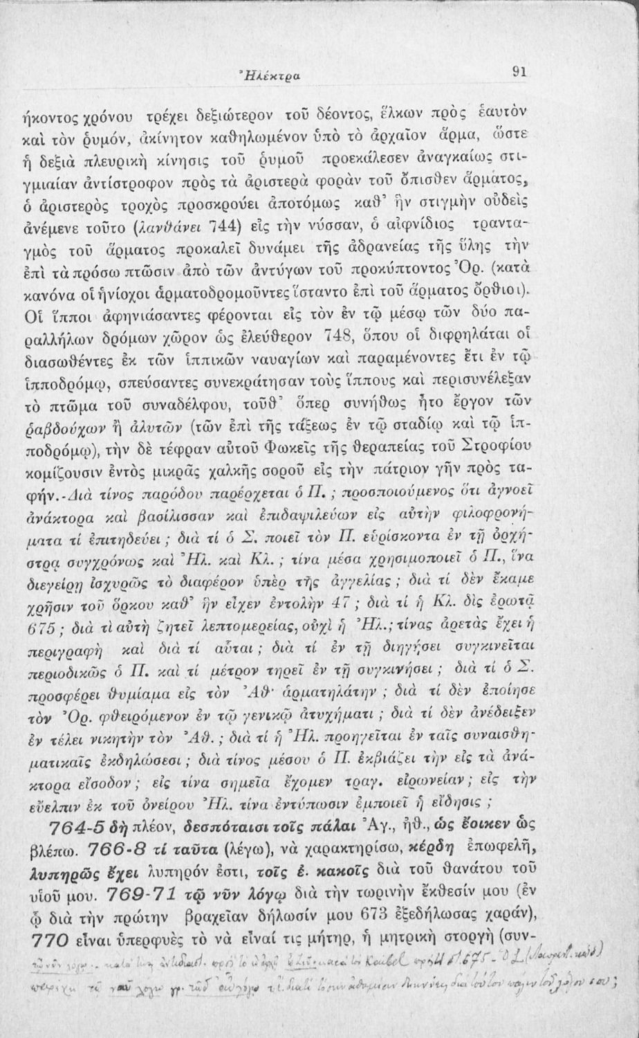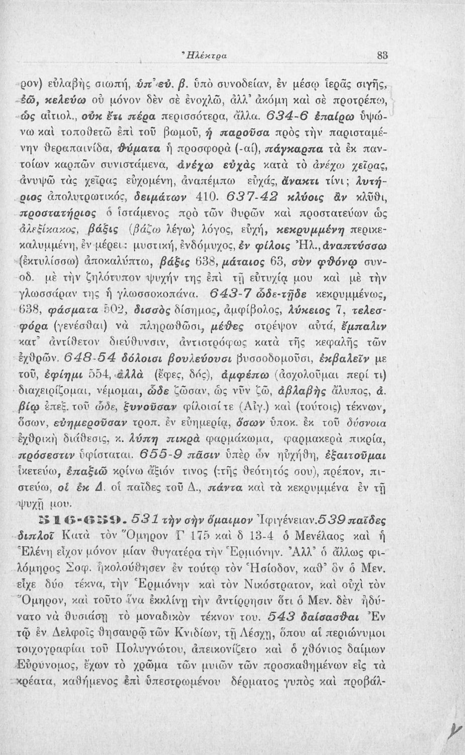 Μαθητικό βοήθημα Αρχαίων Ελληνικών που περιλαμβάνει την Ηλέκτρα του Σοφοκλή και γλωσσικές και πραγματικές σημειώσεις.