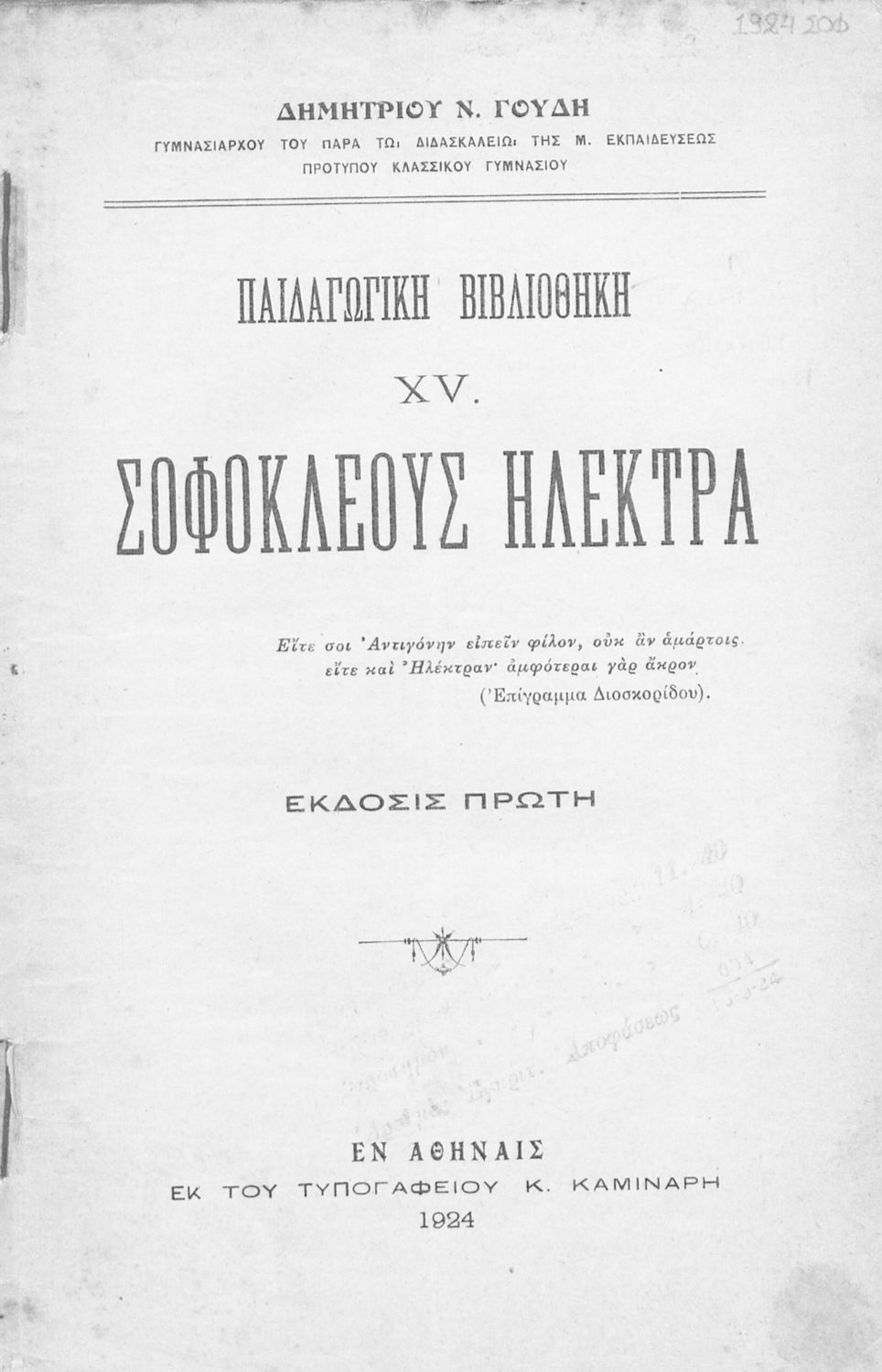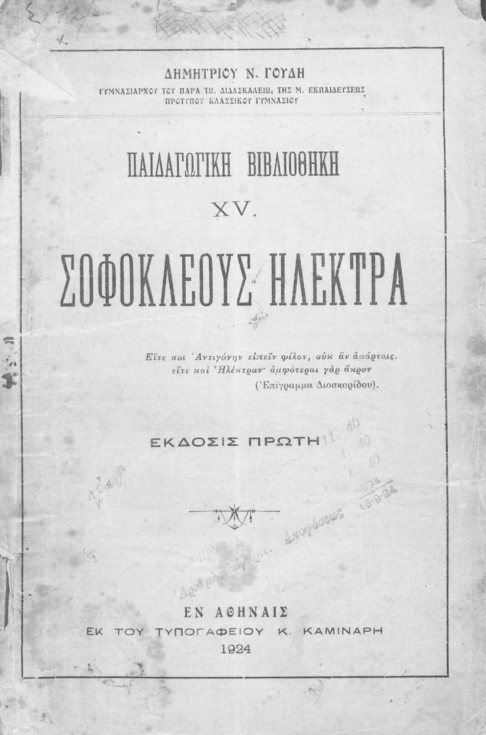 Σοφοκλέους Ηλέκτρα   [1927, 1η Έκδοση]