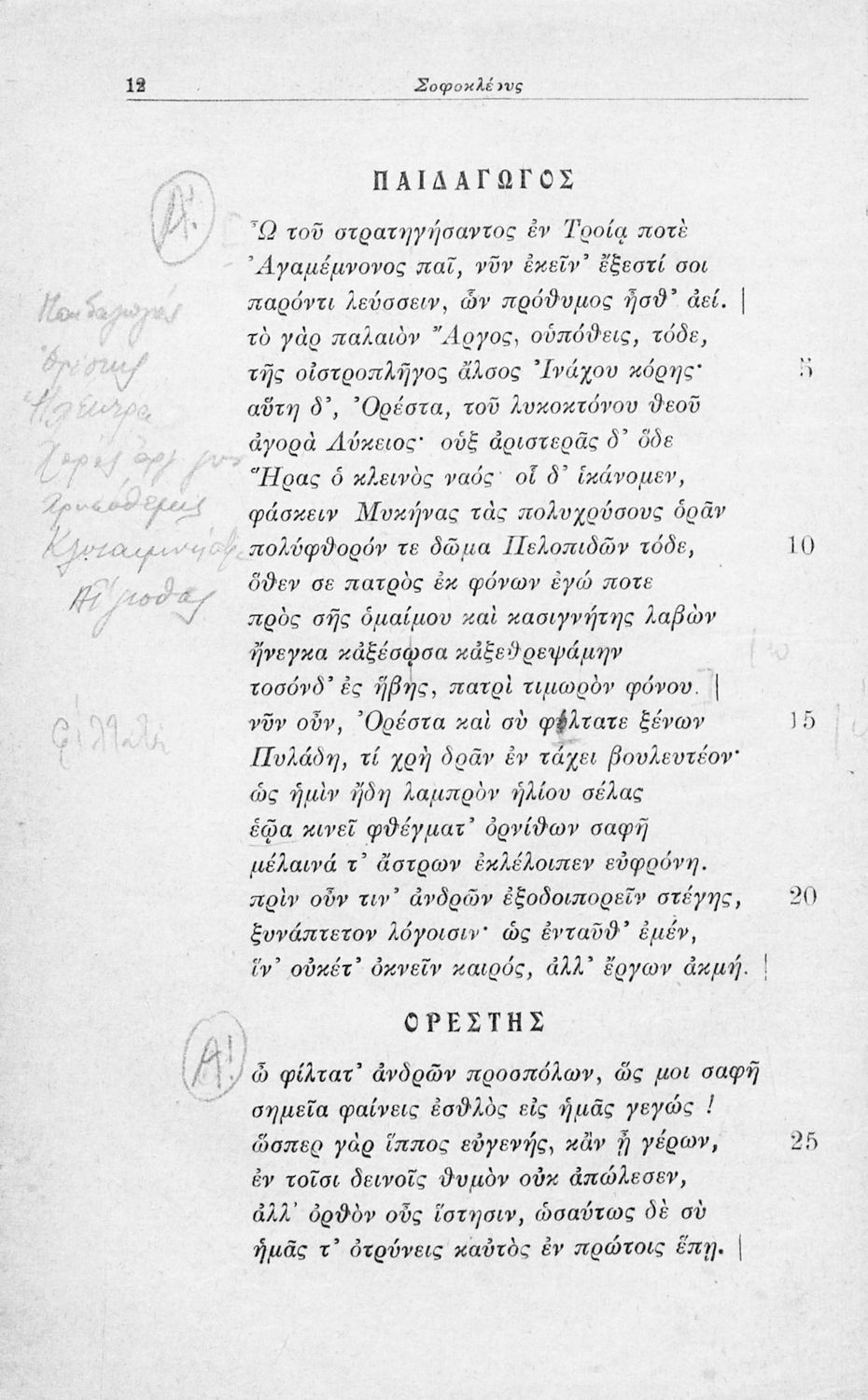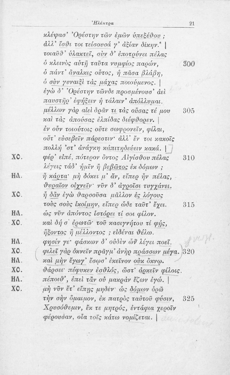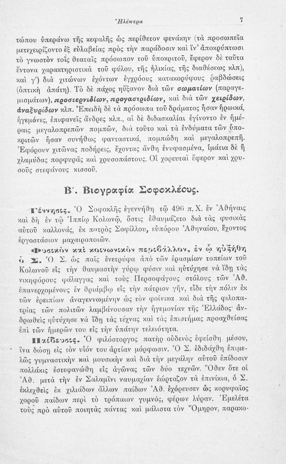 Μαθητικό βοήθημα Αρχαίων Ελληνικών που περιλαμβάνει την Ηλέκτρα του Σοφοκλή και γλωσσικές και πραγματικές σημειώσεις.
