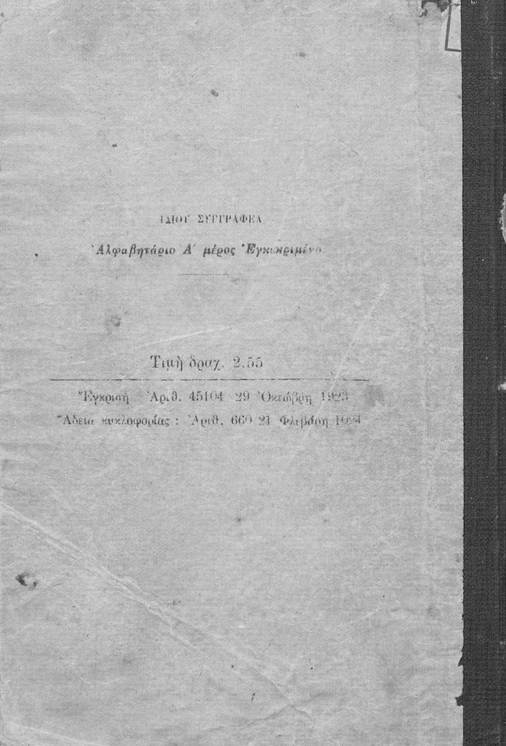 Αναγνωστικό Δημοτικού το οποίο περιέχει γράμματα, λέξεις και συλλαβές για την εκμάθηση της ελληνικής γλώσσας.