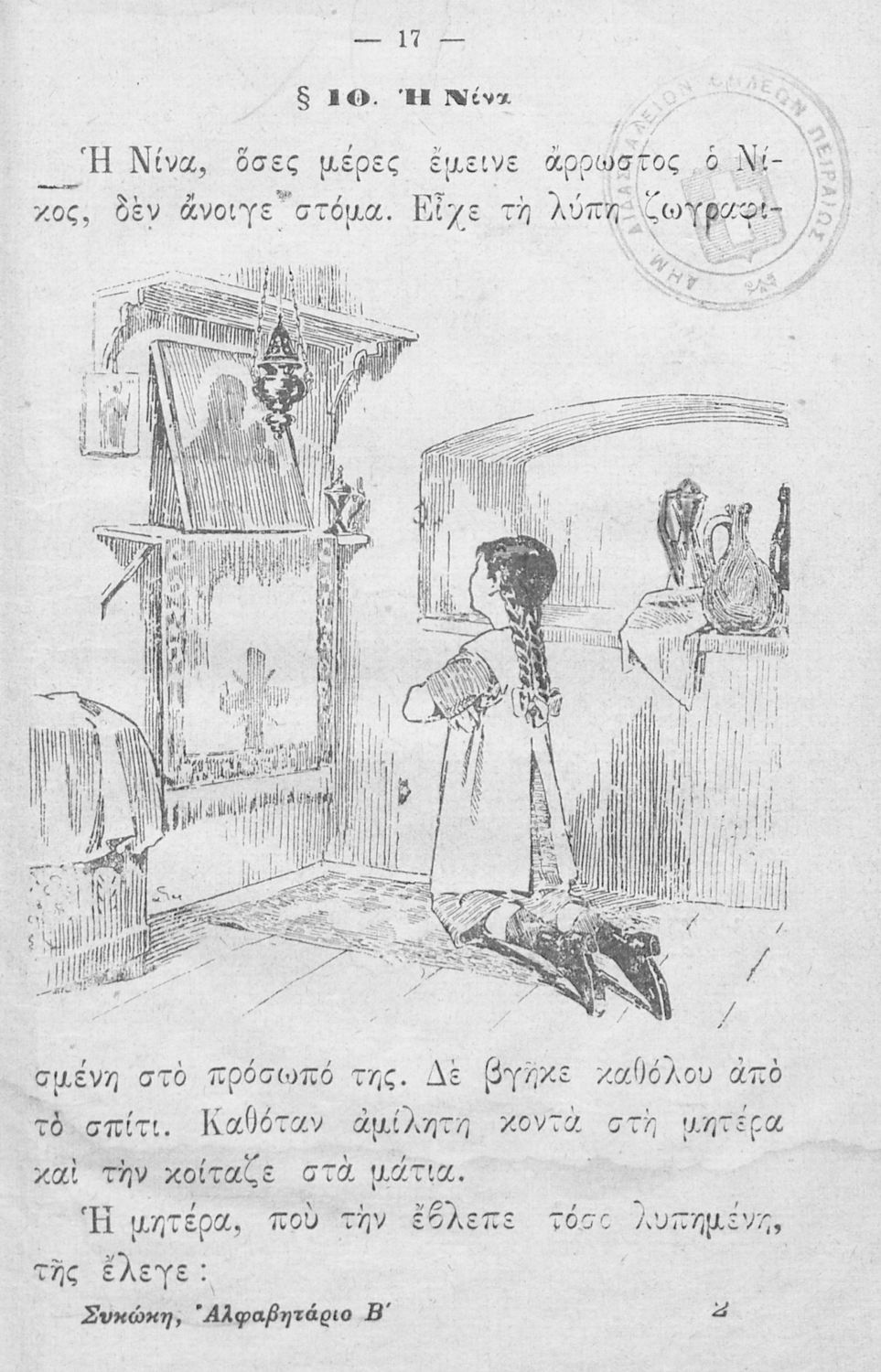 Αναγνωστικό Δημοτικού το οποίο περιέχει γράμματα, λέξεις και συλλαβές για την εκμάθηση της ελληνικής γλώσσας.