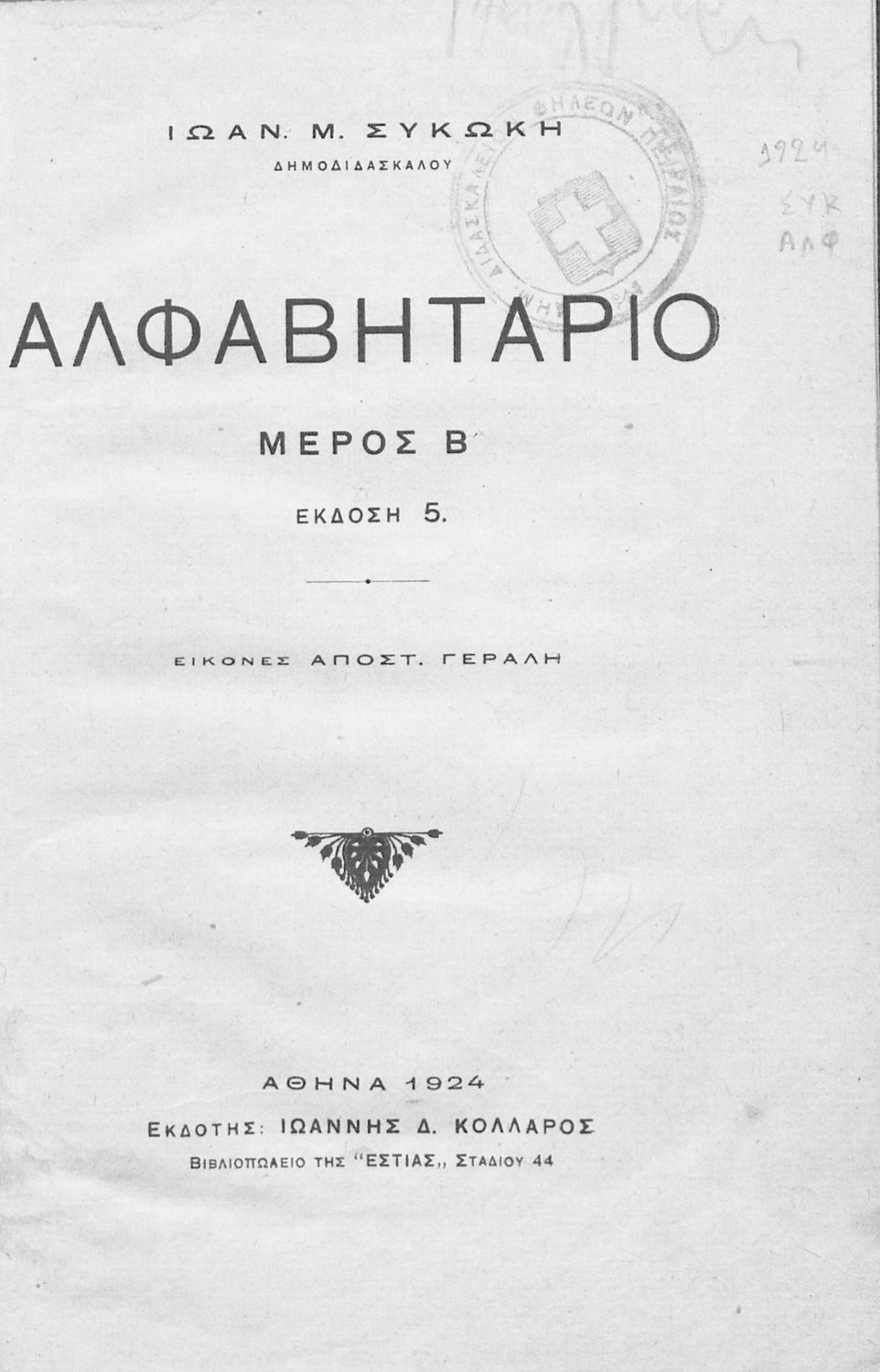 Εκδότης: Ιωάννης Δ. Κολλάρος Έτος έκδοσης: 1924 Τόπος έκδοσης: Αθήνα Έκδοση: 5η Υπουργική απόφαση / Σύμβαση: 45104/29-10-1923 |