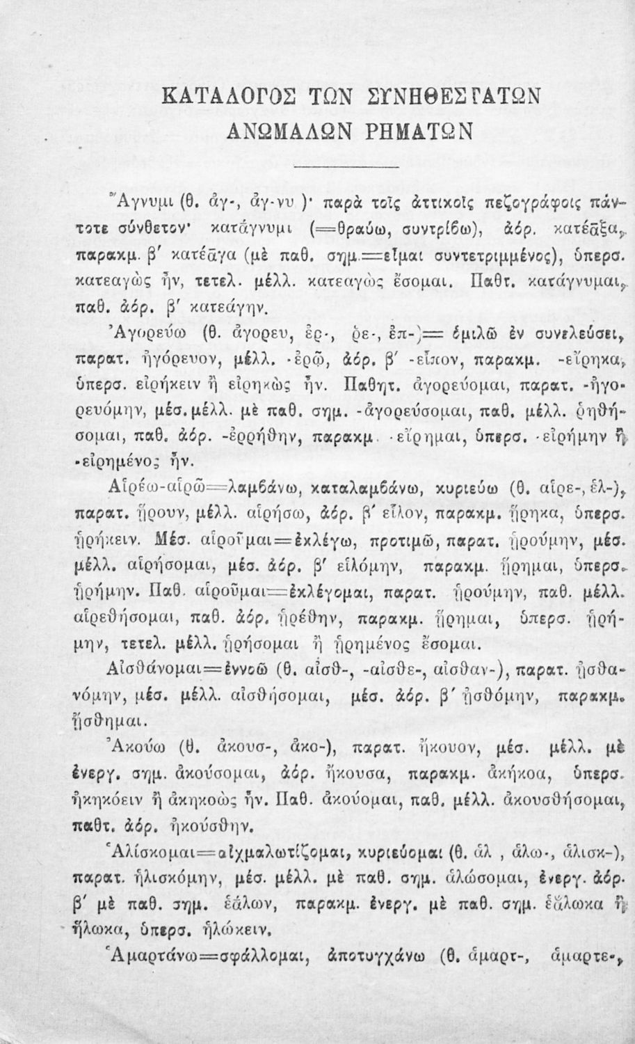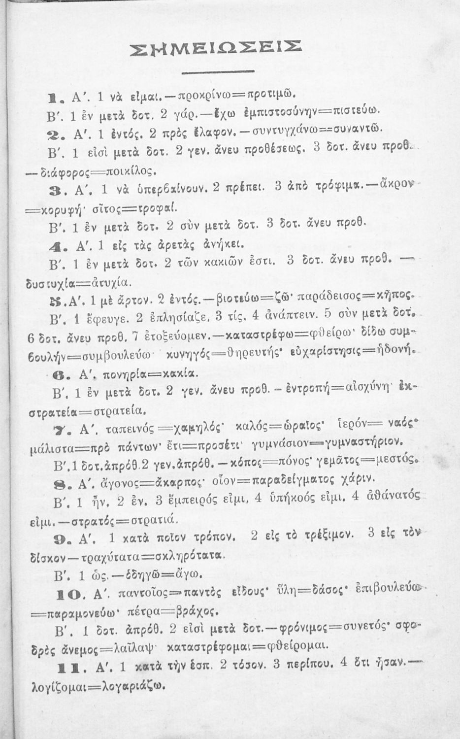 Σχολικό εγχειρίδιο Αρχαίων Ελληνικών για τα Ελληνικά Σχολεία και Παρθεναγωγεία που περιέχει τους κανόνες γραμματικής και είναι χωρισμένο σε φθογγολογικό, τυπολογικό και ετυμολογικό μέρος.