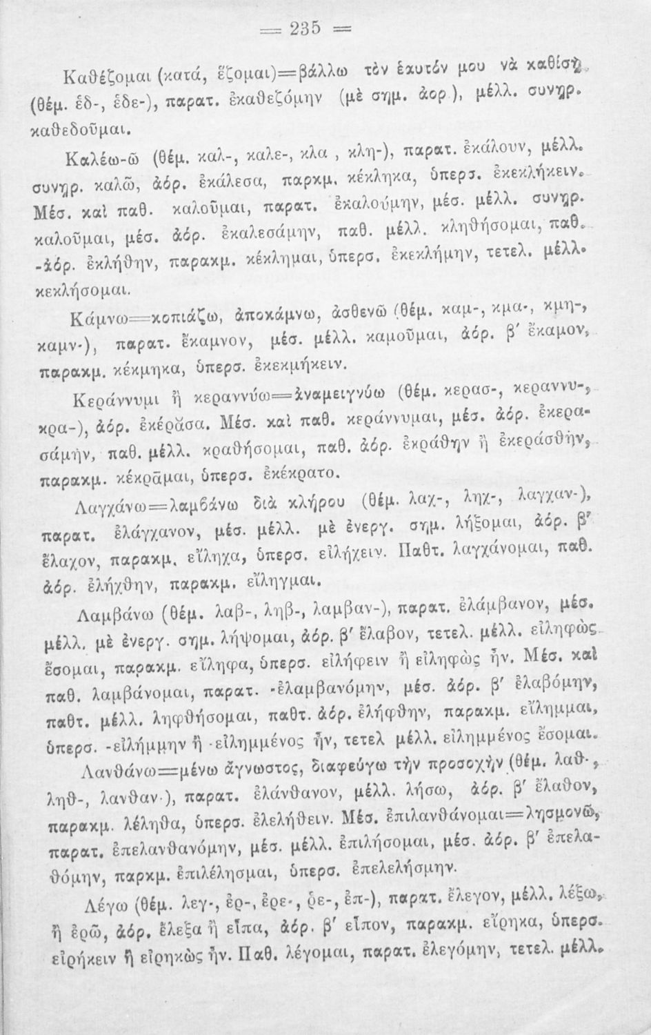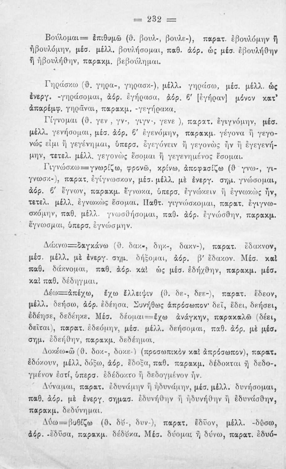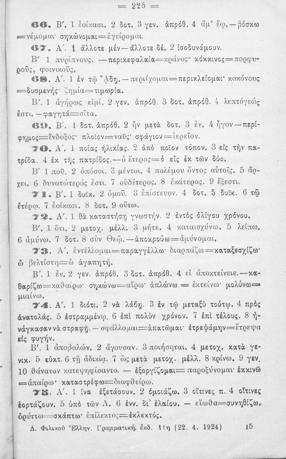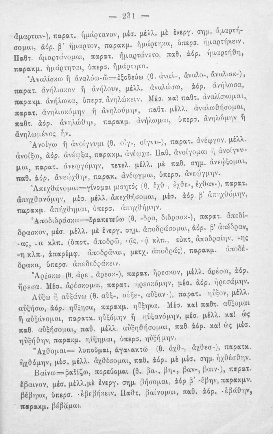 Σχολικό εγχειρίδιο Αρχαίων Ελληνικών Α΄, Β΄, Γ' Ελληνικού Σχολείου που αποτελεί γραμματική της αρχαίας ελληνικής και είναι χωρισμένο στο φθογγολογικό και το τυπολογικό μέρος. Περιέχει και σύντομα κείμενα που χρησιμοποιούνται για τη διδασκαλία των γραμματικών φαινομένων, λεξικολογικές σημειώσεις και κατάλογο ανωμάλων ρημάτων.