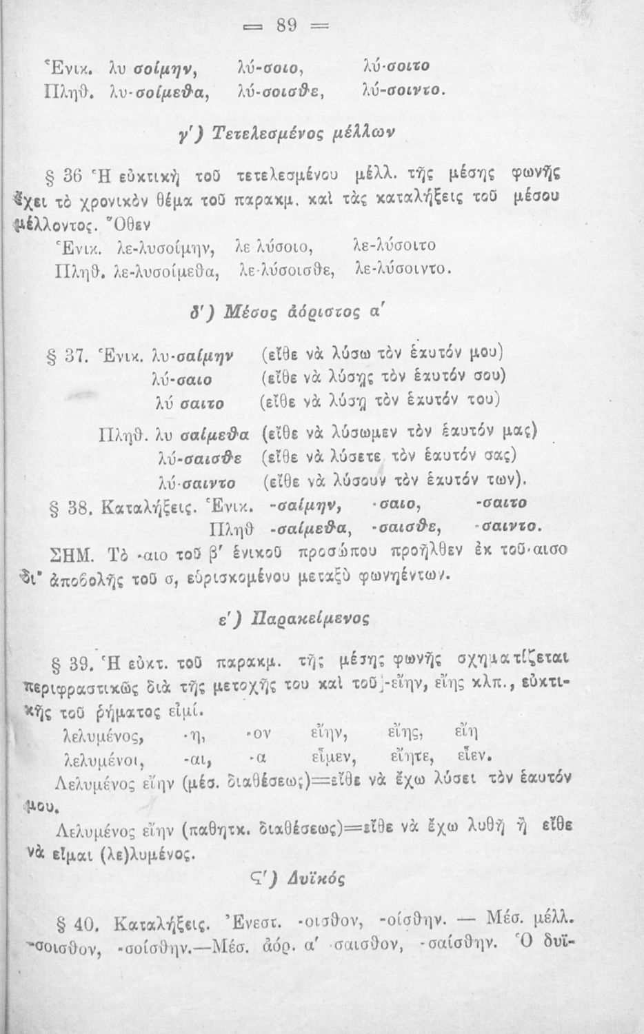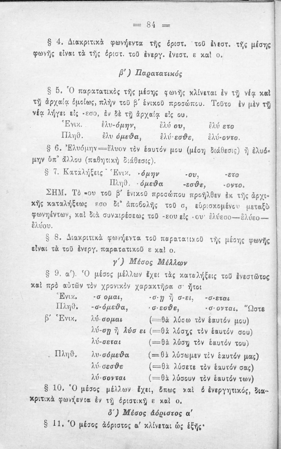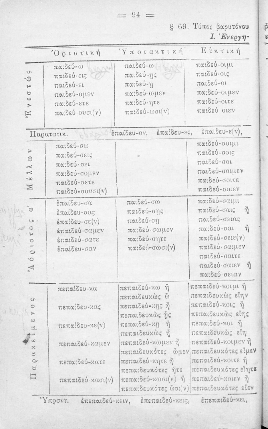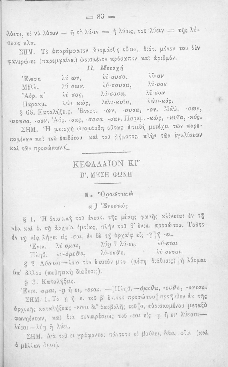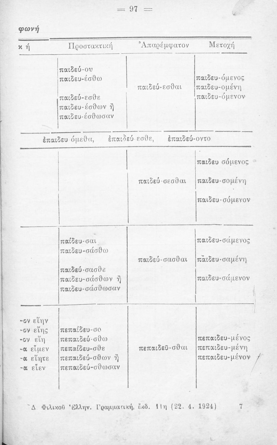 Σχολικό εγχειρίδιο Αρχαίων Ελληνικών Α΄, Β΄, Γ' Ελληνικού Σχολείου που αποτελεί γραμματική της αρχαίας ελληνικής και είναι χωρισμένο στο φθογγολογικό και το τυπολογικό μέρος. Περιέχει και σύντομα κείμενα που χρησιμοποιούνται για τη διδασκαλία των γραμματικών φαινομένων, λεξικολογικές σημειώσεις και κατάλογο ανωμάλων ρημάτων.