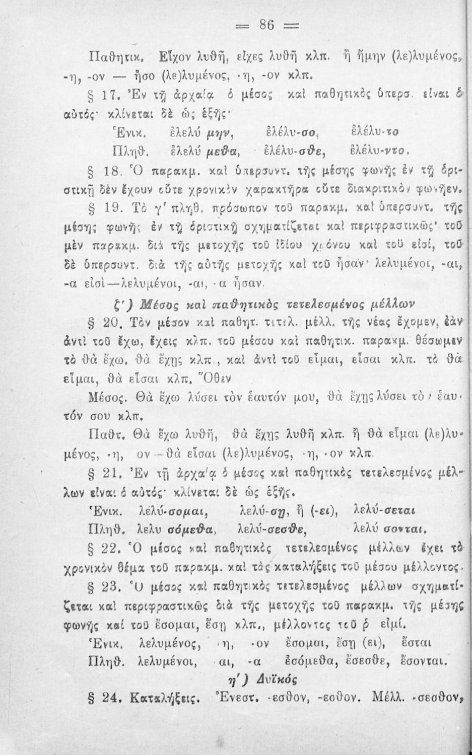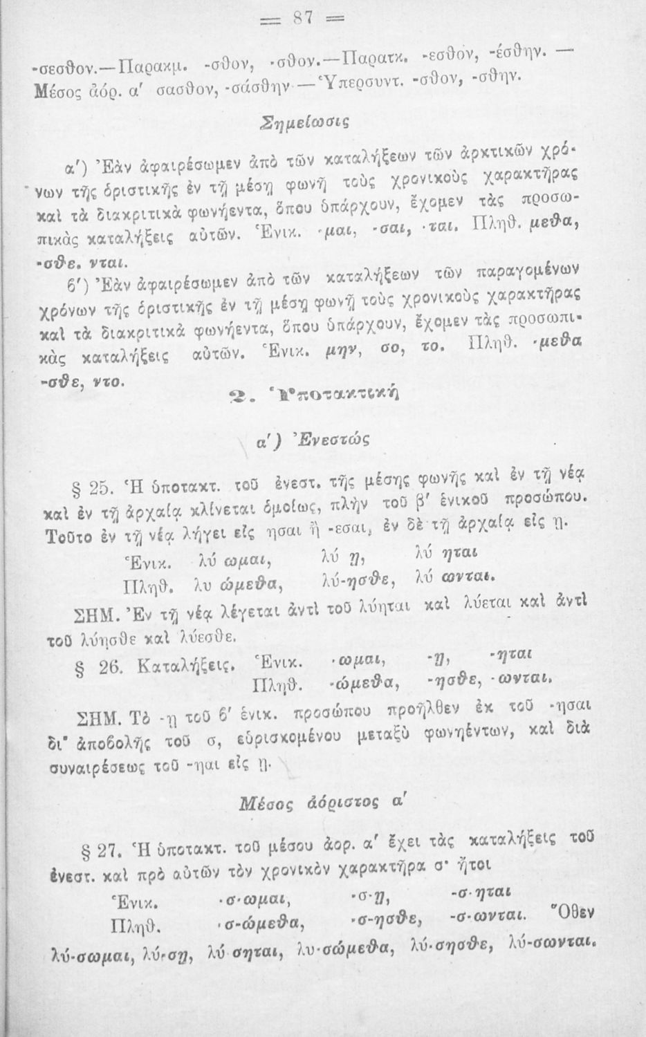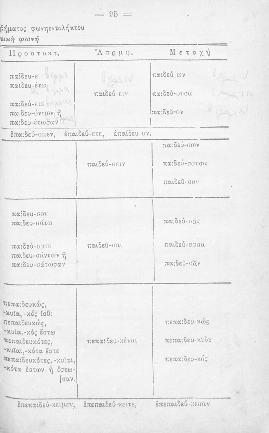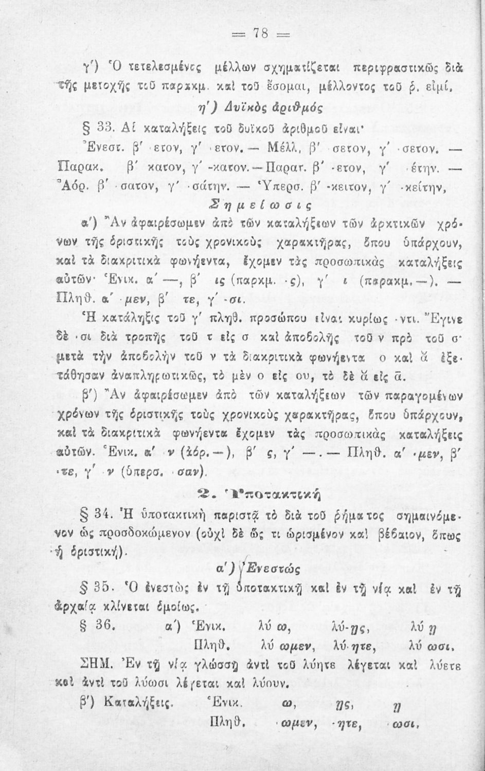 Σχολικό εγχειρίδιο Αρχαίων Ελληνικών για τα Ελληνικά Σχολεία και Παρθεναγωγεία που περιέχει τους κανόνες γραμματικής και είναι χωρισμένο σε φθογγολογικό, τυπολογικό και ετυμολογικό μέρος.