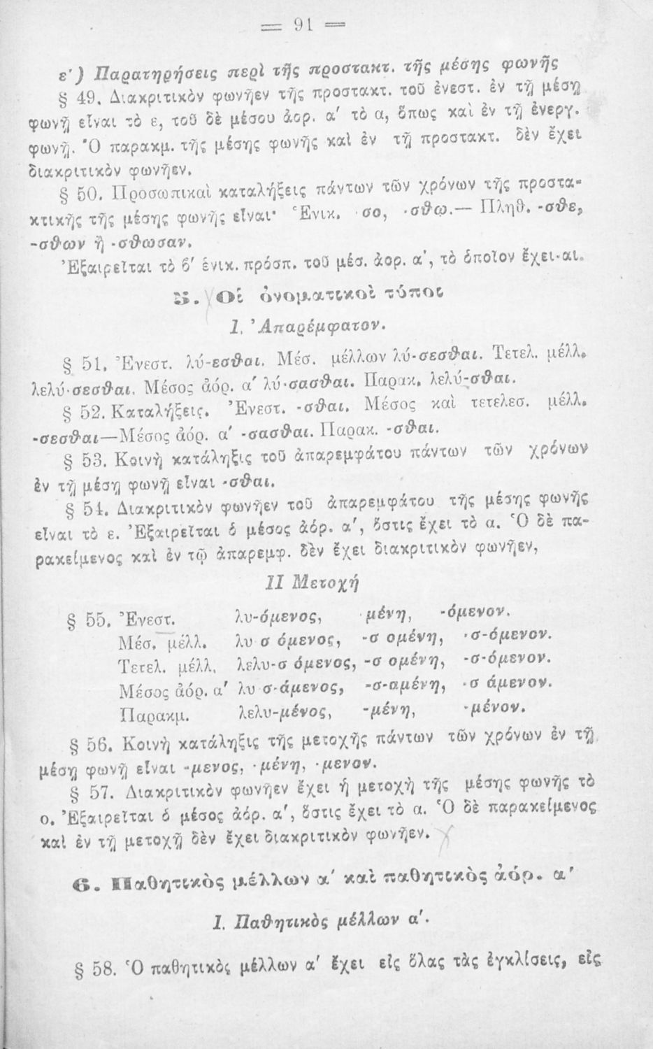 Σχολικό εγχειρίδιο Αρχαίων Ελληνικών Γ΄ Γυμνασίου που περιέχει τους κανόνες γραμματικής και είναι χωρισμένο σε φθογγολογικό, τυπολογικό και ετυμολογικό μέρος. Περιέχει και κατάλογο ανωμάλων ρημάτων.