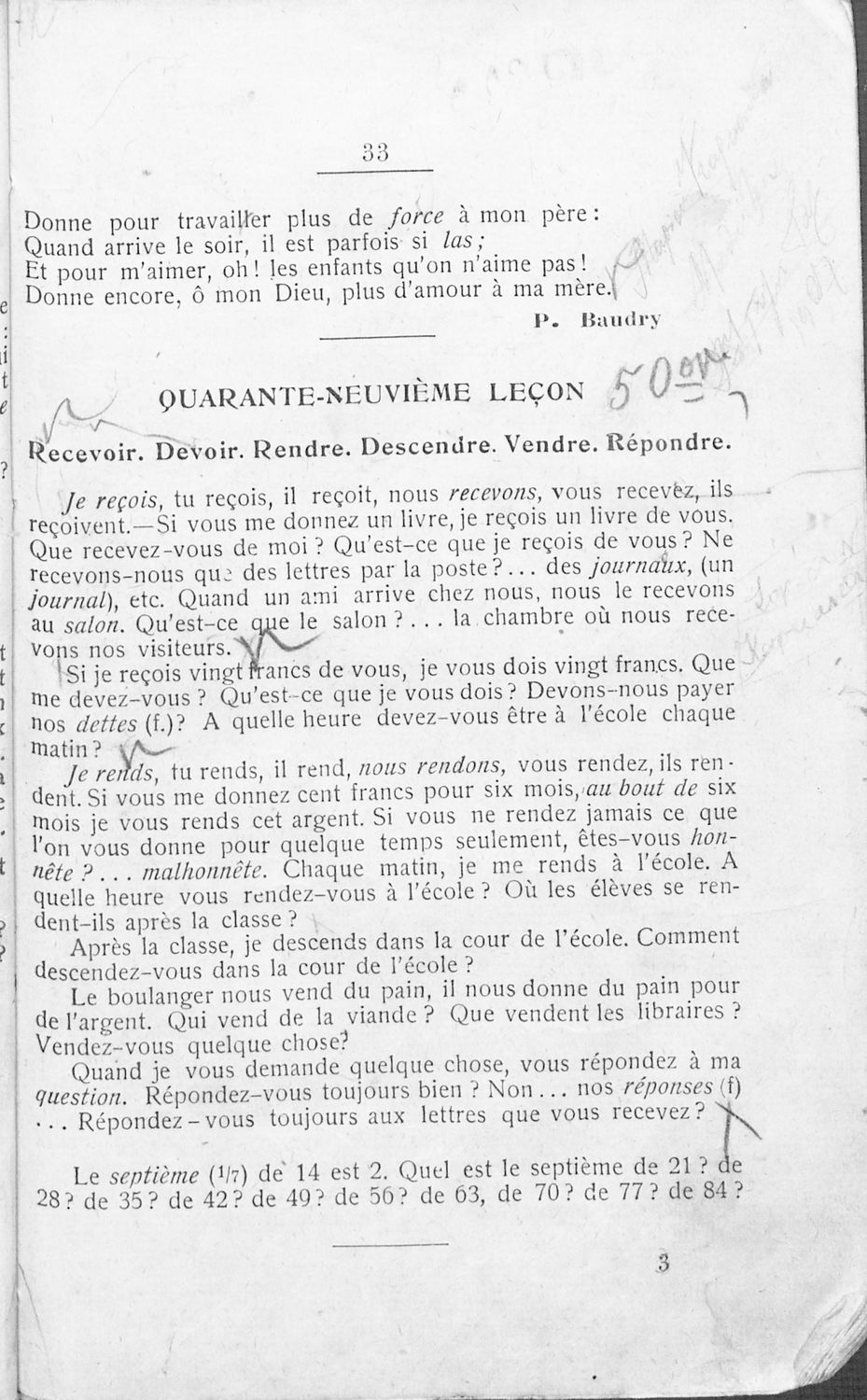 Μαθητικό βοήθημα Γαλλικών που περιλαμβάνει τους γραμματικούς κανόνες της γαλλικής γλώσσας και κείμενα για τη διδασκαλία τους.