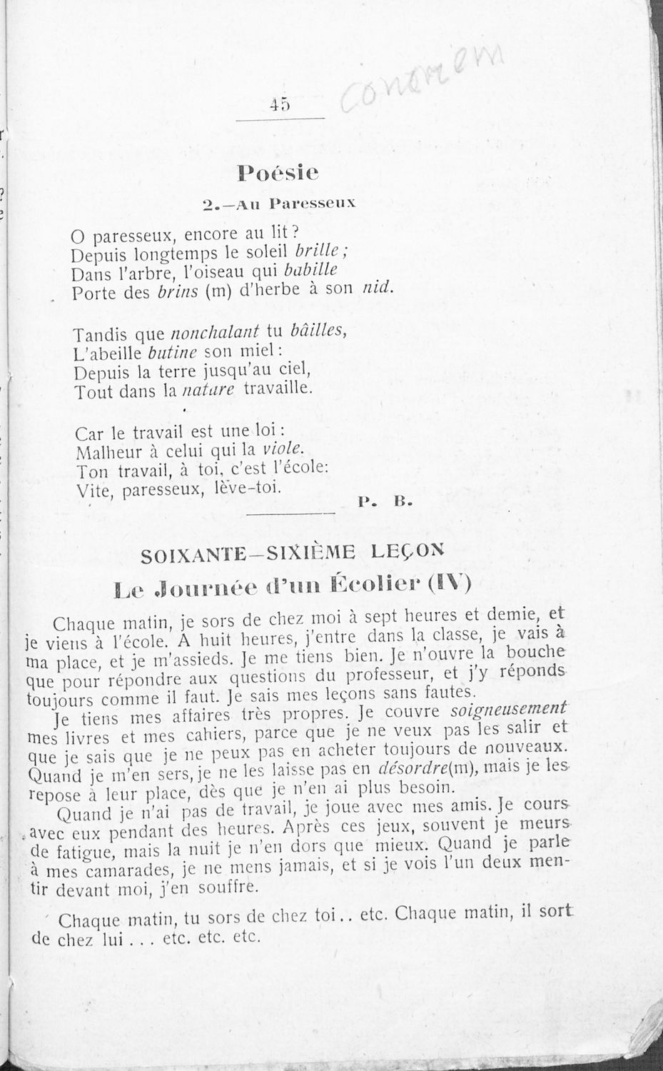 Σχολικό εγχειρίδιο Γαλλικών που περιλαμβάνει τους κανόνες γραμματικής και κείμενα για την εξοικείωση των μαθητών με τον προφορικό και γραπτό λόγο.