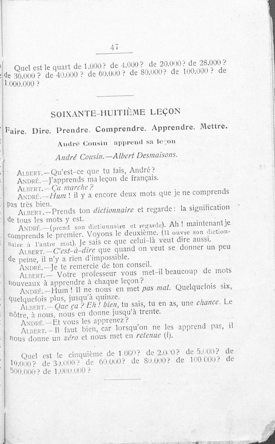 Σχολικό εγχειρίδιο Γαλλικών Α΄ Γυμνασίου το οποίο περιέχει σειρά αποσπασμάτων από κλασσικά έργα Γάλλων συγγραφέων και λεξιλόγιο.