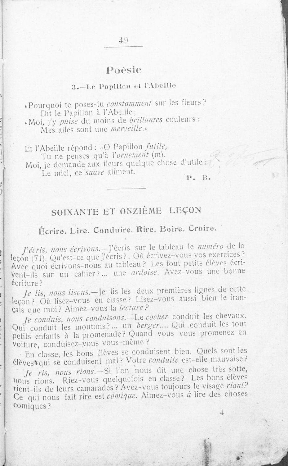 Κωδικός αναγνώρισης: 02-01848 Τίτλος: Je parle francais cour elementaire methode directe grammaticale Συγγραφέας: Pierre Baudry Μέγεθος και υπόστρωμα: Σχολικό εγχειρίδιο, μαλακό εξώφυλλο, 102 σελίδες. |