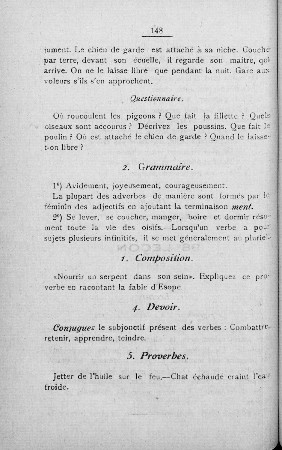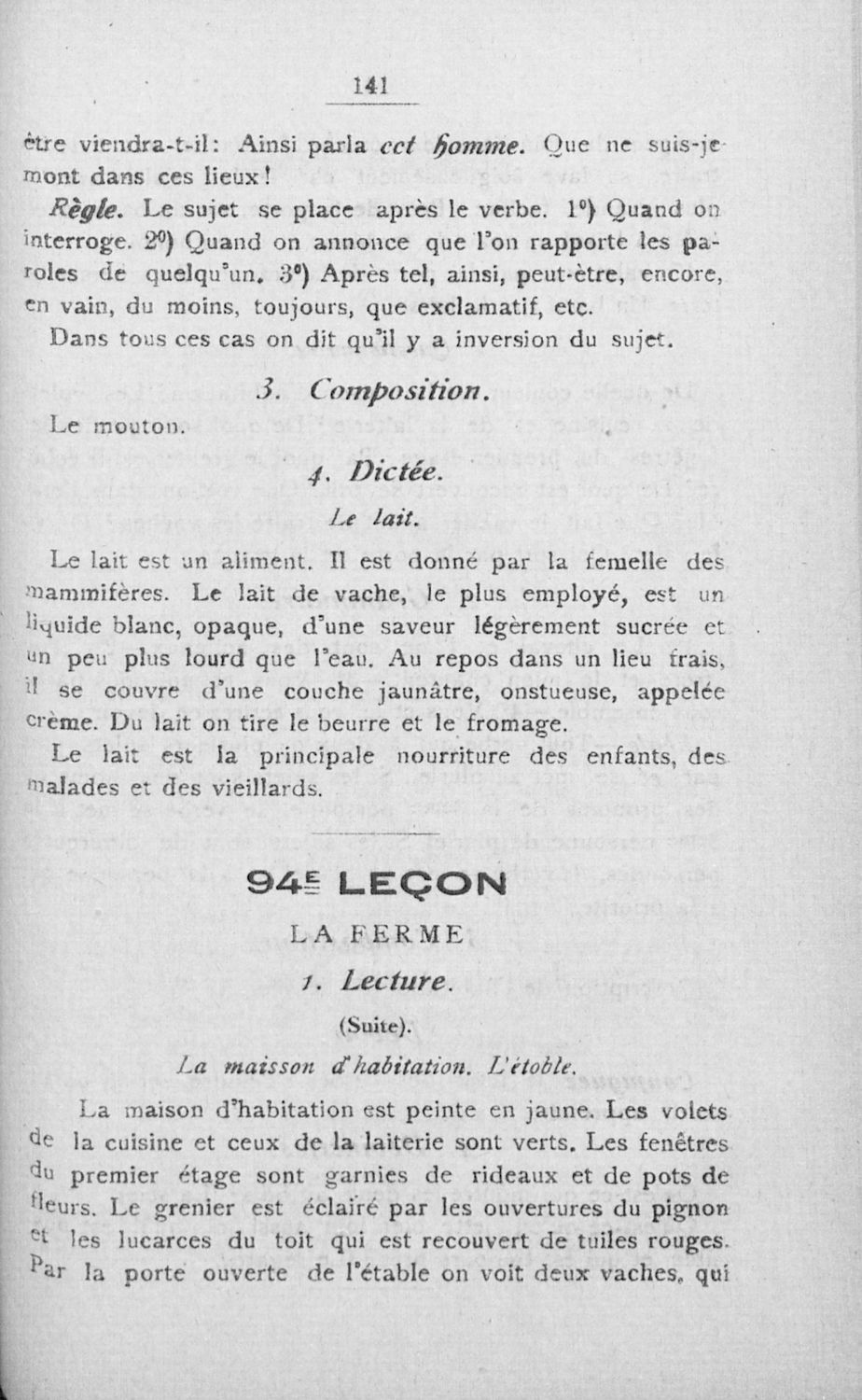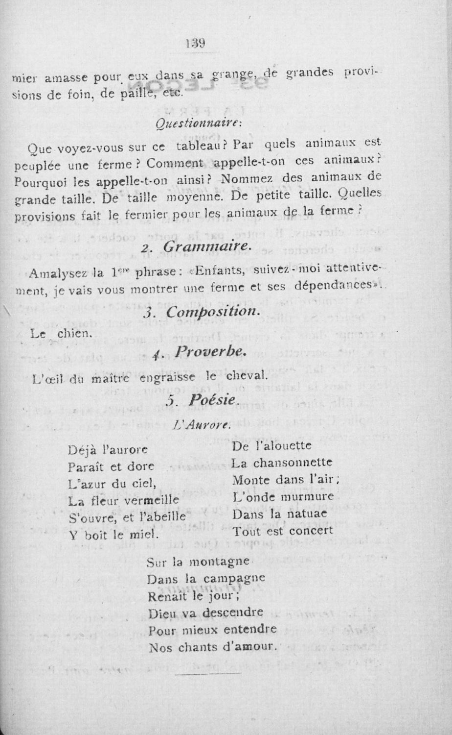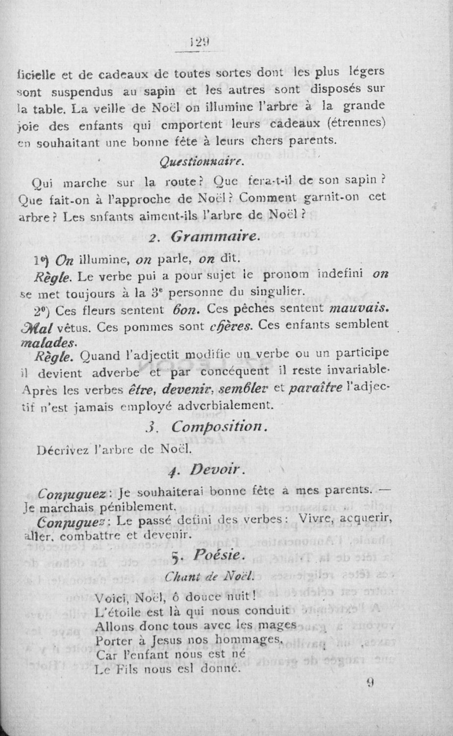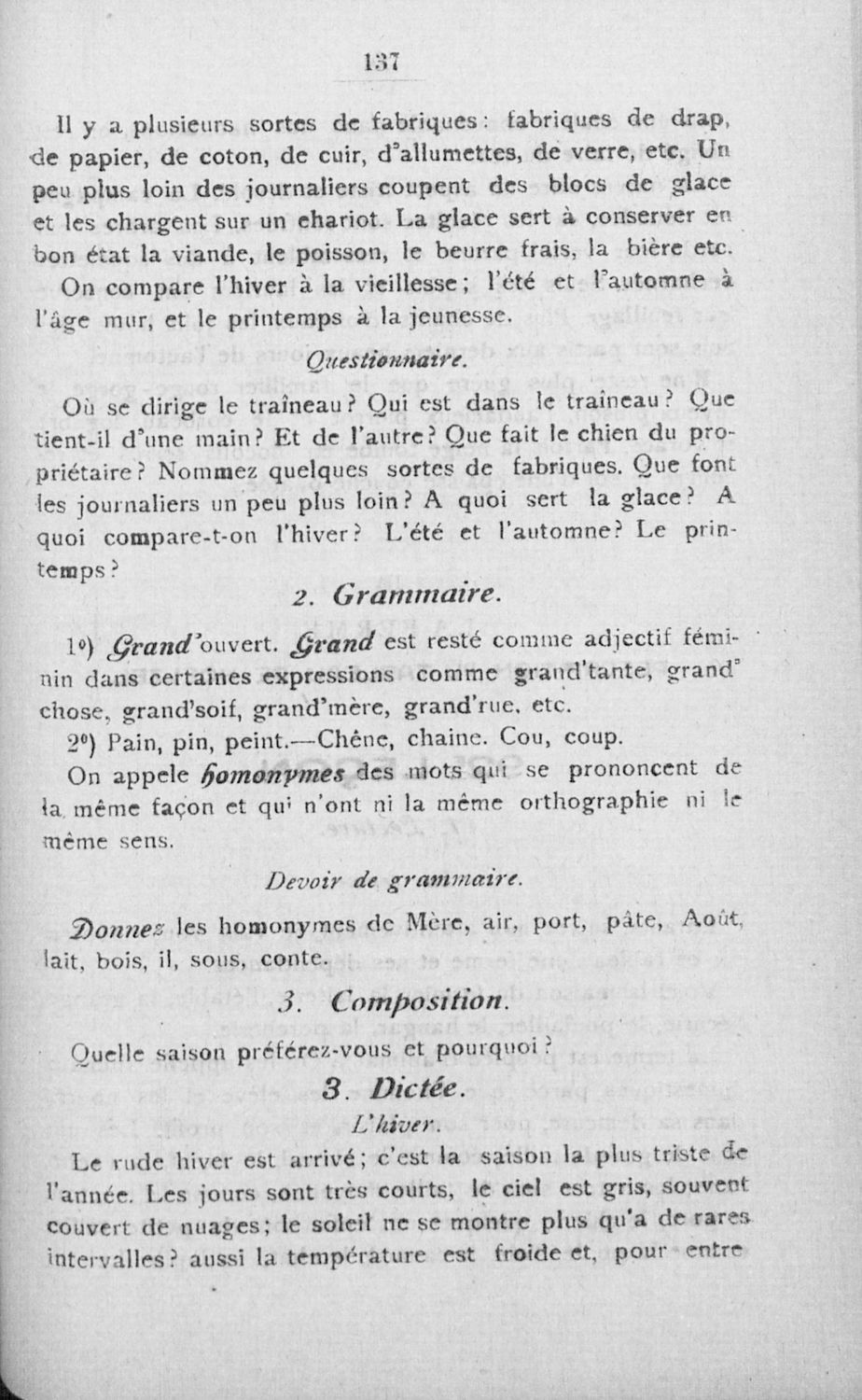 Σχολικό εγχειρίδιο Γαλλικών των Γυμνασίων, Αστικών Σχολείων θηλέων και Διδασκαλείων Δημοτικής Εκπαίδευσης. Κείμενα, ποιήματα, από εποχές και τον κοινωνικό και οικογενειακό βίο, τα οποία συνοδεύονται ασκήσεις γραμματικής συντακτικού.