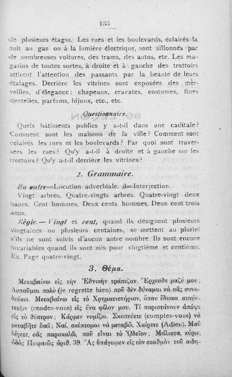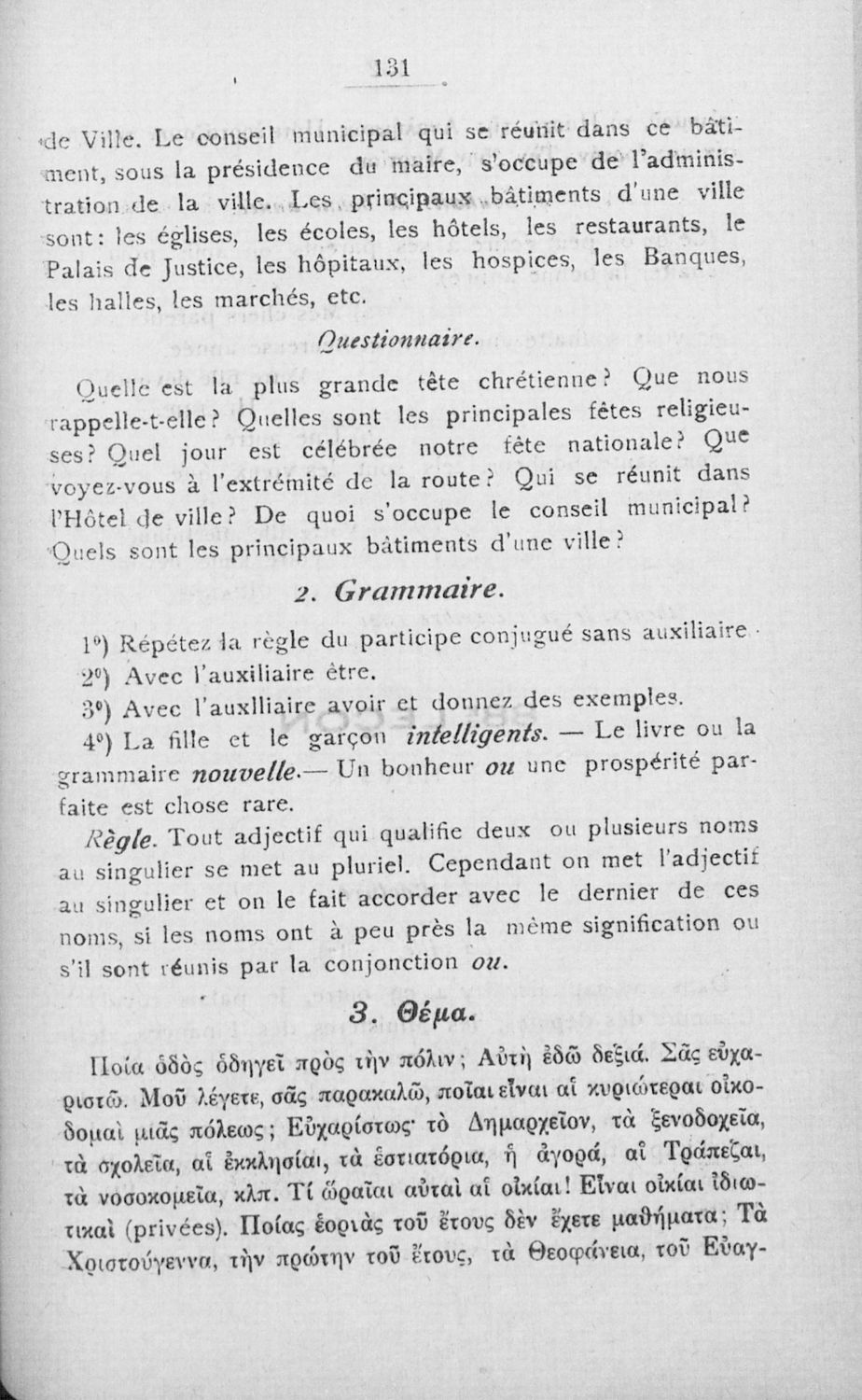 Γραμματική της Γαλλικής γλώσσας για τα Τετρατάξια Γυμνάσια, τη Γ΄ τάξη των Αστικών Σχολείων των Θηλέων και τα Διδασκαλεία της Δημοτικής Εκπαίδευσης που περιλαμβάνει θεωρία, ασκήσεις και λεξιλόγιο.