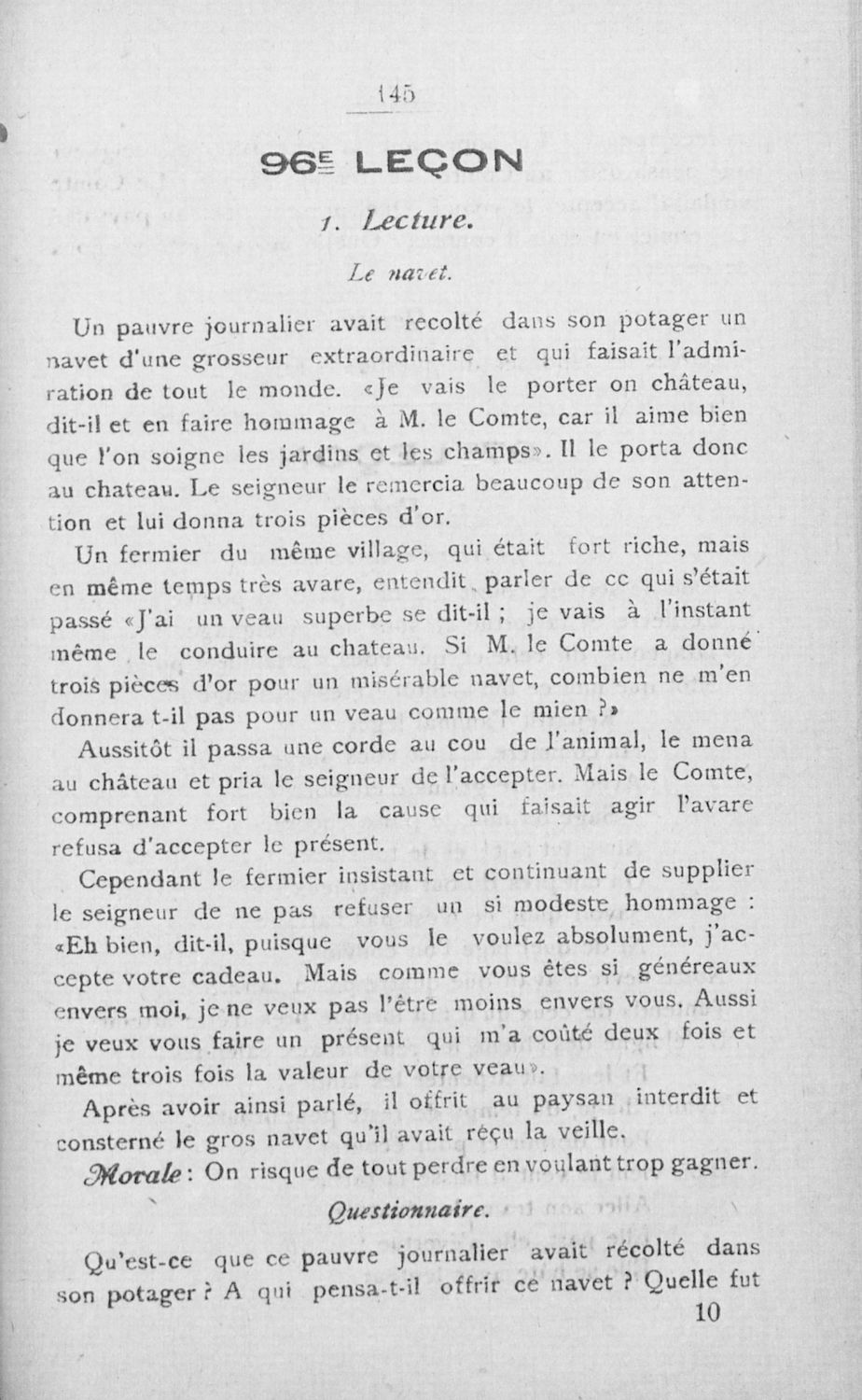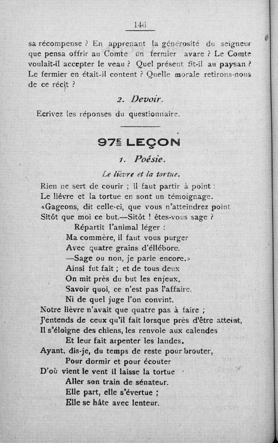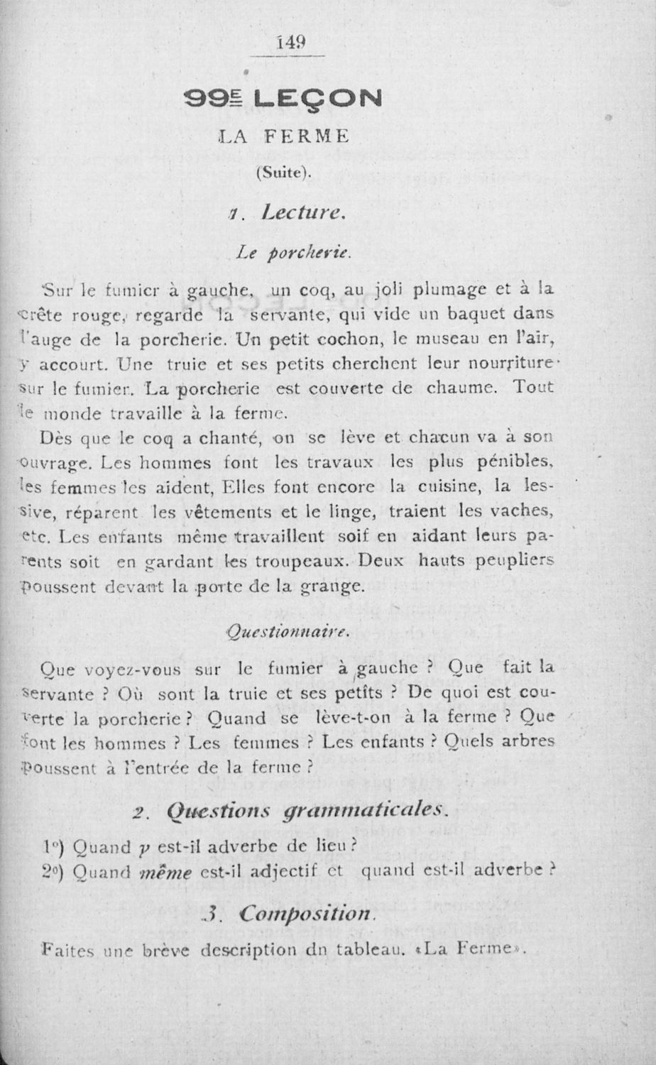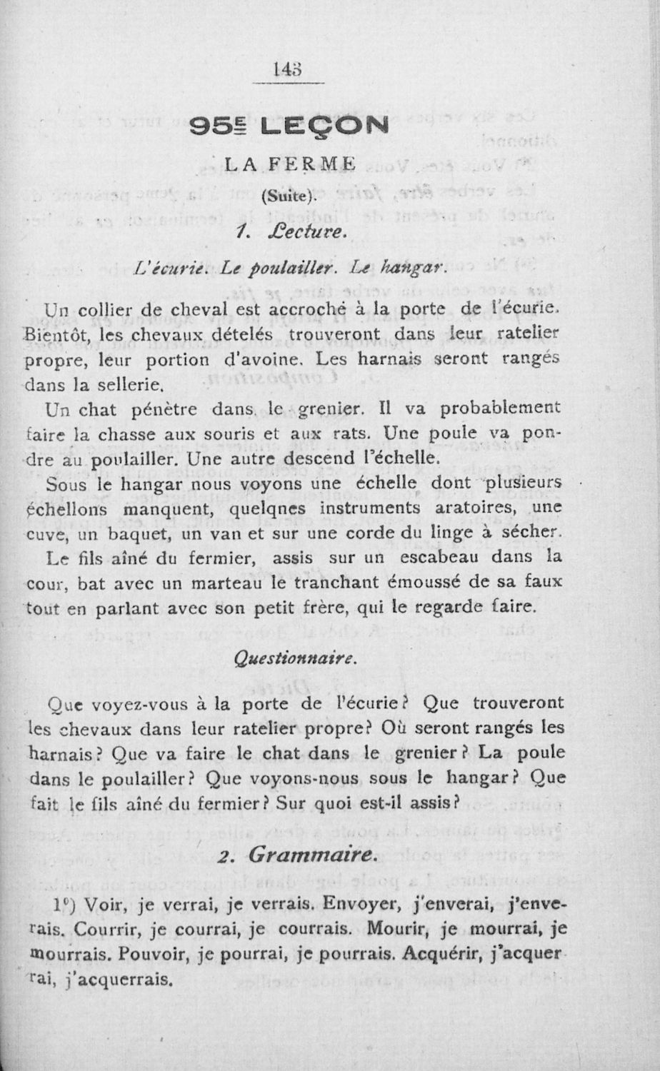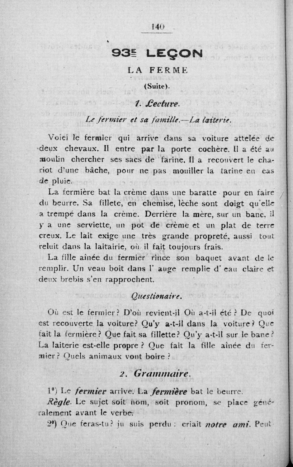 Παρουσίαση περιεχομένου: Σχολικό εγχειρίδιο Γαλλικών των Γυμνασίων, Αστικών Σχολείων θηλέων και Διδασκαλείων Δημοτικής Εκπαίδευσης. Κείμενα, ποιήματα, από εποχές και τον κοινωνικό και οικογενειακό βίο, τα οποία συνοδεύονται ασκήσεις γραμματικής συντακτικού.