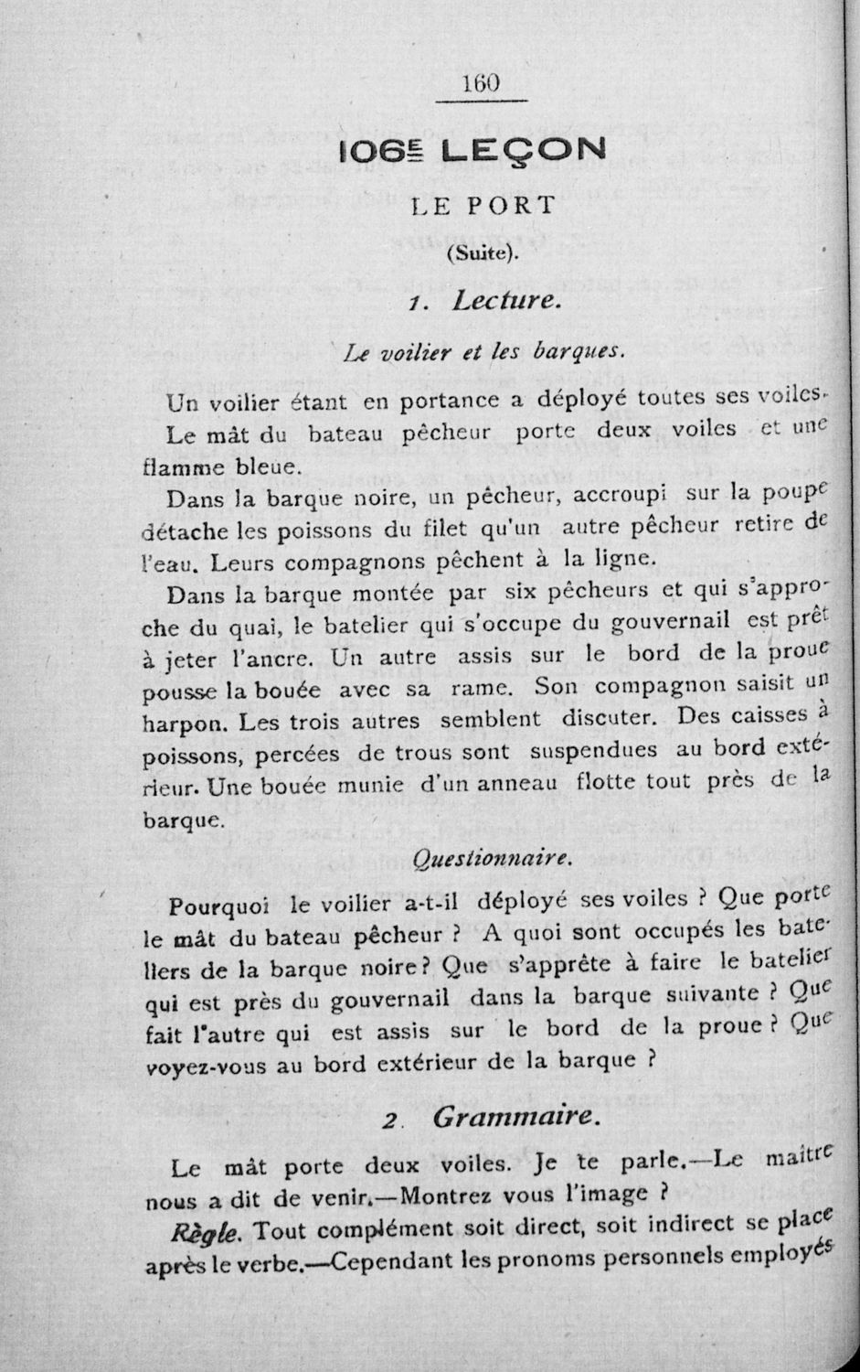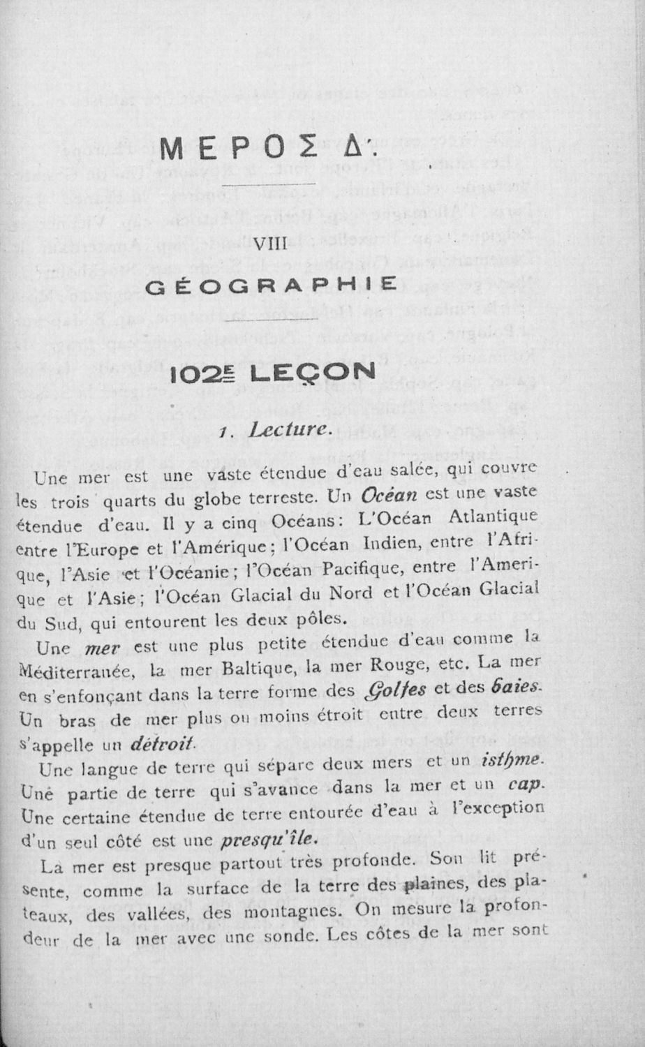 Σχολικό εγχειρίδιο Γαλλικών για τα Γυμνάσια, Αστικά Σχολεία και Διδασκαλεία που περιλαμβάνει τη γραμματική και το συντακτικό της γαλλικής γλώσσας, παραδείγματα και ασκήσεις.