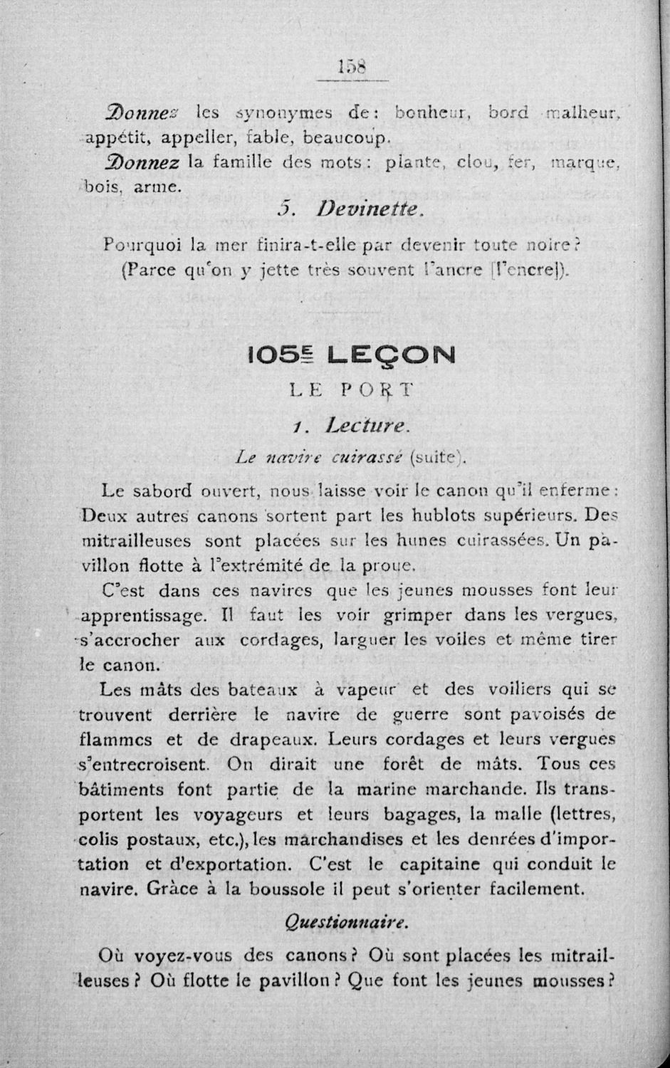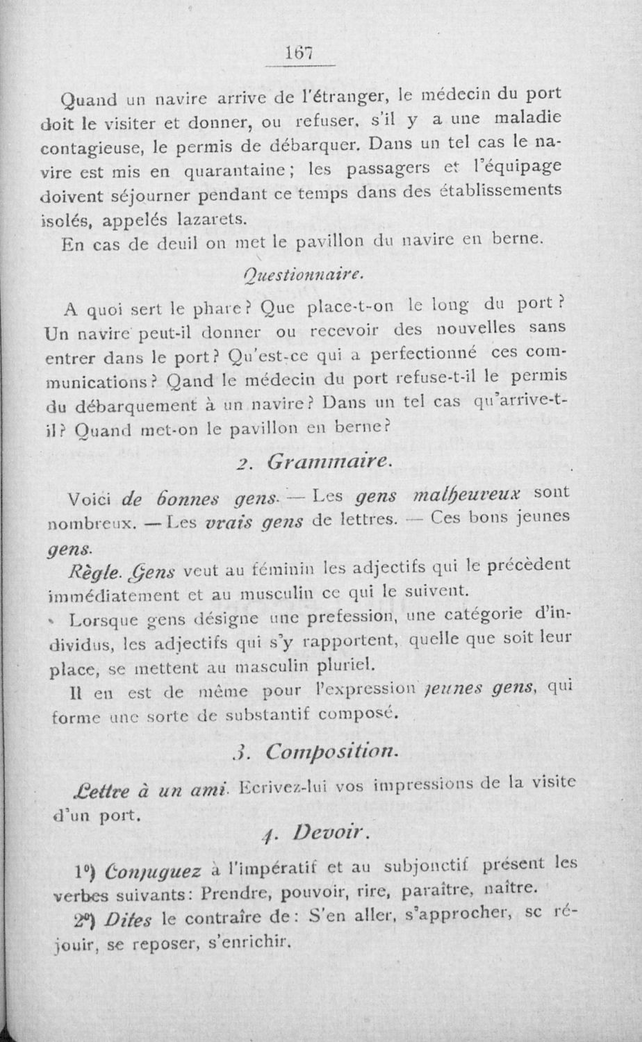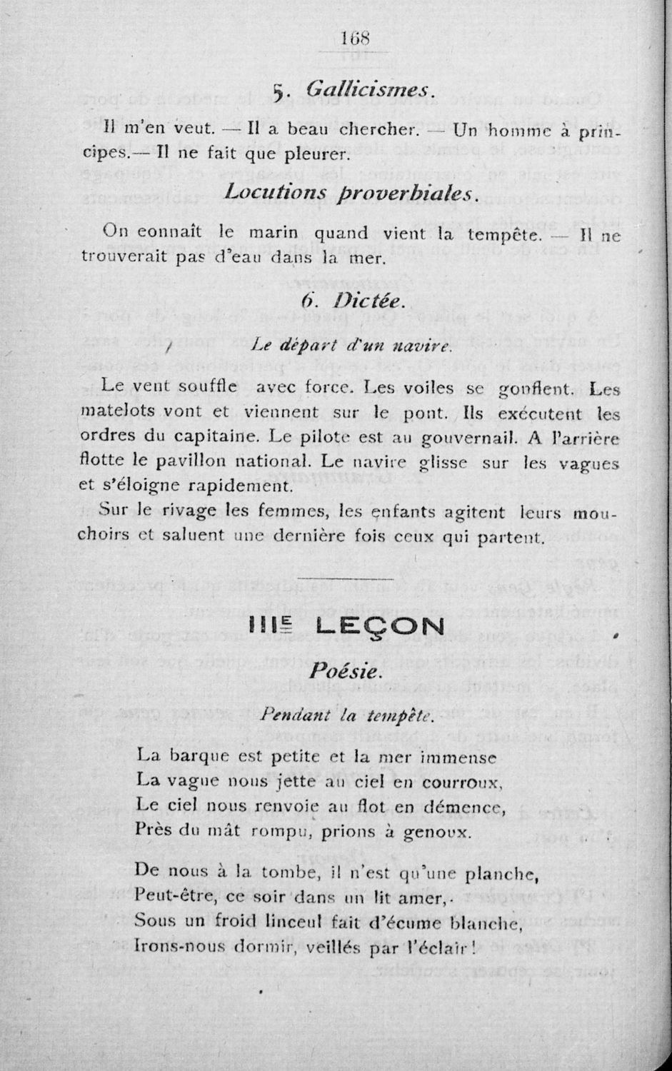 Σχολικό εγχειρίδιο Γαλλικών των Γυμνασίων, Αστικών Σχολείων θηλέων και Διδασκαλείων Δημοτικής Εκπαίδευσης. Κείμενα, ποιήματα, από εποχές και τον κοινωνικό και οικογενειακό βίο, τα οποία συνοδεύονται ασκήσεις γραμματικής συντακτικού.