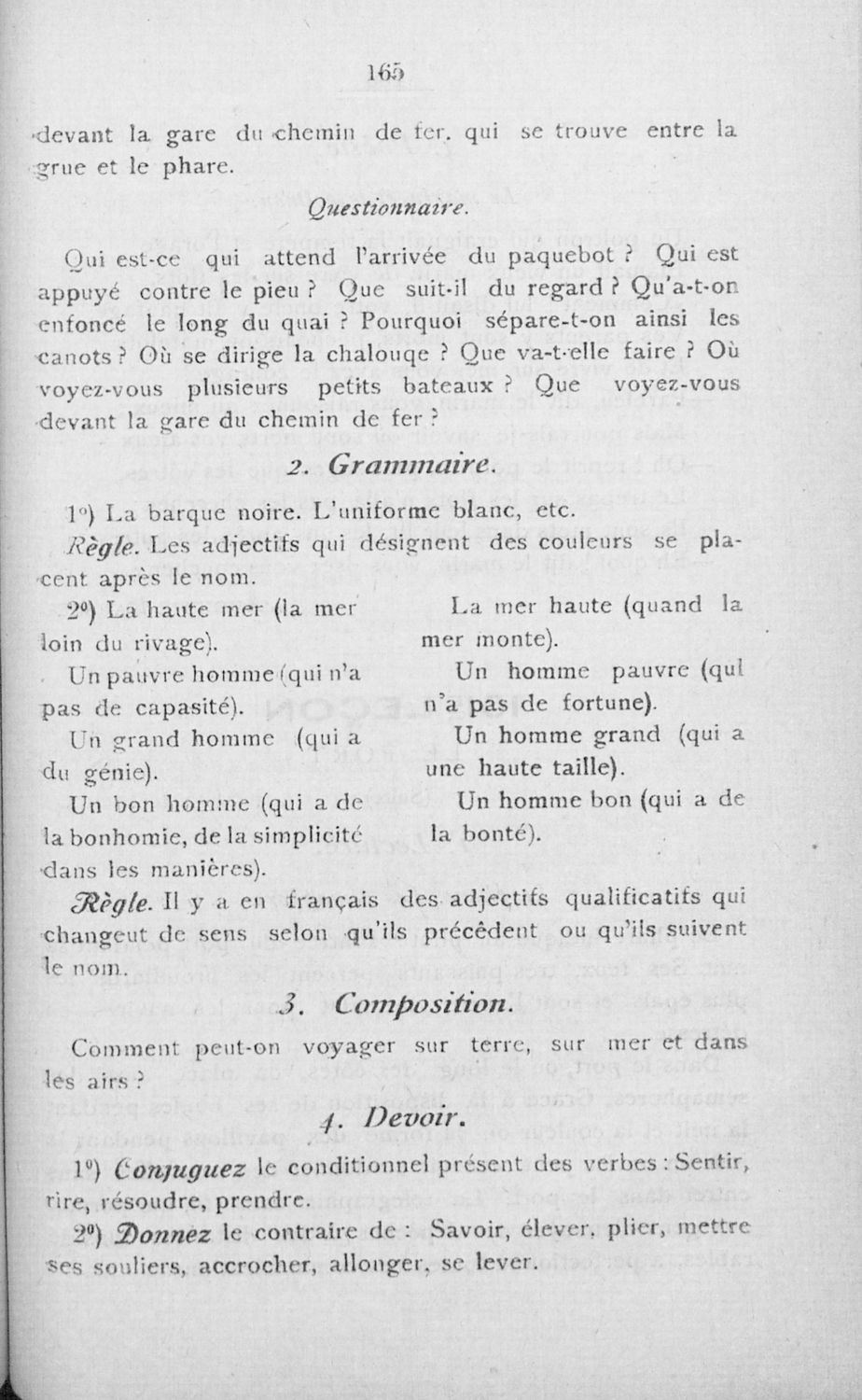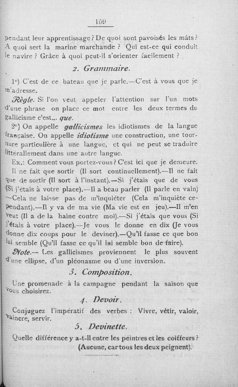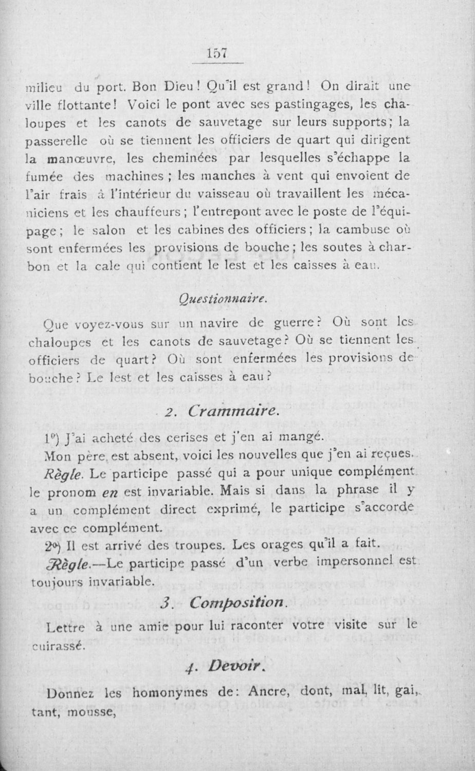 Σχολικό εγχειρίδιο Γαλλικών των Γυμνασίων, Αστικών Σχολείων θηλέων και Διδασκαλείων Δημοτικής Εκπαίδευσης. Κείμενα, ποιήματα, από εποχές και τον κοινωνικό και οικογενειακό βίο, τα οποία συνοδεύονται ασκήσεις γραμματικής συντακτικού.
