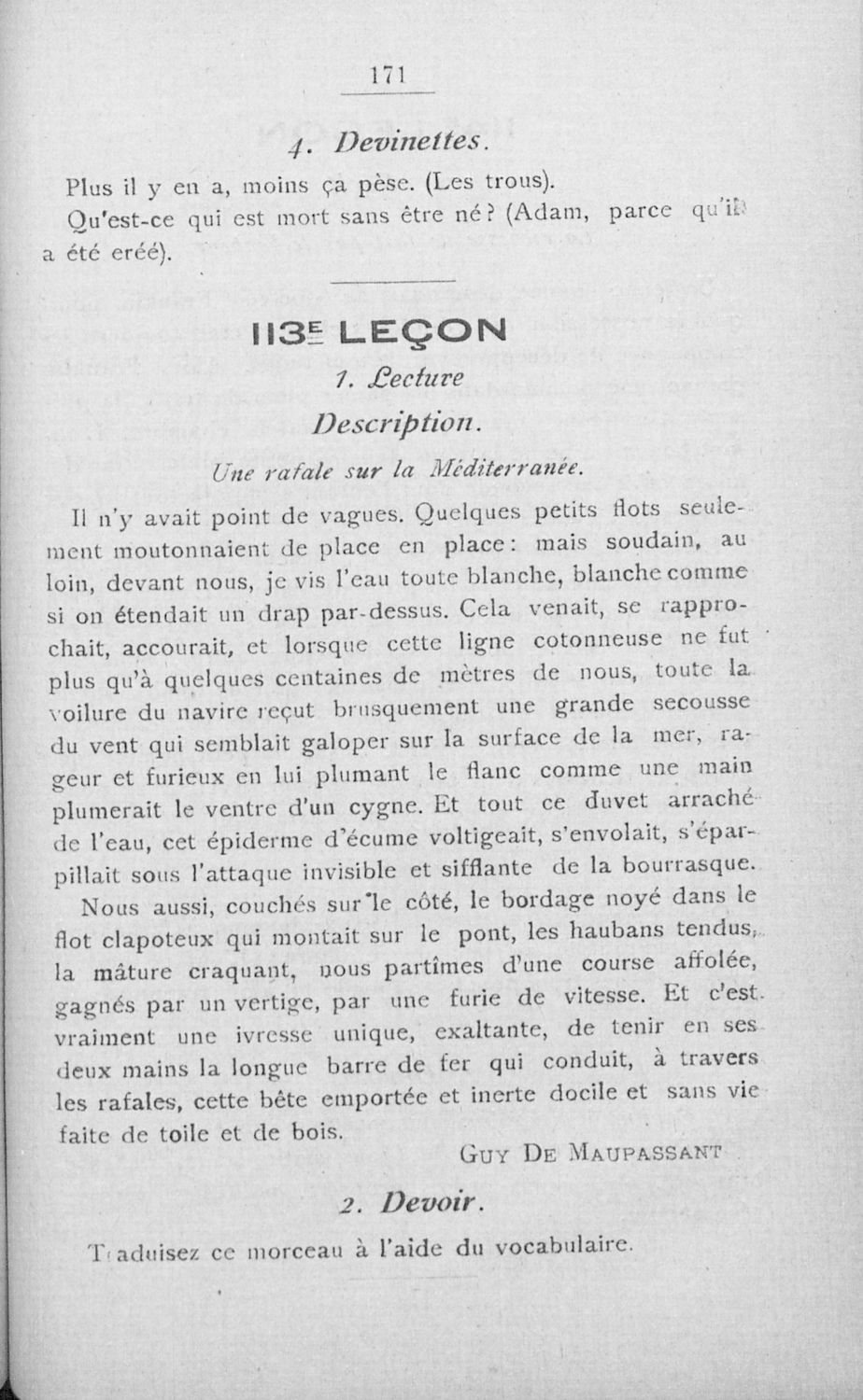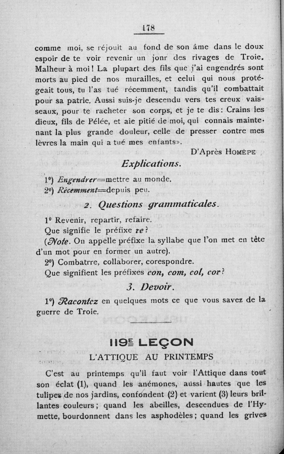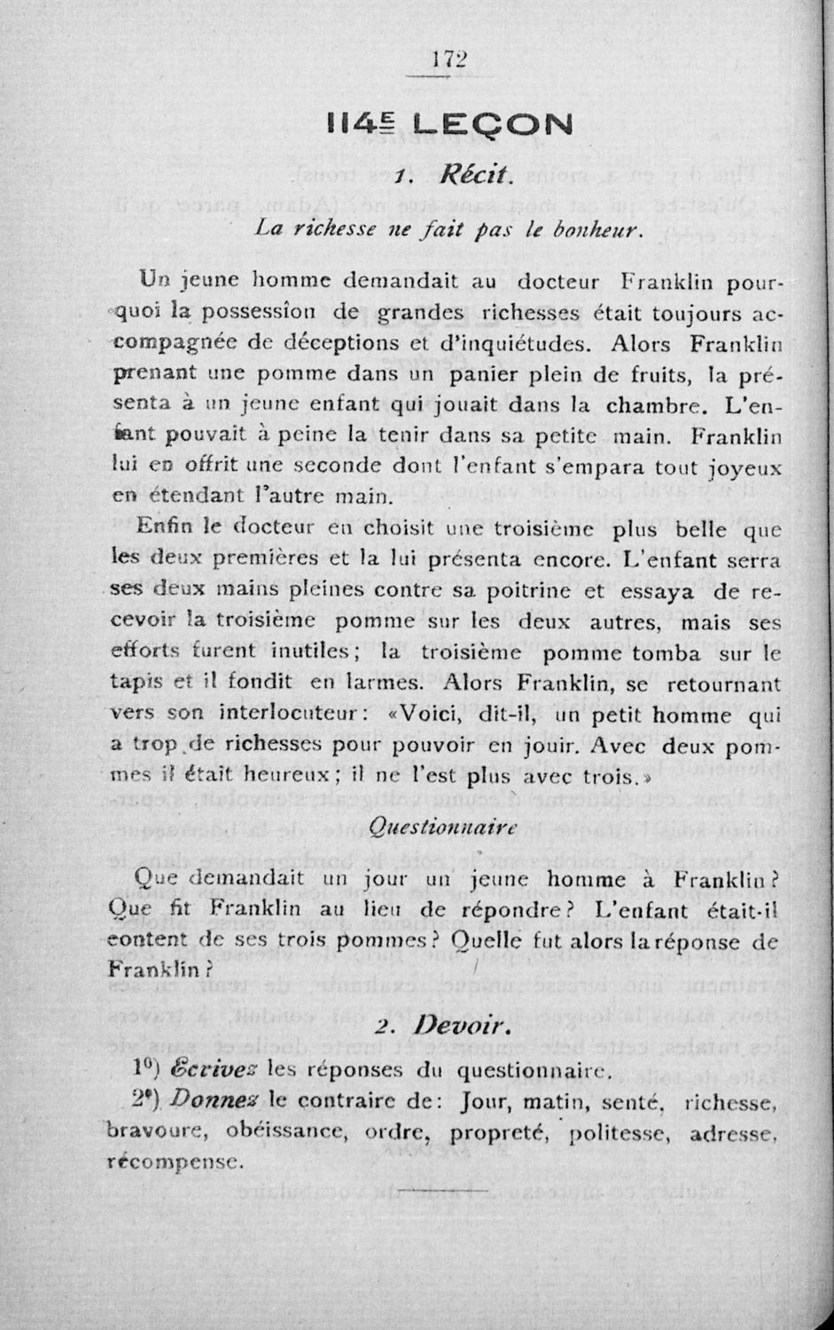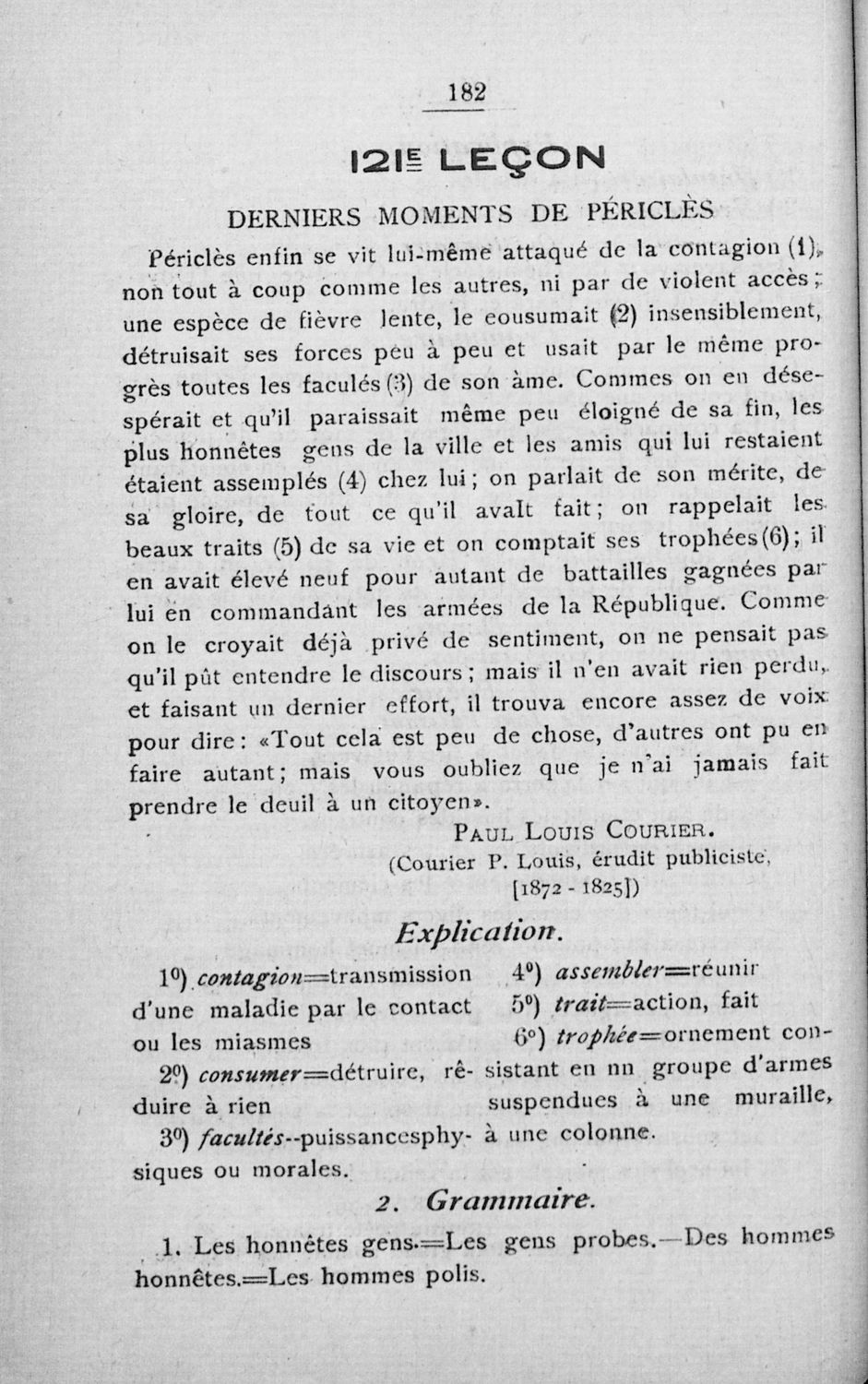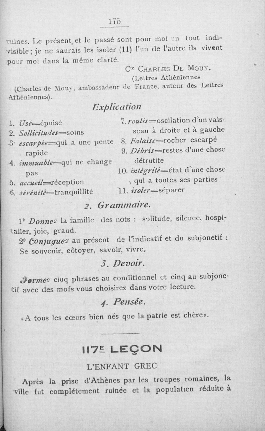 Σχολικό εγχειρίδιο Γαλλικών των Γυμνασίων, Αστικών Σχολείων θηλέων και Διδασκαλείων Δημοτικής Εκπαίδευσης. Κείμενα, ποιήματα, από εποχές και τον κοινωνικό και οικογενειακό βίο, τα οποία συνοδεύονται ασκήσεις γραμματικής συντακτικού.