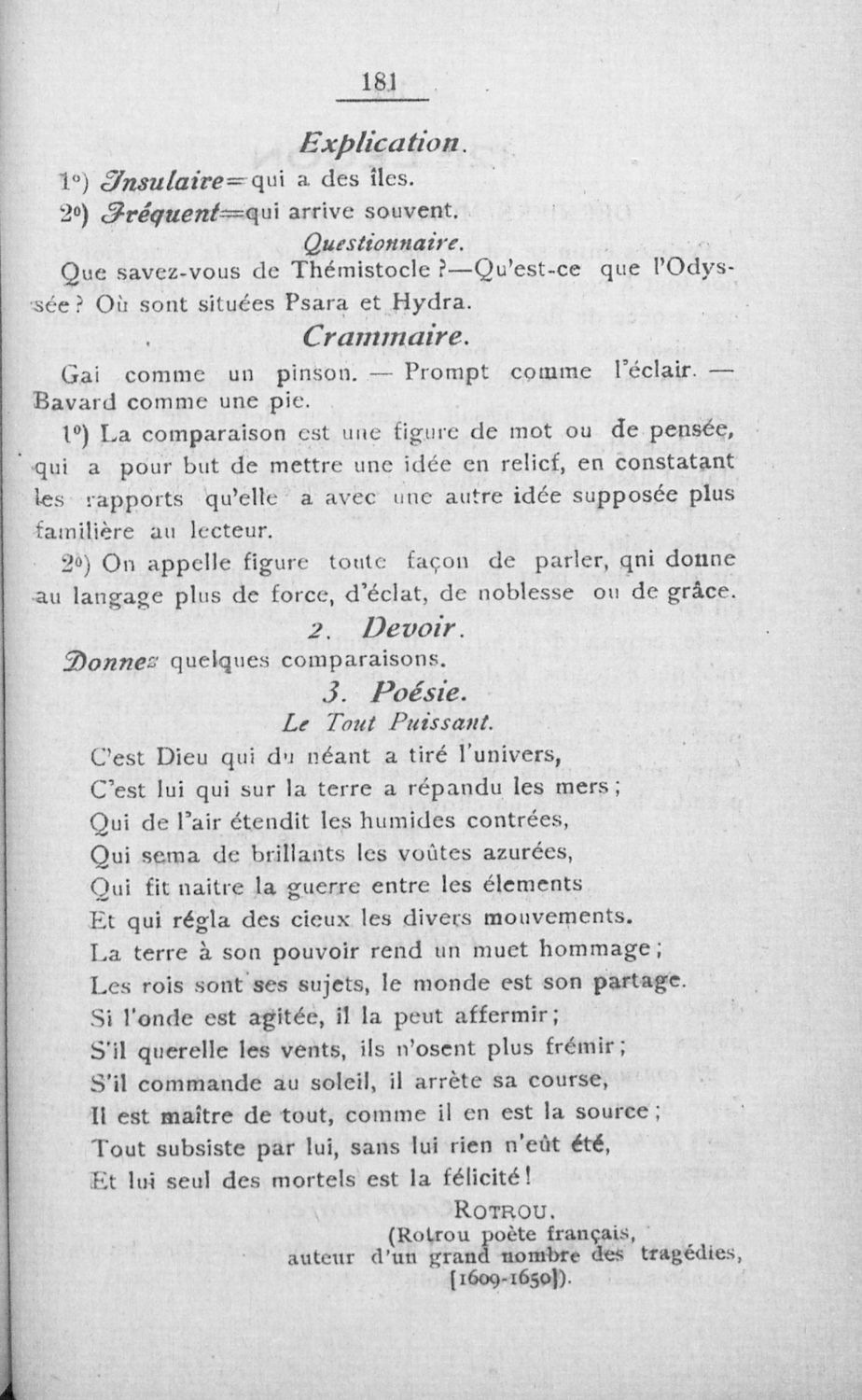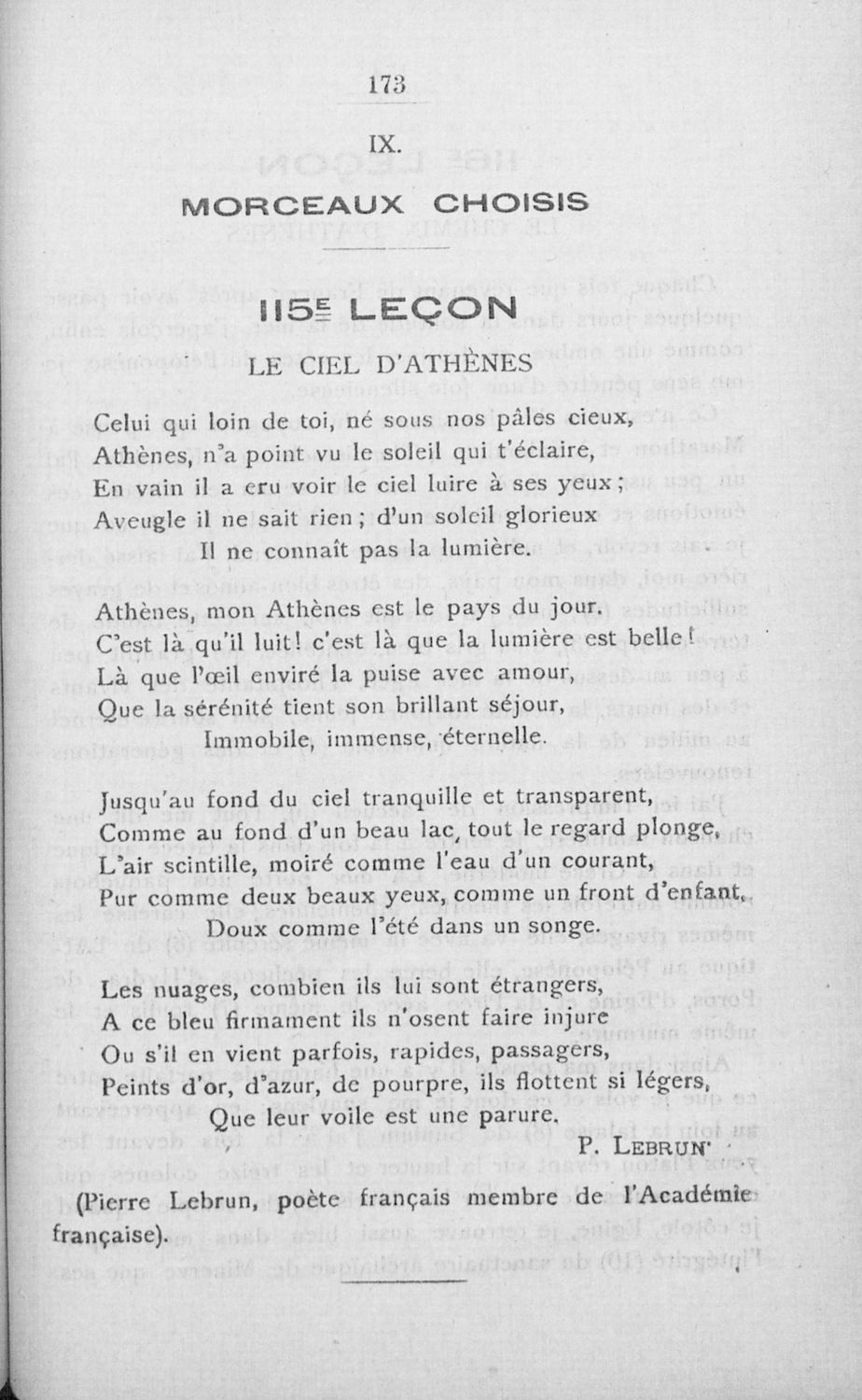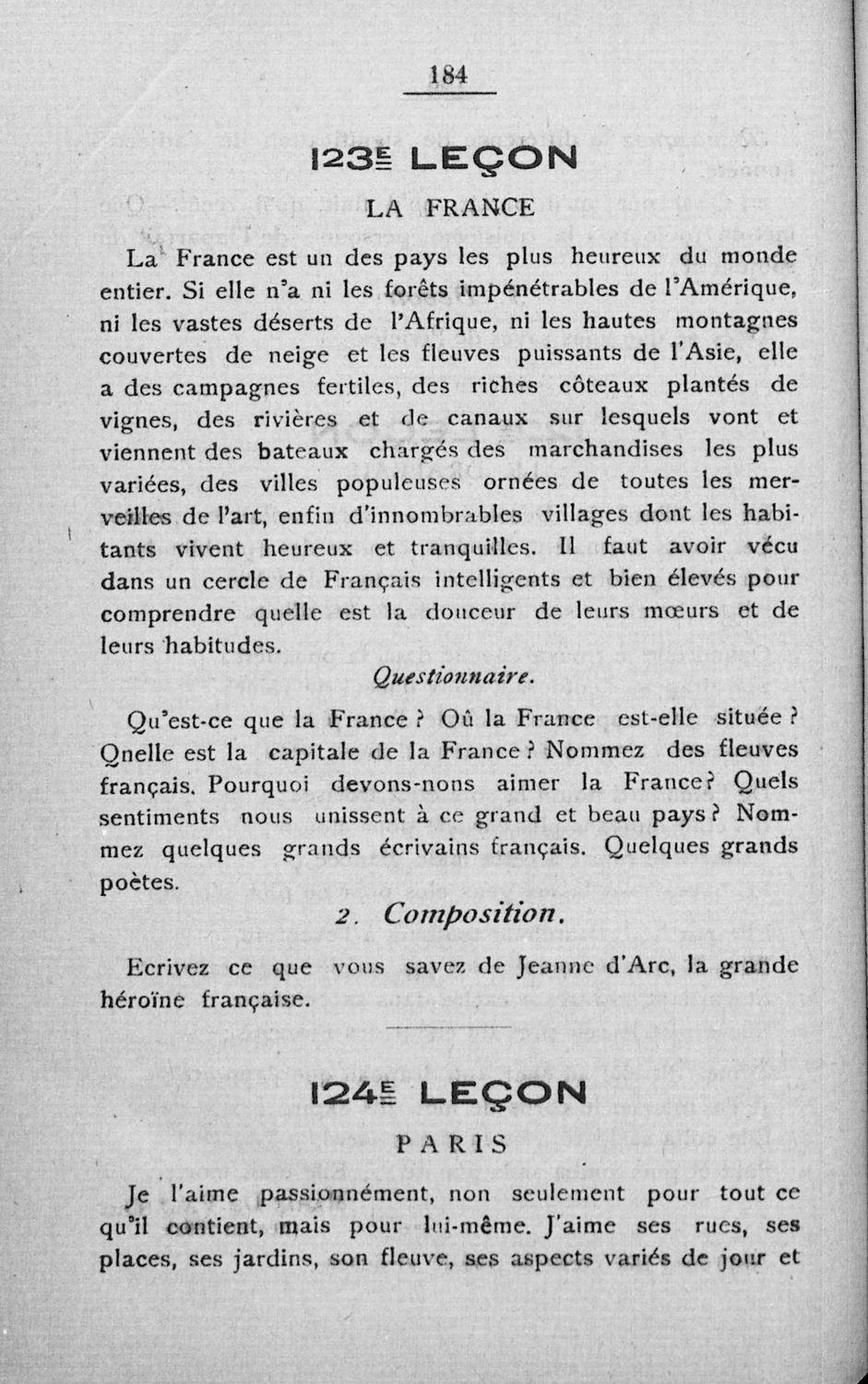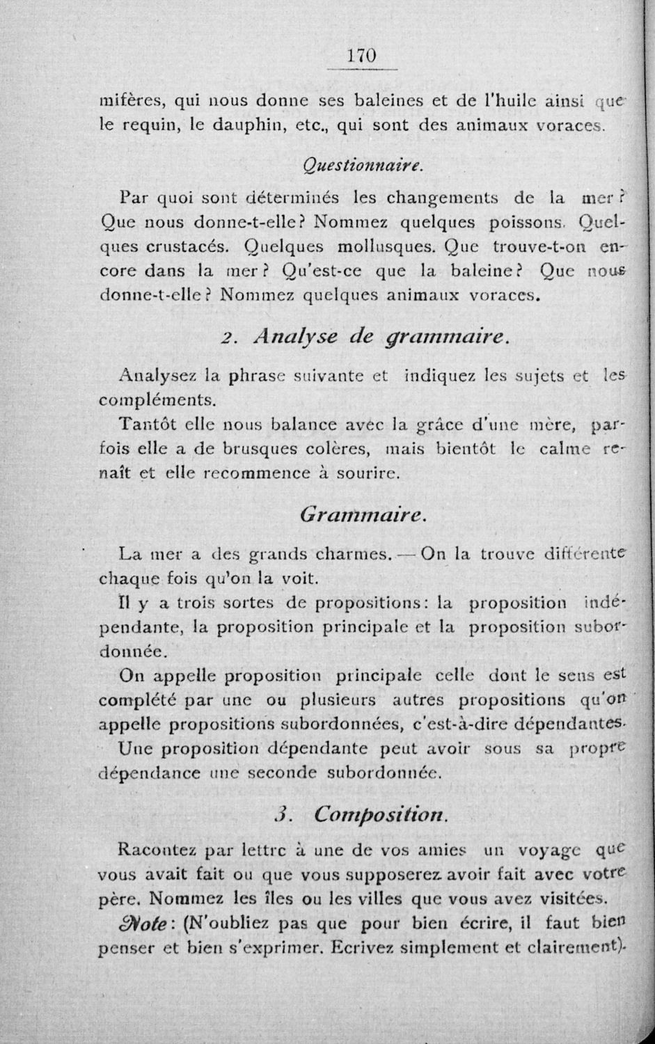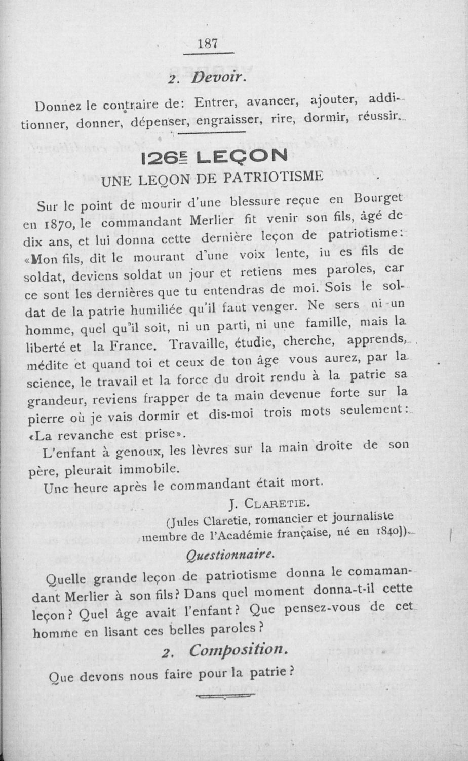 Σχολικό εγχειρίδιο Γαλλικών των Γυμνασίων, Αστικών Σχολείων θηλέων και Διδασκαλείων Δημοτικής Εκπαίδευσης. Κείμενα, ποιήματα, από εποχές και τον κοινωνικό και οικογενειακό βίο, τα οποία συνοδεύονται ασκήσεις γραμματικής συντακτικού.