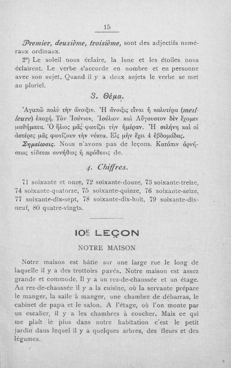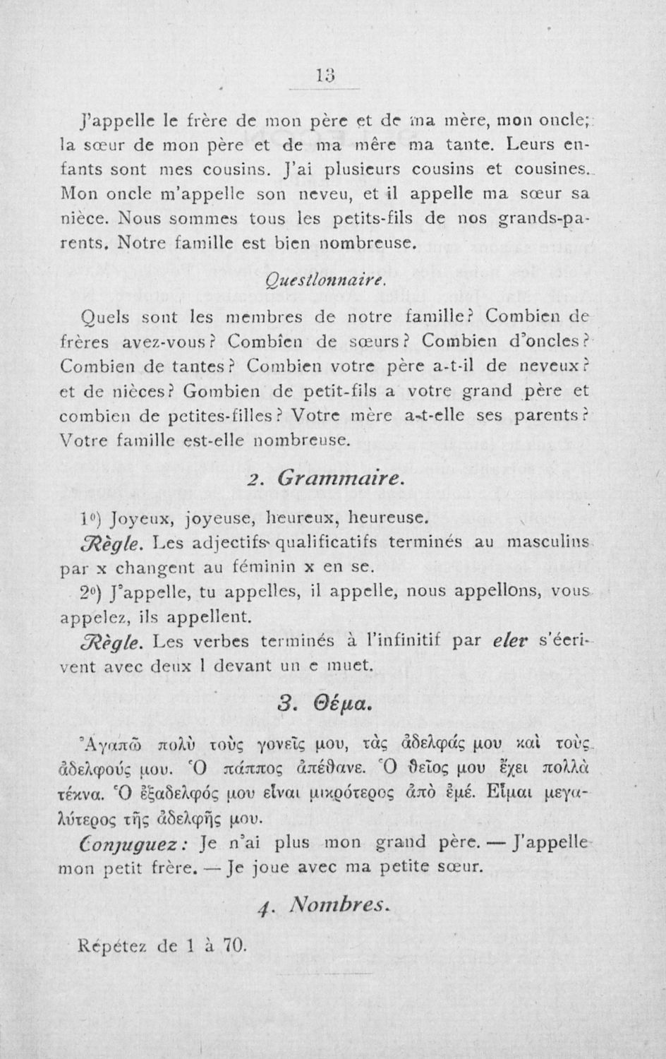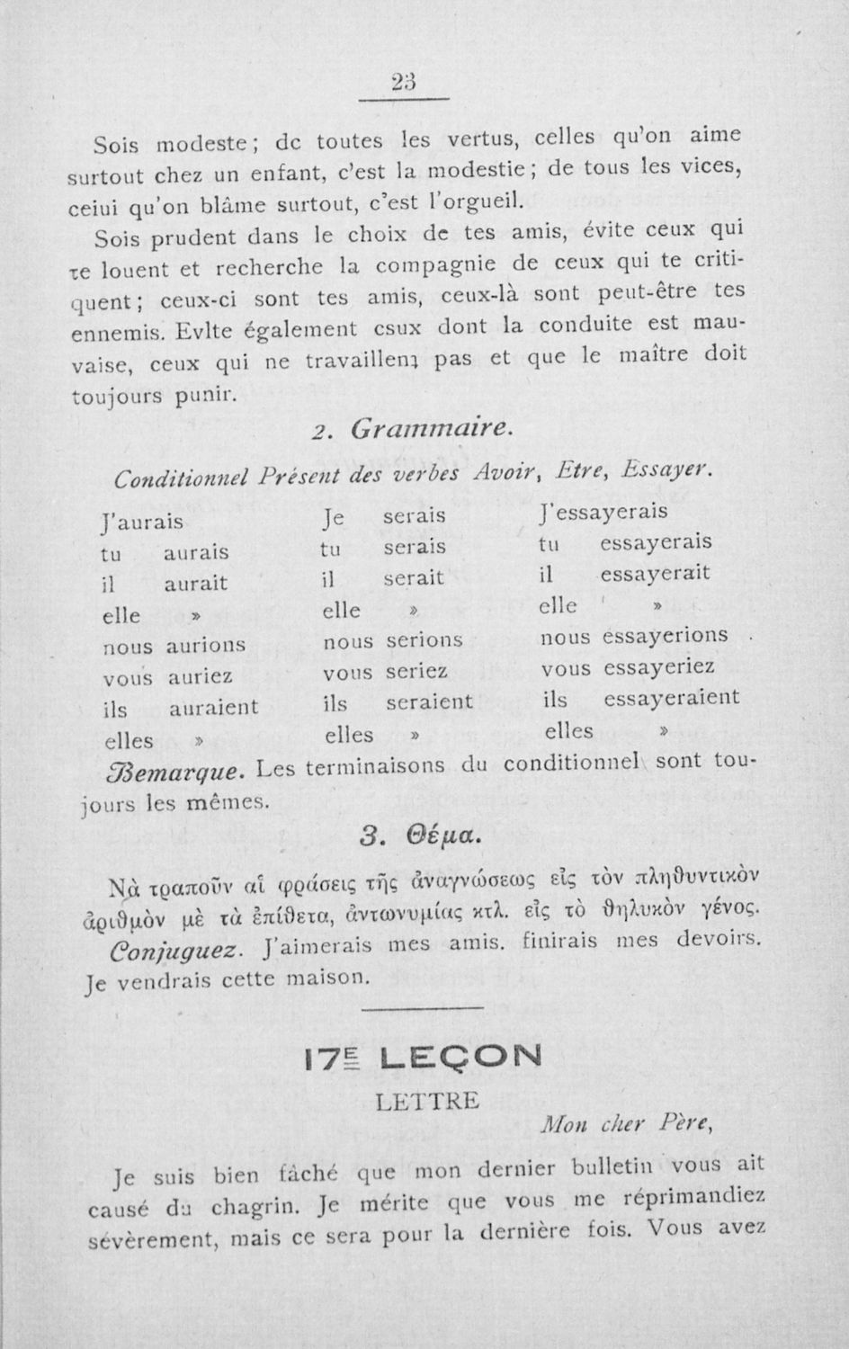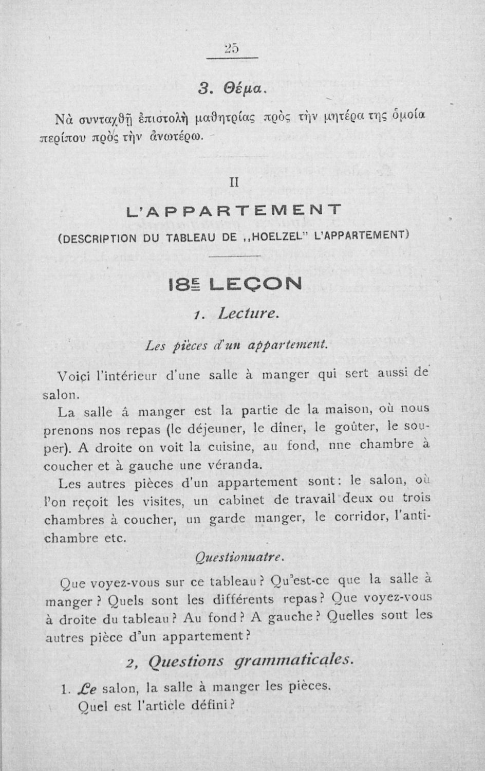 Γραμματική της Γαλλικής γλώσσας για τα Τετρατάξια Γυμνάσια, τη Γ΄ τάξη των Αστικών Σχολείων των Θηλέων και τα Διδασκαλεία της Δημοτικής Εκπαίδευσης που περιλαμβάνει θεωρία, ασκήσεις και λεξιλόγιο.
