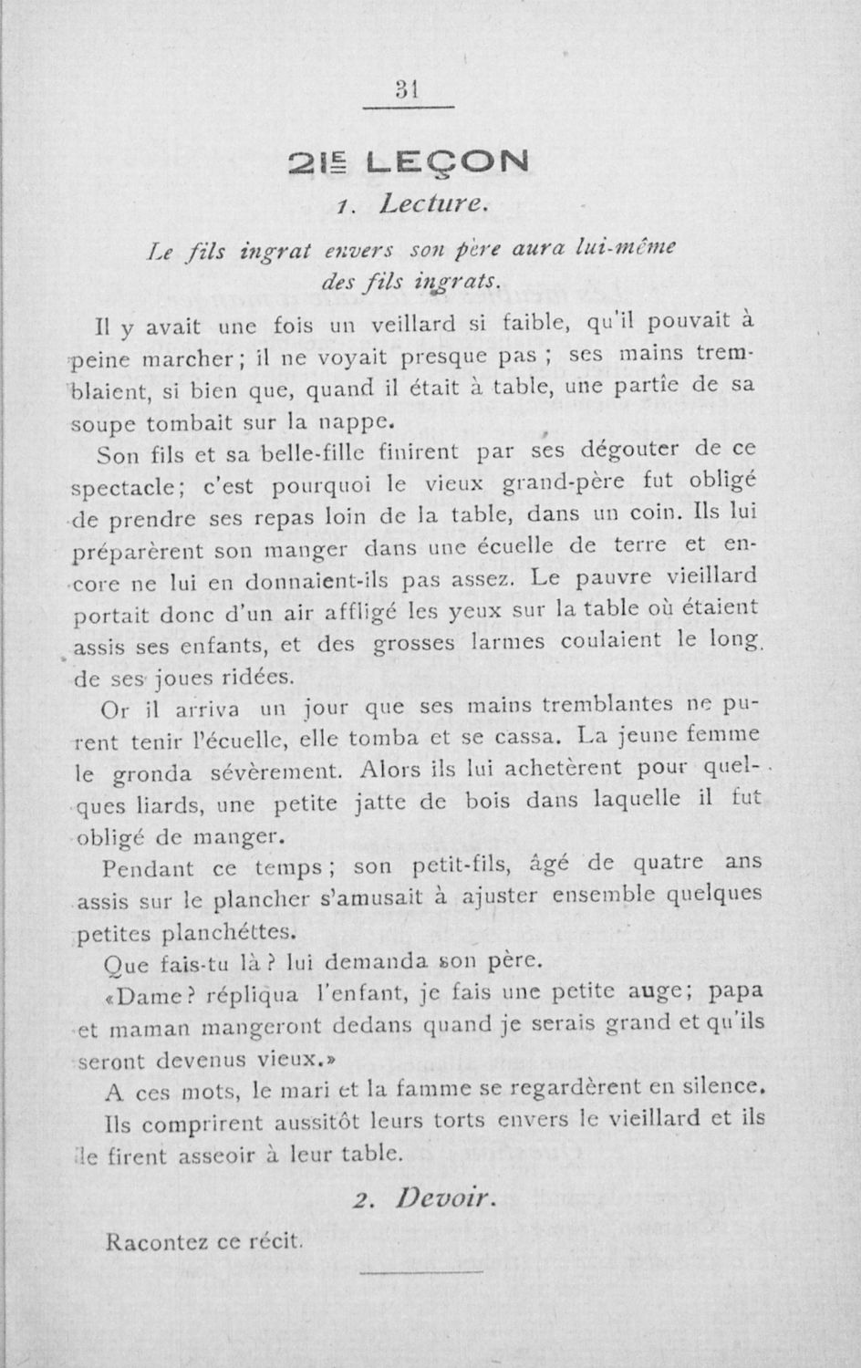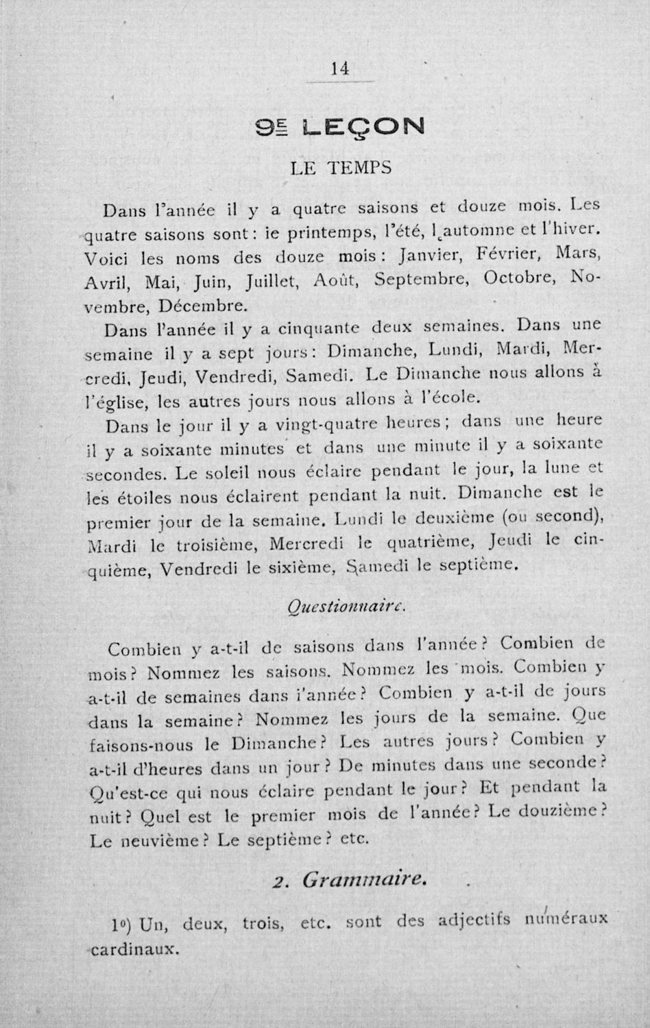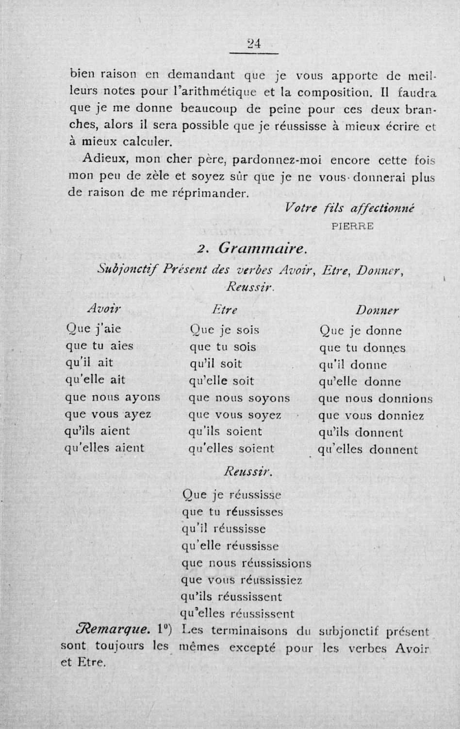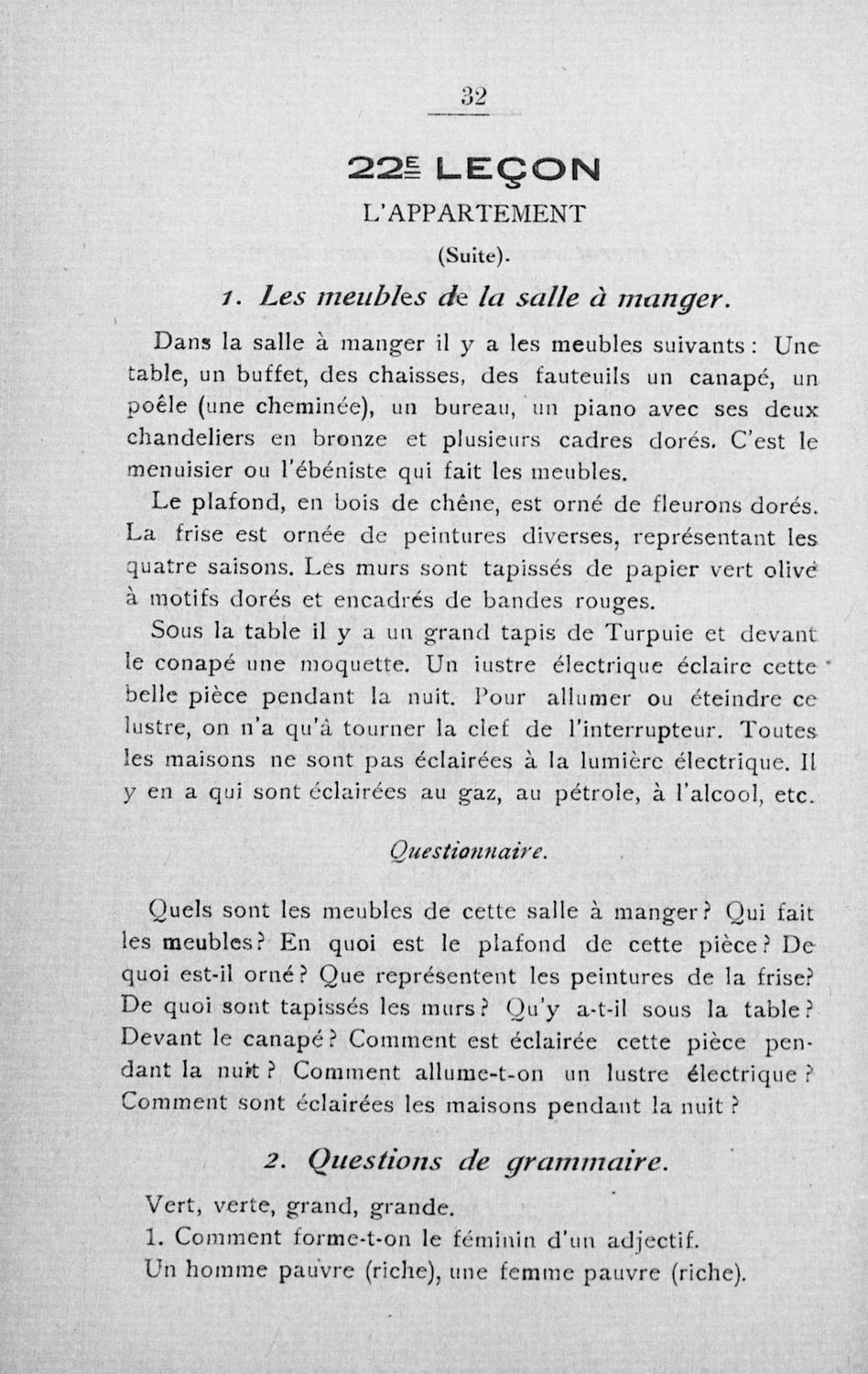 Σχολικό εγχειρίδιο Γαλλικών των Γυμνασίων, Αστικών Σχολείων θηλέων και Διδασκαλείων Δημοτικής Εκπαίδευσης. Κείμενα, ποιήματα, από εποχές και τον κοινωνικό και οικογενειακό βίο, τα οποία συνοδεύονται ασκήσεις γραμματικής συντακτικού.