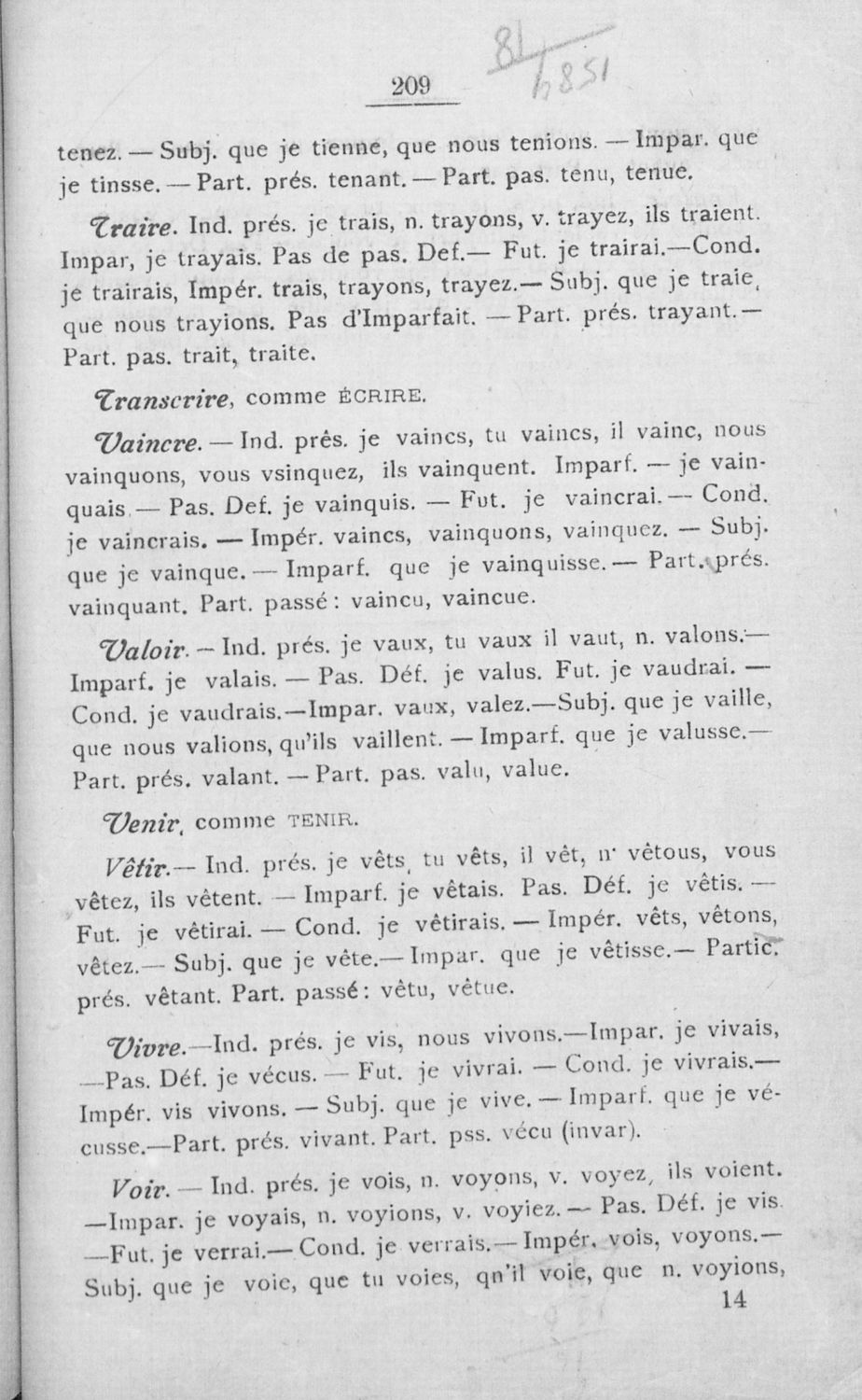 Σχολικό εγχειρίδιο Γαλλικών για τα Γυμνάσια, Αστικά Σχολεία και Διδασκαλεία που περιλαμβάνει τη γραμματική και το συντακτικό της γαλλικής γλώσσας, παραδείγματα και ασκήσεις.