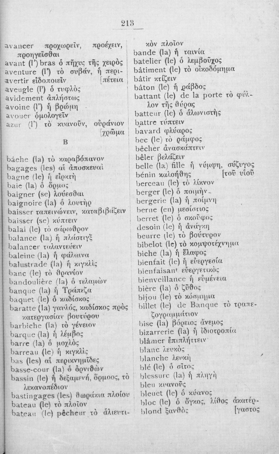 Σχολικό εγχειρίδιο Γαλλικών για τις Β’ και Γ’ Ελληνικού και Αστικού Σχολείου και Παρθεναγωγείου που περιλαμβάνει ασκήσεις προφοράς, συνομιλίας και γραμματικής, και λεξιλόγιο.