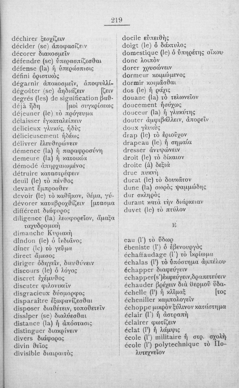 Σχολικό εγχειρίδιο Γαλλικών των Γυμνασίων, Αστικών Σχολείων θηλέων και Διδασκαλείων Δημοτικής Εκπαίδευσης. Κείμενα, ποιήματα, από εποχές και τον κοινωνικό και οικογενειακό βίο, τα οποία συνοδεύονται ασκήσεις γραμματικής συντακτικού.