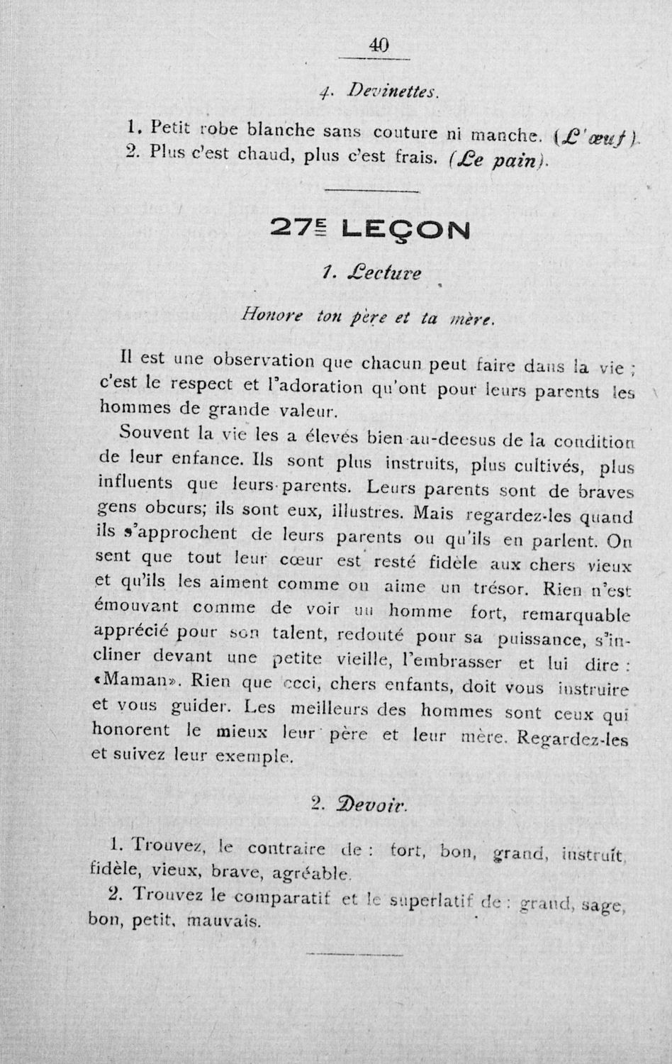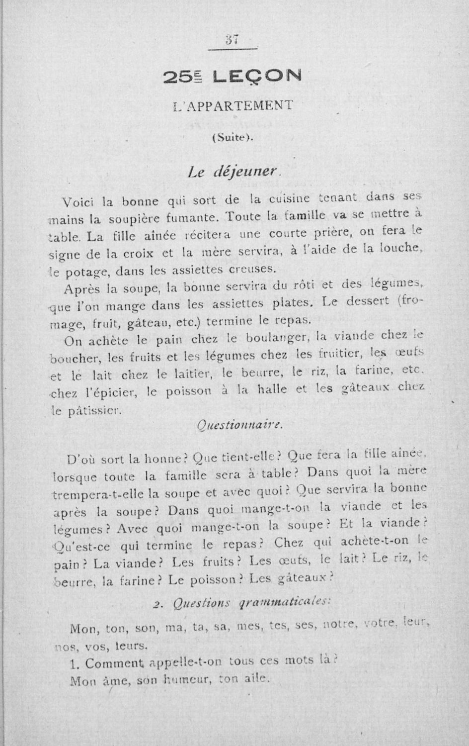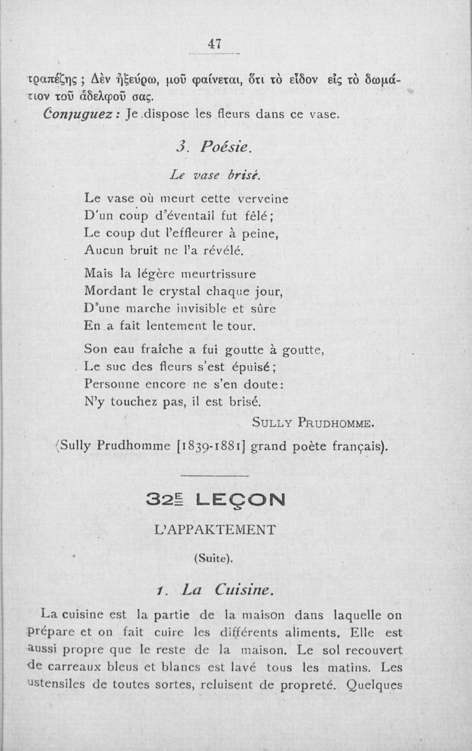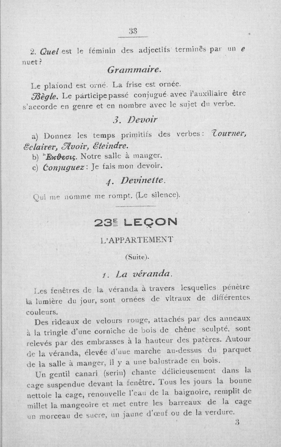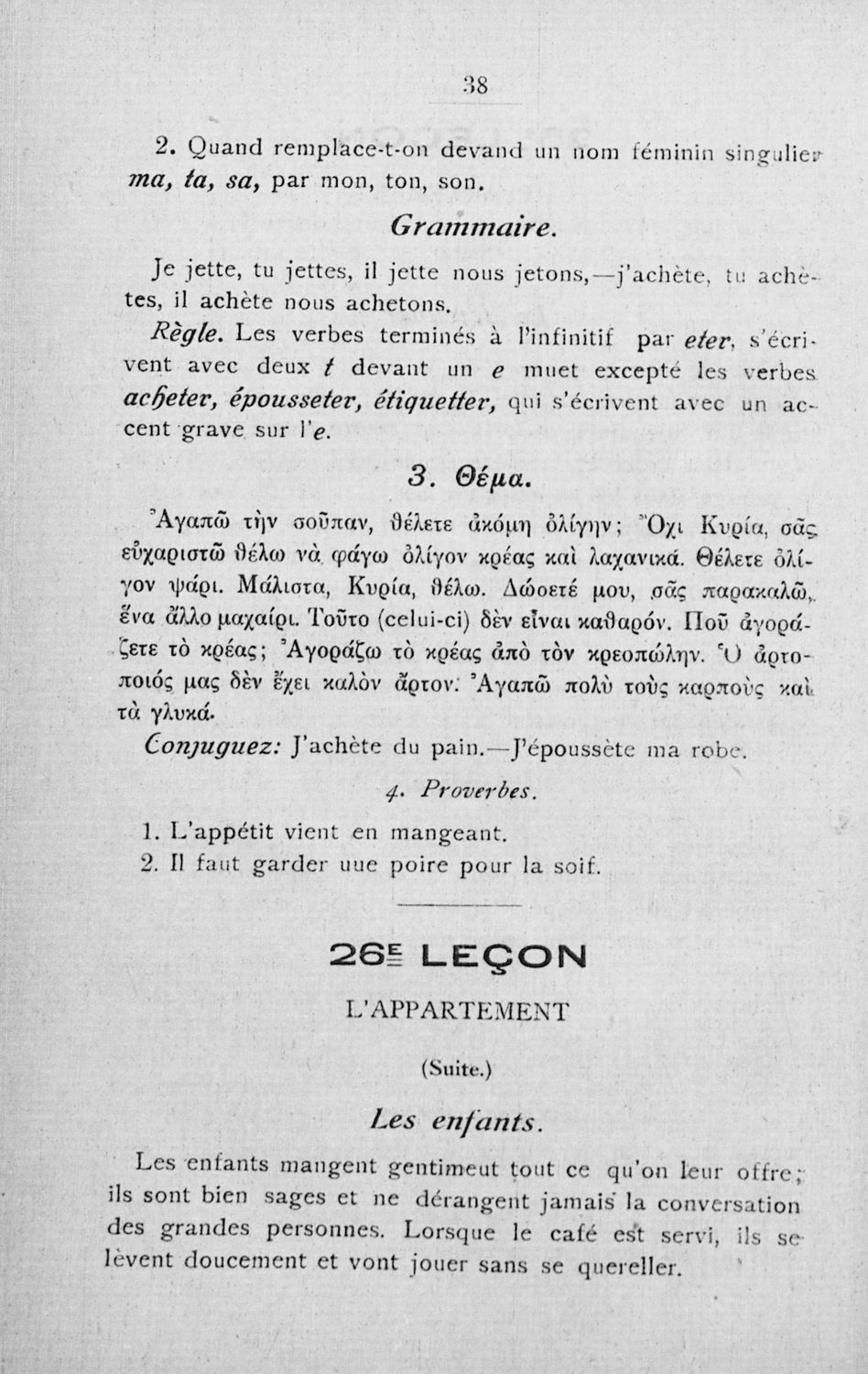 Σχολικό εγχειρίδιο Γαλλικών των Γυμνασίων, Αστικών Σχολείων θηλέων και Διδασκαλείων Δημοτικής Εκπαίδευσης. Κείμενα, ποιήματα, από εποχές και τον κοινωνικό και οικογενειακό βίο, τα οποία συνοδεύονται ασκήσεις γραμματικής συντακτικού.