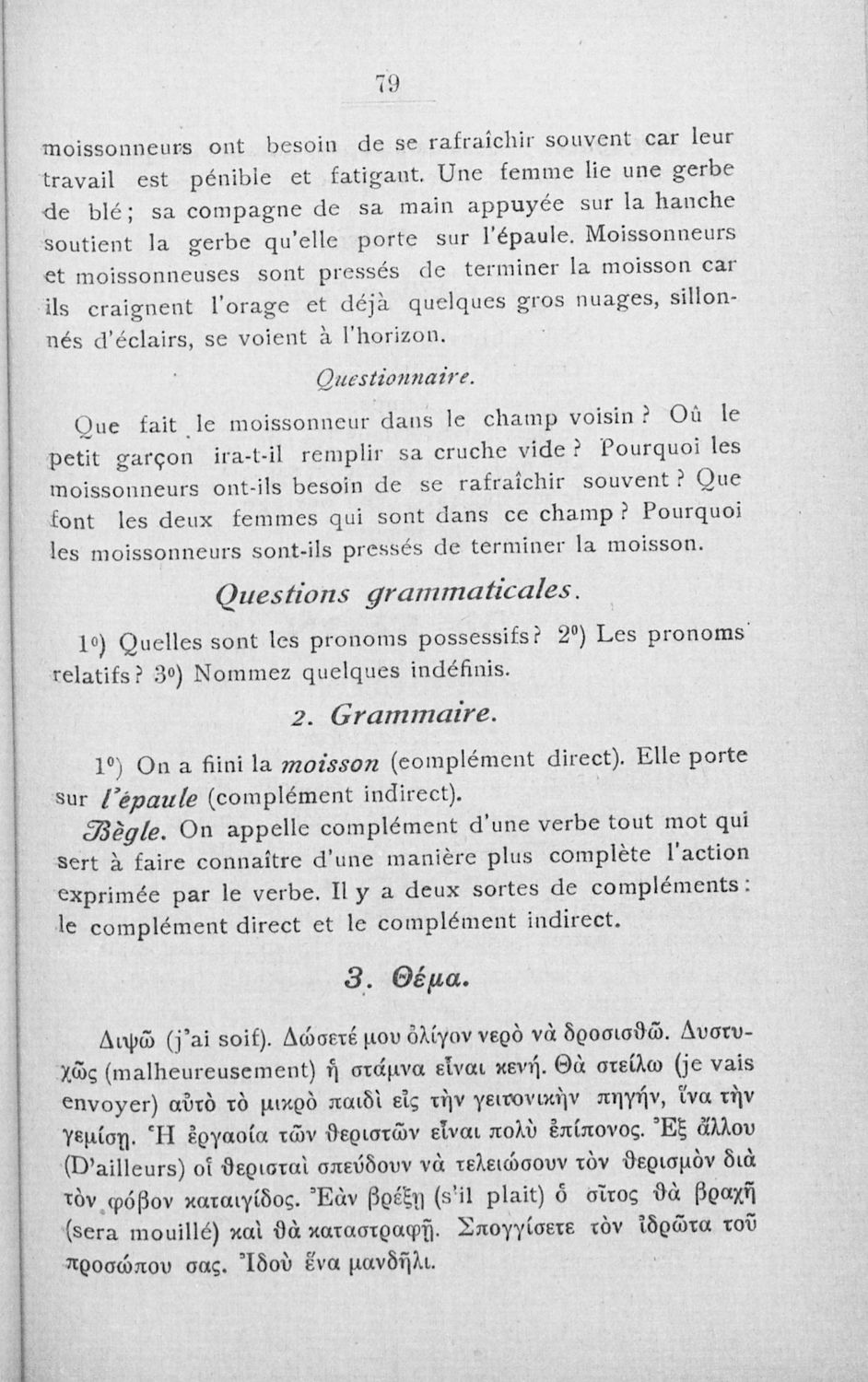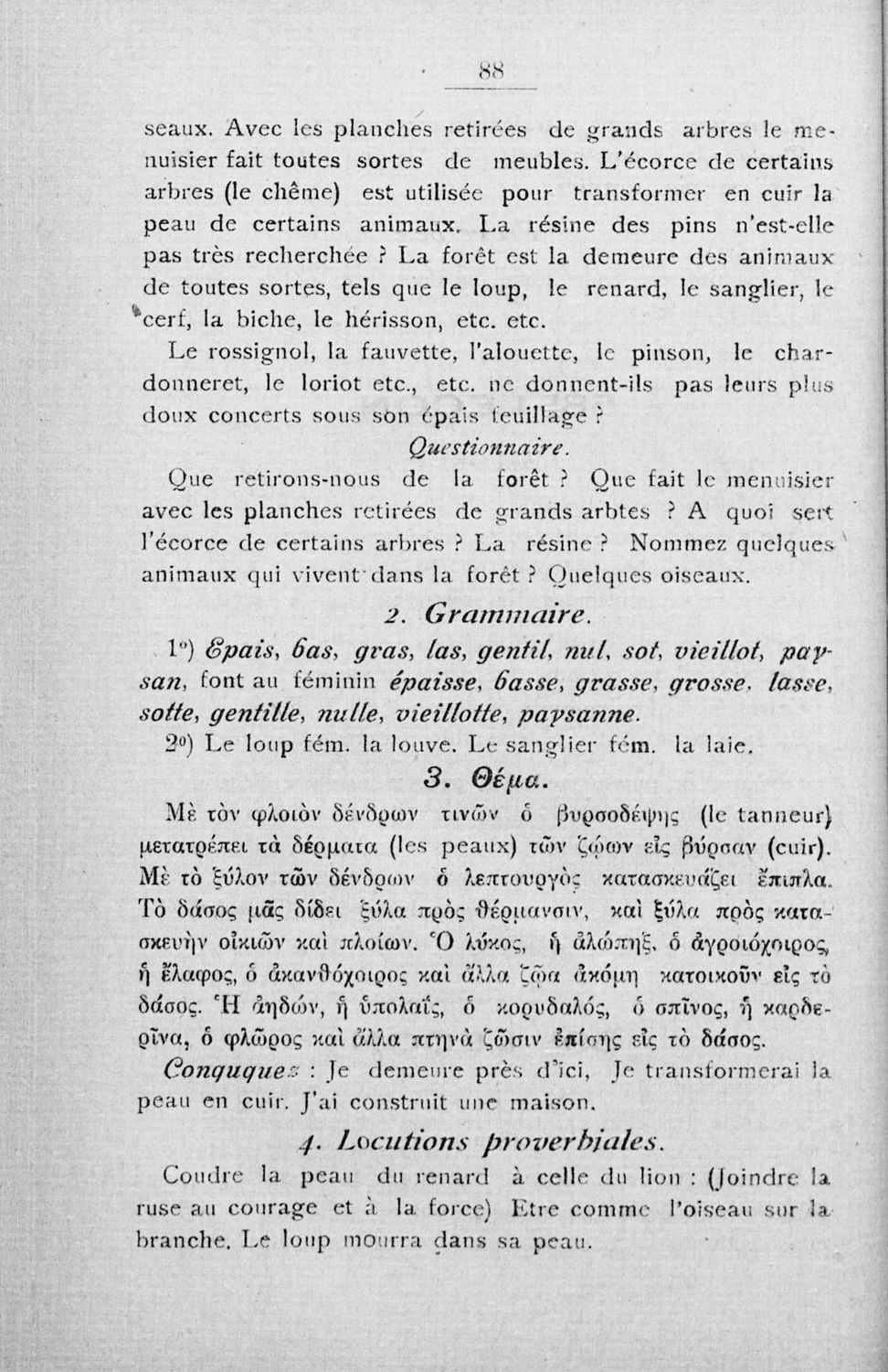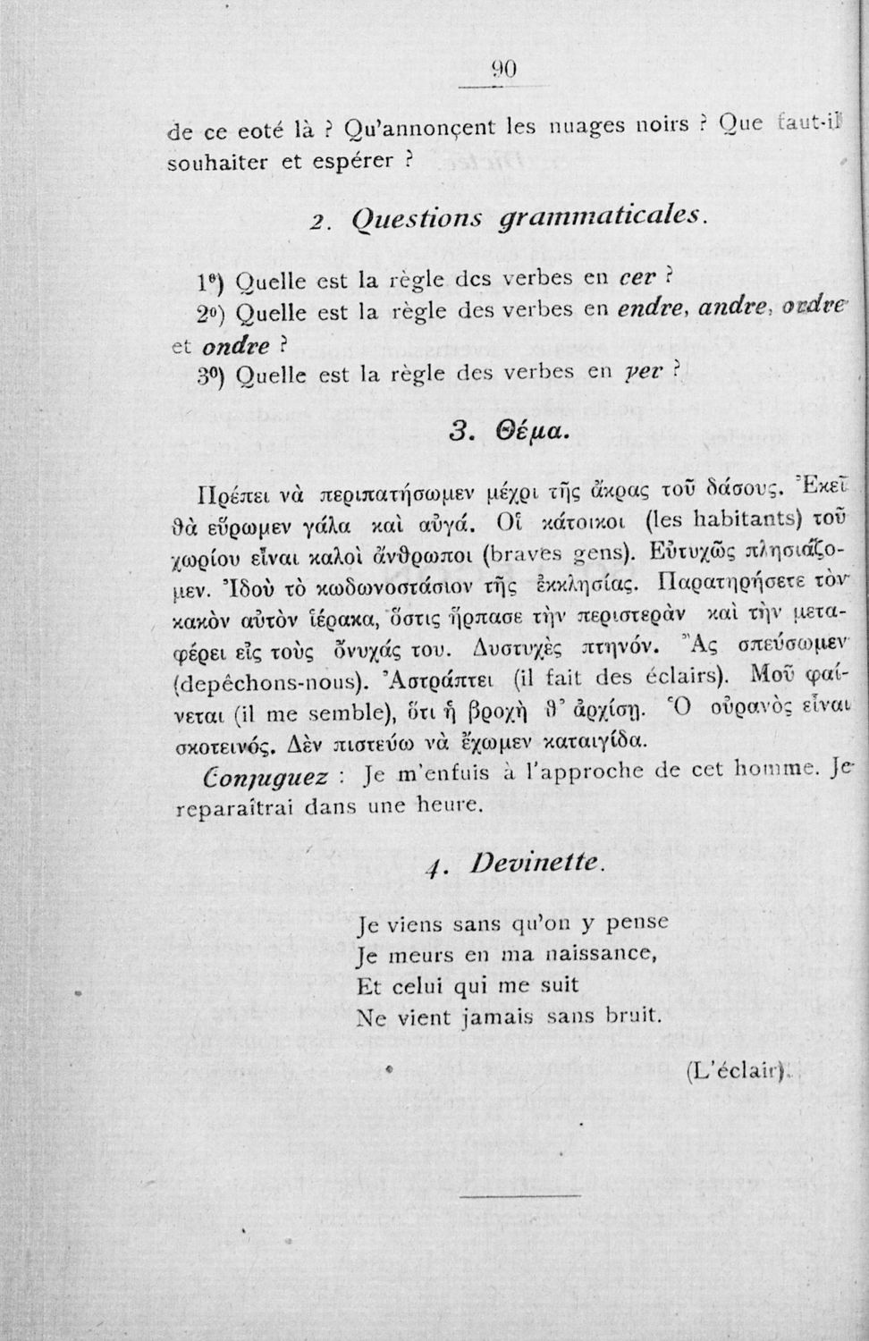 Γραμματική της Γαλλικής γλώσσας για τα Τετρατάξια Γυμνάσια, τη Γ΄ τάξη των Αστικών Σχολείων των Θηλέων και τα Διδασκαλεία της Δημοτικής Εκπαίδευσης που περιλαμβάνει θεωρία, ασκήσεις και λεξιλόγιο.