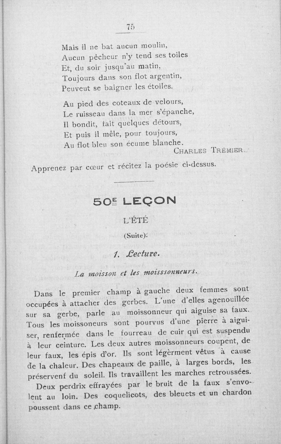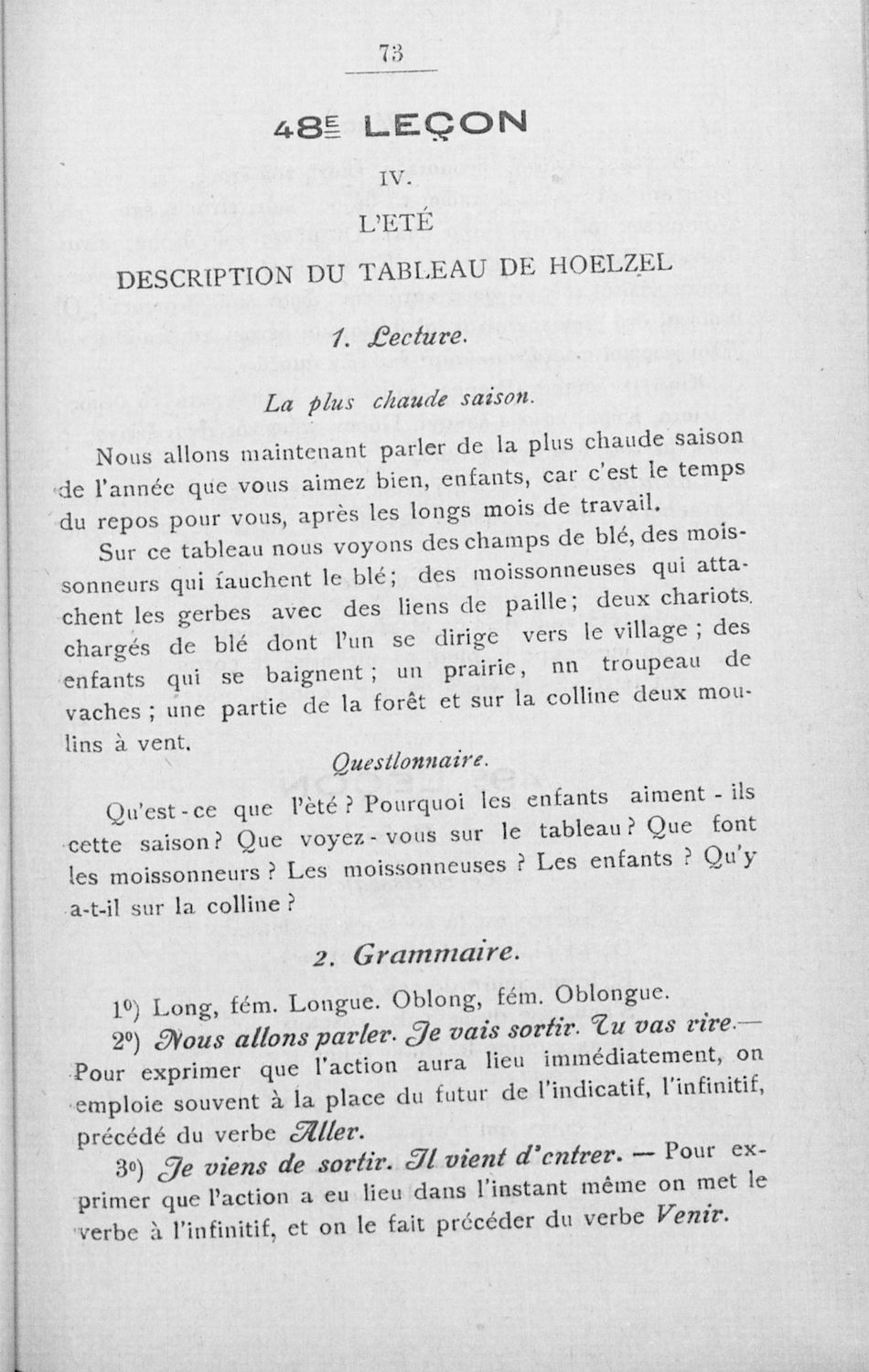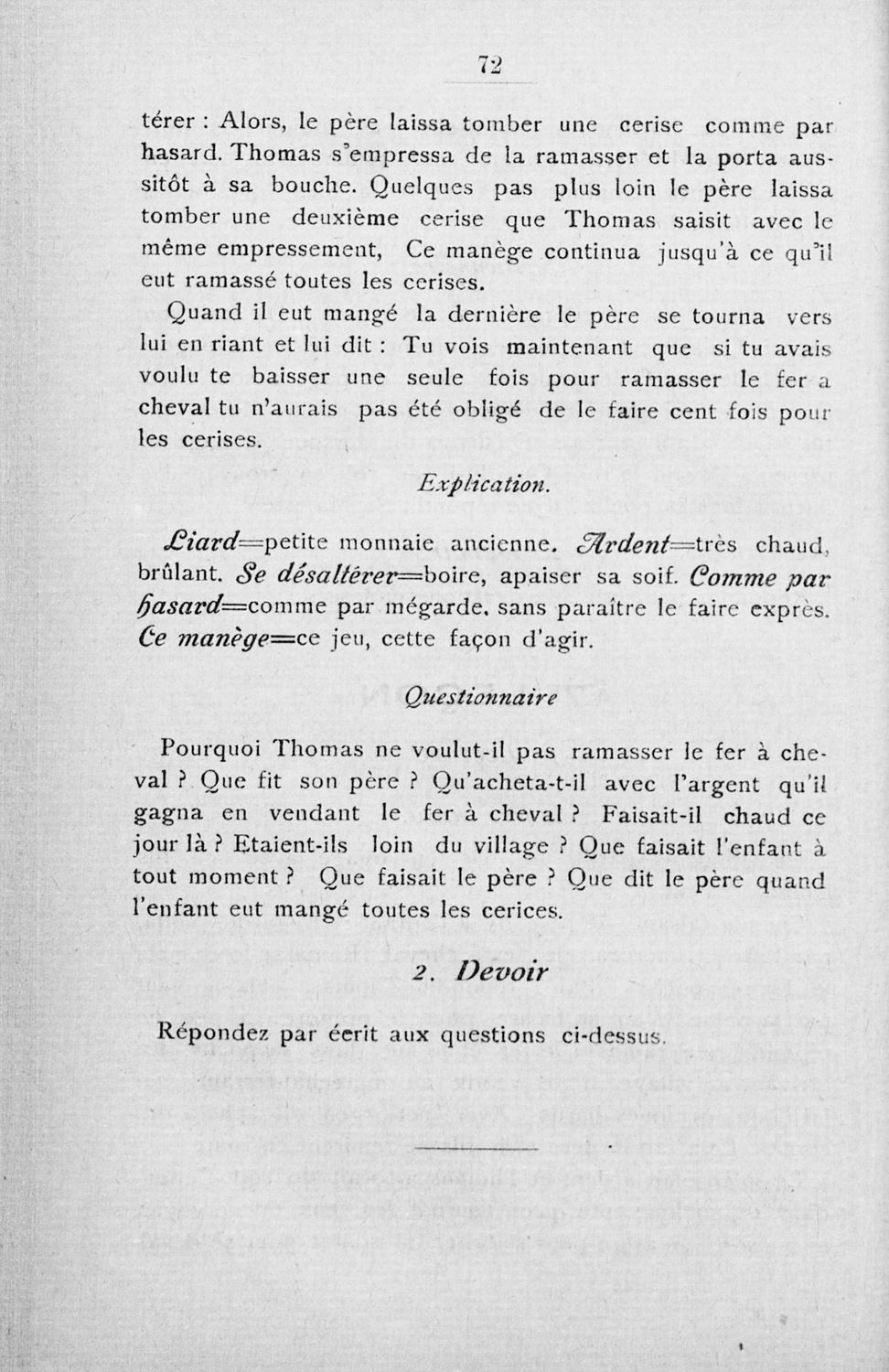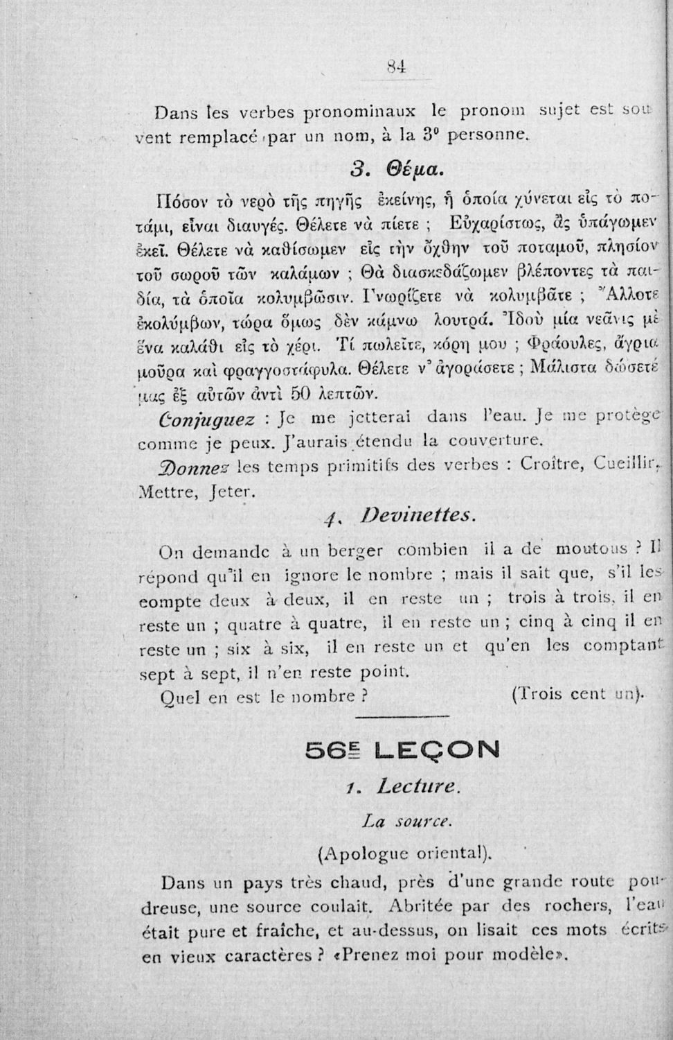 Παρουσίαση περιεχομένου: Σχολικό εγχειρίδιο Γαλλικών των Γυμνασίων, Αστικών Σχολείων θηλέων και Διδασκαλείων Δημοτικής Εκπαίδευσης. Κείμενα, ποιήματα, από εποχές και τον κοινωνικό και οικογενειακό βίο, τα οποία συνοδεύονται ασκήσεις γραμματικής συντακτικού.