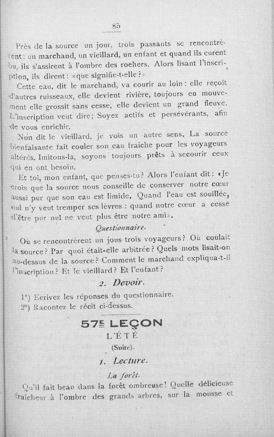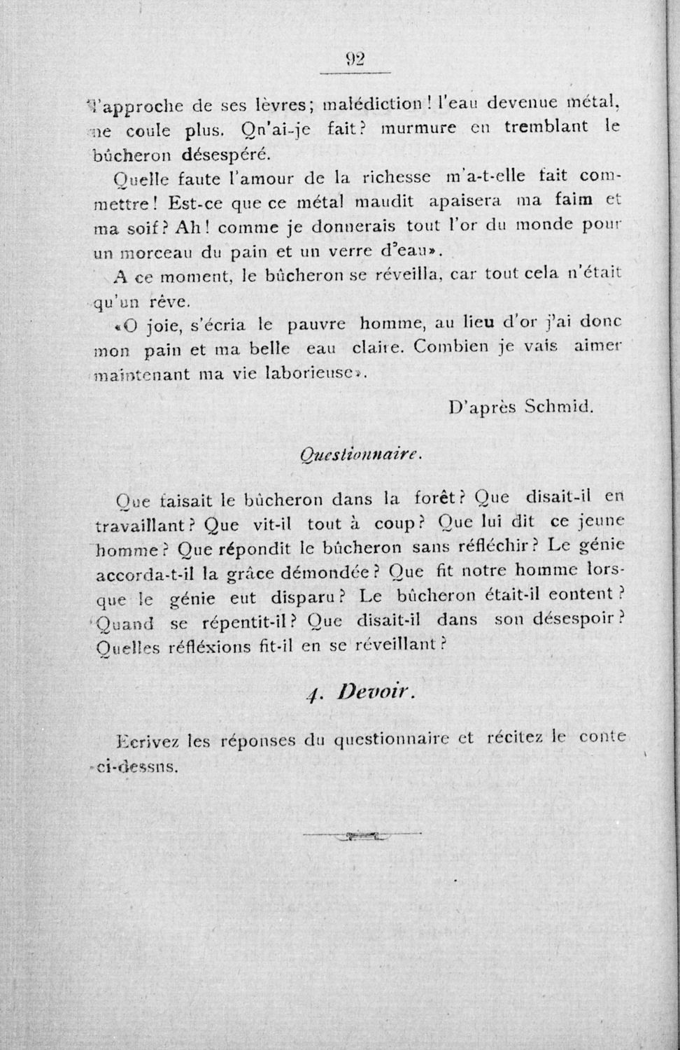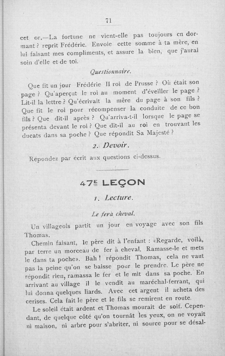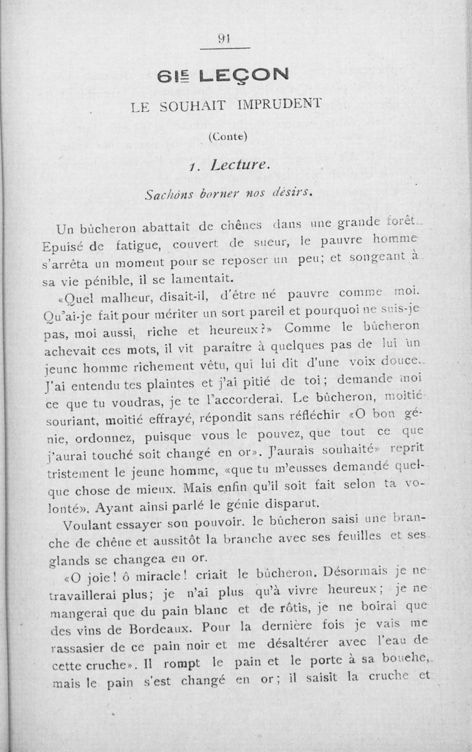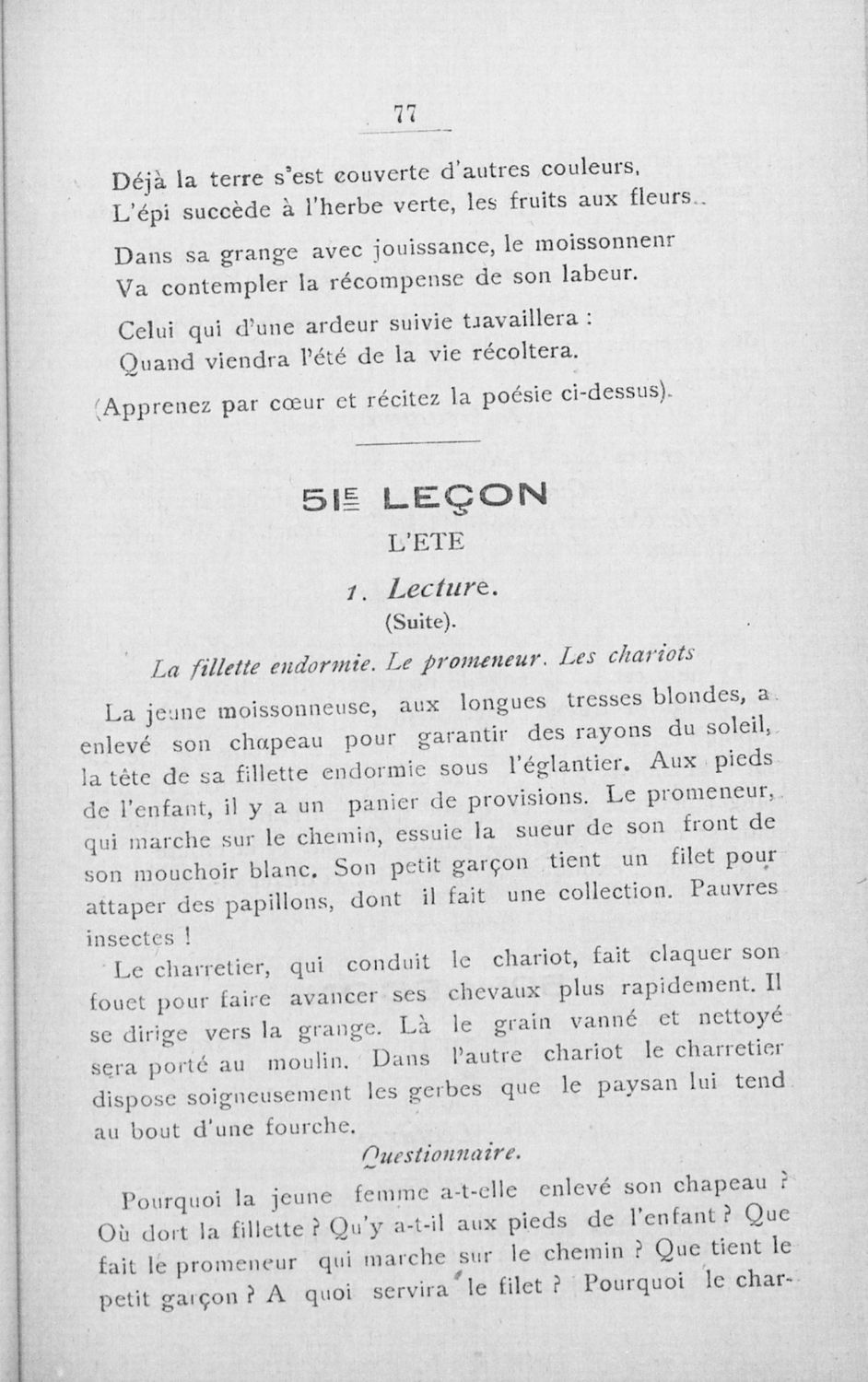 Παρουσίαση περιεχομένου: Σχολικό εγχειρίδιο Γαλλικών των Γυμνασίων, Αστικών Σχολείων θηλέων και Διδασκαλείων Δημοτικής Εκπαίδευσης. Κείμενα, ποιήματα, από εποχές και τον κοινωνικό και οικογενειακό βίο, τα οποία συνοδεύονται ασκήσεις γραμματικής συντακτικού.