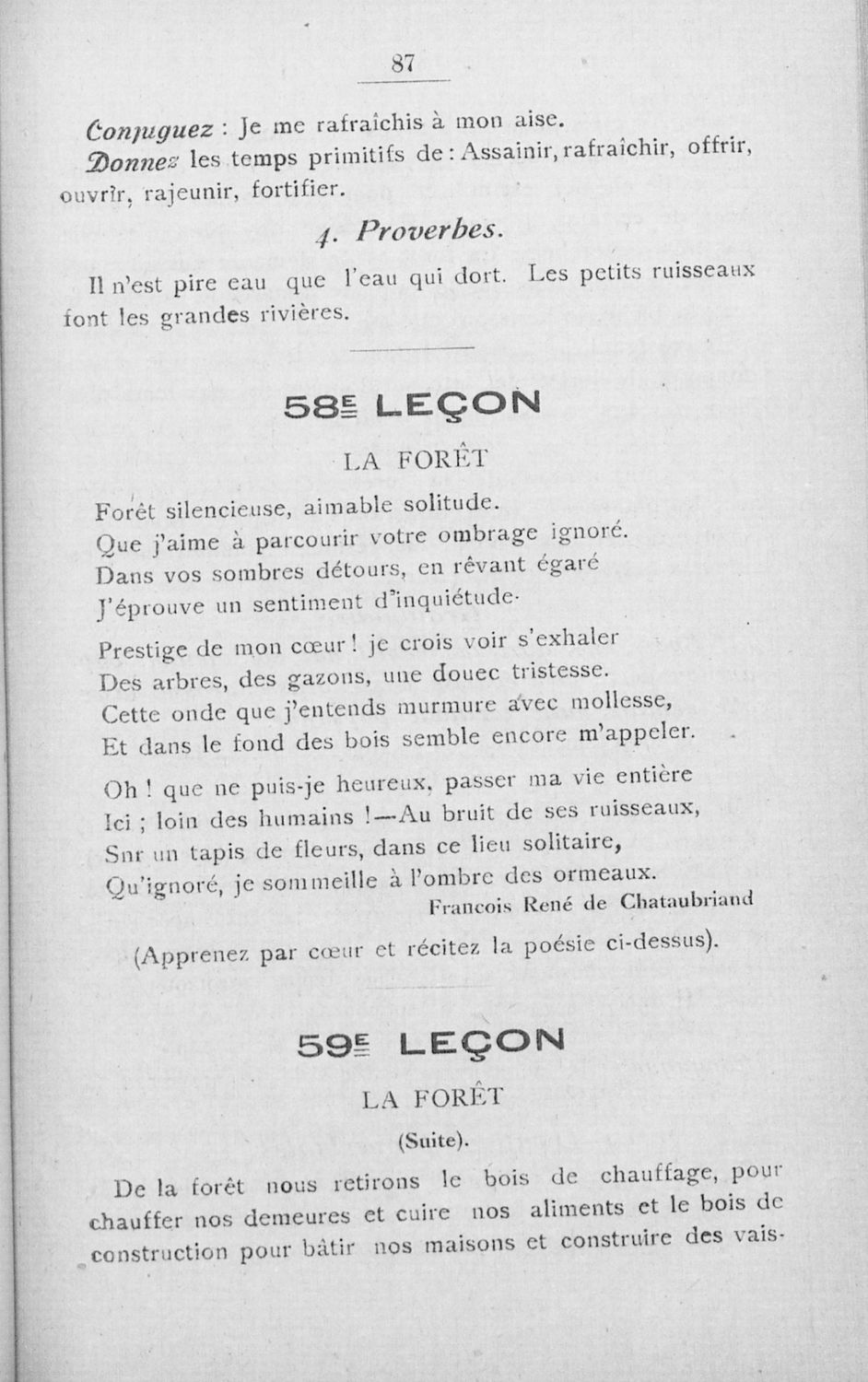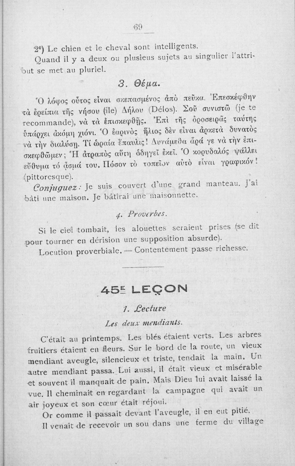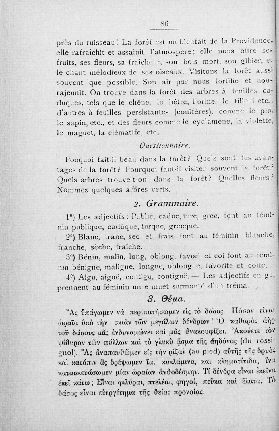 Σχολικό εγχειρίδιο Γαλλικών των Γυμνασίων, Αστικών Σχολείων θηλέων και Διδασκαλείων Δημοτικής Εκπαίδευσης. Κείμενα, ποιήματα, από εποχές και τον κοινωνικό και οικογενειακό βίο, τα οποία συνοδεύονται ασκήσεις γραμματικής συντακτικού.